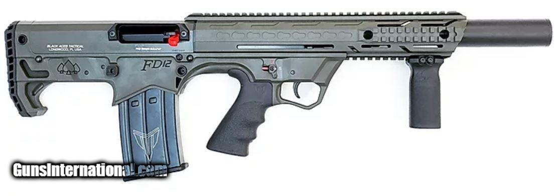 Description: Guns Listing ID: 187621 Black Aces Tactical FD12 Bullpup Semi-Auto, 12 gauge, 18.5" Barrel, 3 Chokes, OD GREEN Synthetic, 5-rd – Black Aces Tactical BATBPGR, Black synthetic Black Aces Tactical forward grip included - CHAMBER 3\" - MAGAZINES (2) 5 round mags, Takes 1919 mags and drums - CHOKES M, IM, F Manufacturer: BLACK ACES TACTICAL Model: BULLPUP Condition: new Barrels: 18.5" BARREL Action: SEMI AUTOMATIC Gauge: 12 GA Finish: OD GREEN Weight: 7.3 lbs. Price: $219.99 Contact Seller |
