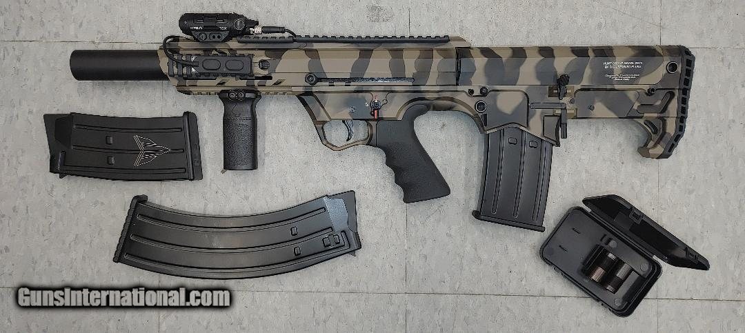 Description: Guns Listing ID: 973469 Black Aces Tactical Model: PRO Series Bullpup Gauge: 12ga Capacity: 5 OR 10 # of 5 RD MAGS Mags: Two (2) # of 10 RD MAGS Mags: ONE (1) VIRIDIAN X5L GREEN LASER / LIGHT COMBO Barrel Length: 18.5\" OAL: 28\" Choke: Three (3) Included SOLD Manufacturer: BLACK ACES TACTICAL Model: Bullpup FD-12 Semi-Auto Mag Fed Condition: Used - Non-Certified Barrels: 18.5 BARREL Gauge Info: 12 GA Finish: CAMO |