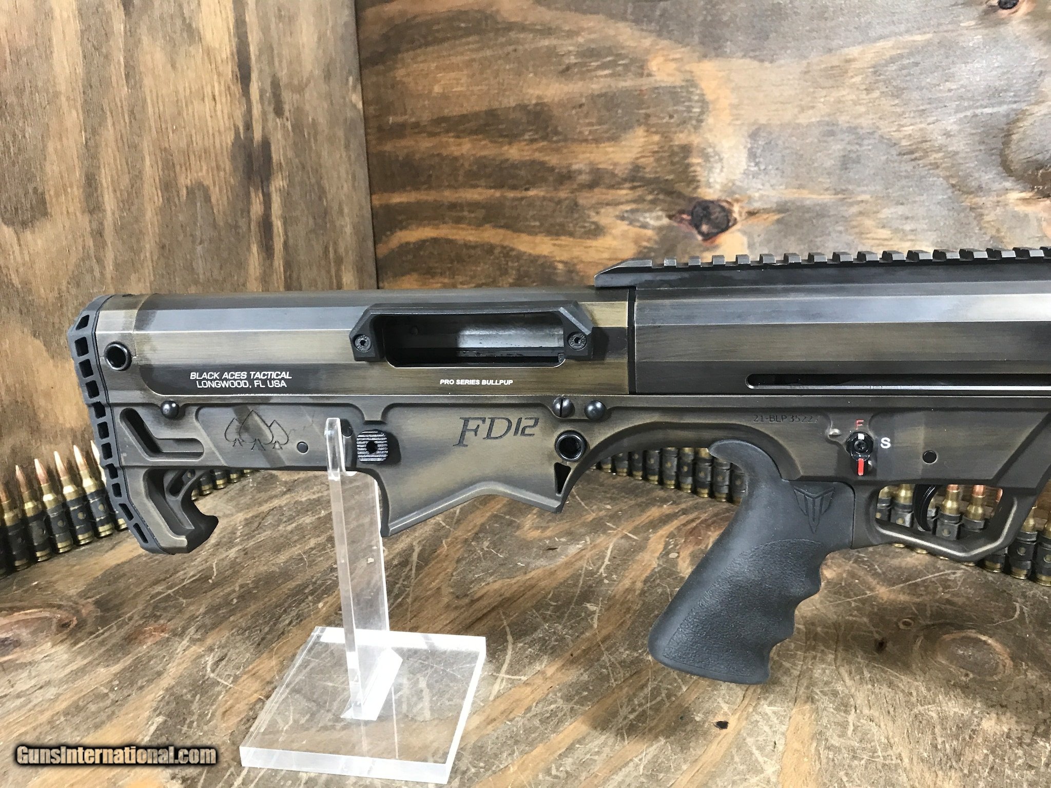Description: Guns Listing ID: 775745 Used FD12, 2 mags, choke tubes, and factory case SOLD Manufacturer: BLACK ACES TACTICAL Model: Bullpup FD-12 Condition: Used - Non-Certified Barrels: 16 BARREL Gauge Info: 12 GA Finish: CERAKOTE |