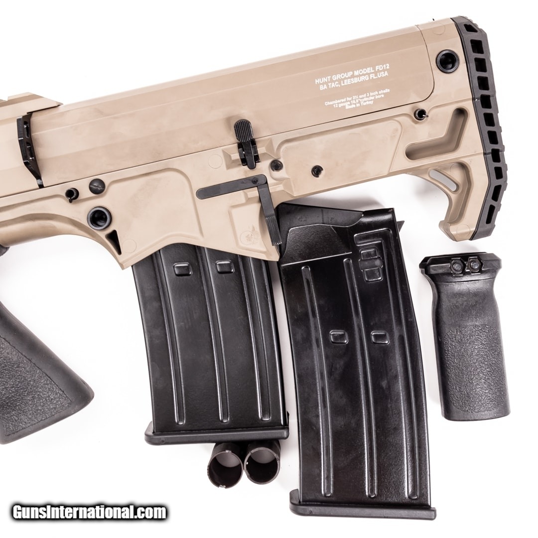 Description: Guns Listing ID: 343766 The Black Aces Tactical FD12 is a bullpup shotgun that feeds from detachable magazines. A variety of accessory rails are built into the gun for red dots, grips, and lights, while the M4 style pistol grip offers complete control when shooting. It's a worthy candidate for recreational use or home defense. Purchase includes the original case, manual, two 5-round magazines, and three choke tubes (full, modified, and improved cylinder). This FD12 is in excellent condition! SOLD Manufacturer: BLACK ACES TACTICAL Model: FD-12 Condition: Used - Certified Barrels: 18.5 BARREL Gauge Info: 12 GA Finish: FDE |