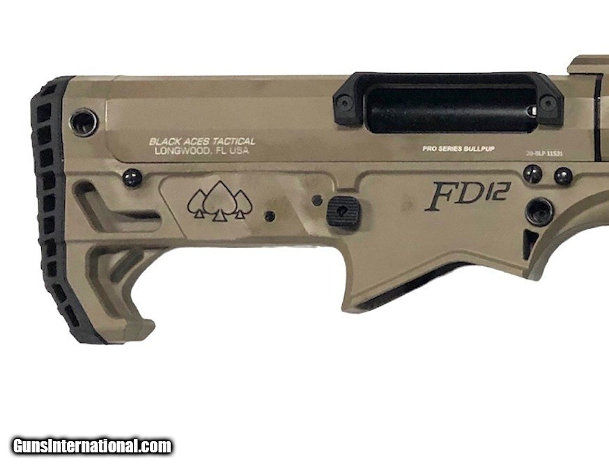 Description: Guns Listing ID: 860065 Manufacturer: Black Aces Tactical Importer: Black Aces Tactical Model: FD12 Type: Shotgun Action Type: Pump Action Caliber / Gauge: 12 Ga. Finish: Desert Tan Barrel Type: Single Grip Type: Rubber Barrel Length: 18.5 Magazine Capacity: 5 Magazine Quantity: 2 Case included: yes Condition: Used SOLD Manufacturer: BLACK ACES TACTICAL Model: FD12 Condition: Used - Non-Certified Barrels: 18.5 BARREL Gauge Info: 12 GA Finish: DESERT TAN |