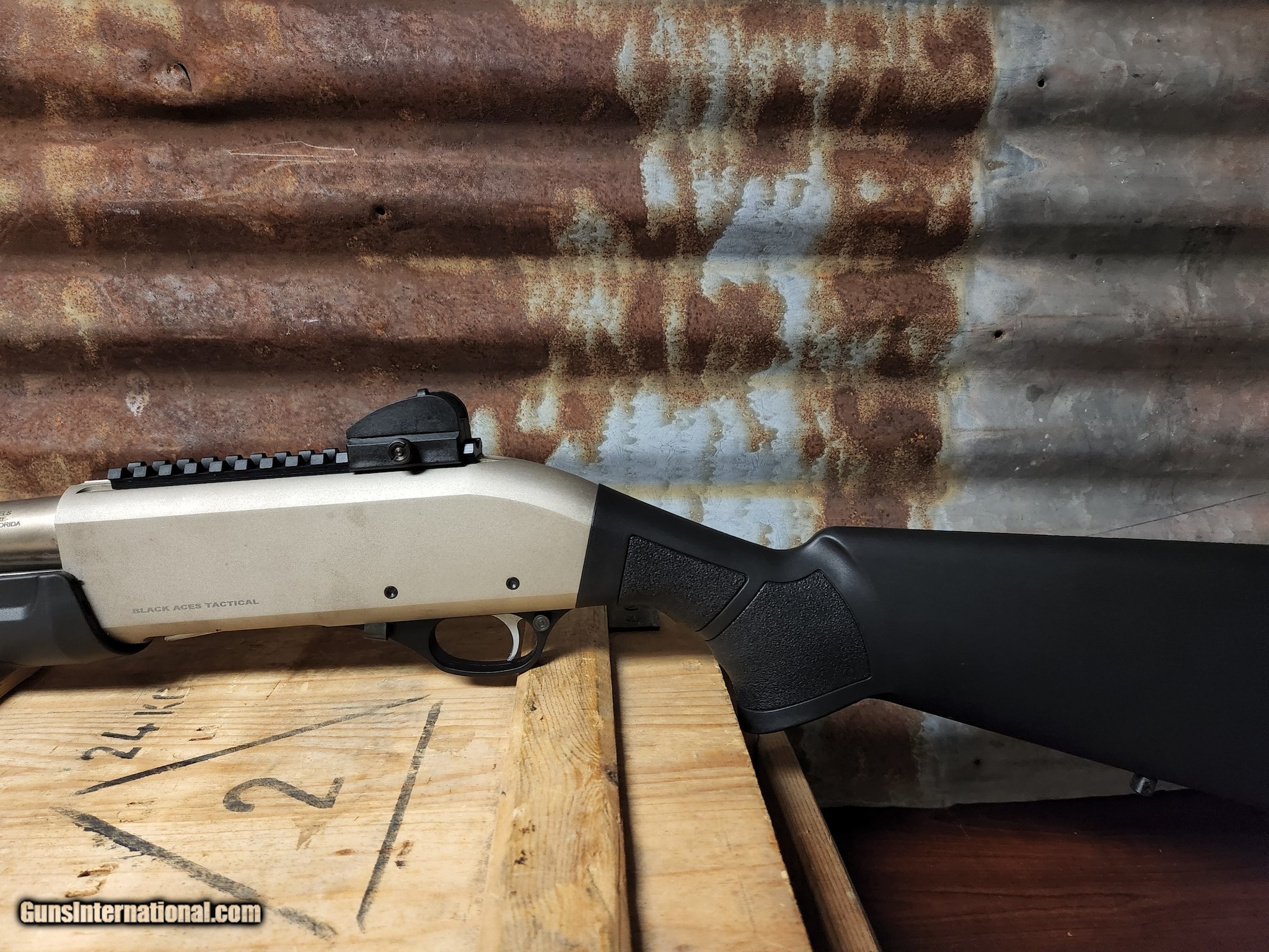 Description: Guns Listing ID: 568790 The Black Aces Tactical Pro Series X Marine Nickel Pump shotgun has a great look and durable finish. This pump action 12 gauge shotgun has an 18.5\" barrel, Nickel Marine finish, front and rear rifle sights, and has a 5+1 capacity. This is a great Home Defense /Tactical shotgun option with an attractive finish SOLD Manufacturer: BLACK ACES TACTICAL Model: Pro Series X Condition: Used - Non-Certified Barrels: 18.5" barrel Gauge Info: 12 GAUGE Finish: BLACK AND NICKEL |