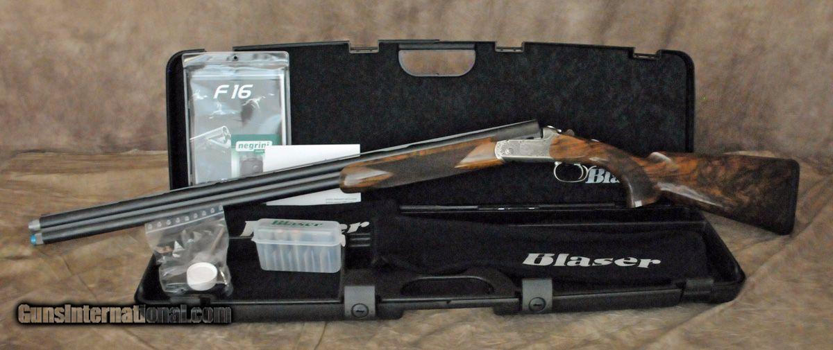 Description: New Blaser F16 Grand Luxe 12GA 32" factory extended choke tubed barrel, comes with 5 chokes. 10x7 flat tapered rib. Gun weighs 8lbs 2oz with great balance and handling. Single adj. selective trigger group. Silver Nitride action featuring engraved game scenes and scrolls. Outstanding grade 6 right handed pistol grip stock and sporting forend. Stock dimensions are 1 1/2" x 2 1/4 with a LOP of 14 3/4". Includes factory case, chokes and tools. This gun is located at our NEW Michigan location at 8585 PGA Drive, Suite 104. Walled Lake, MI 48390. 248-960-7262. Refer to 384. SOLD |