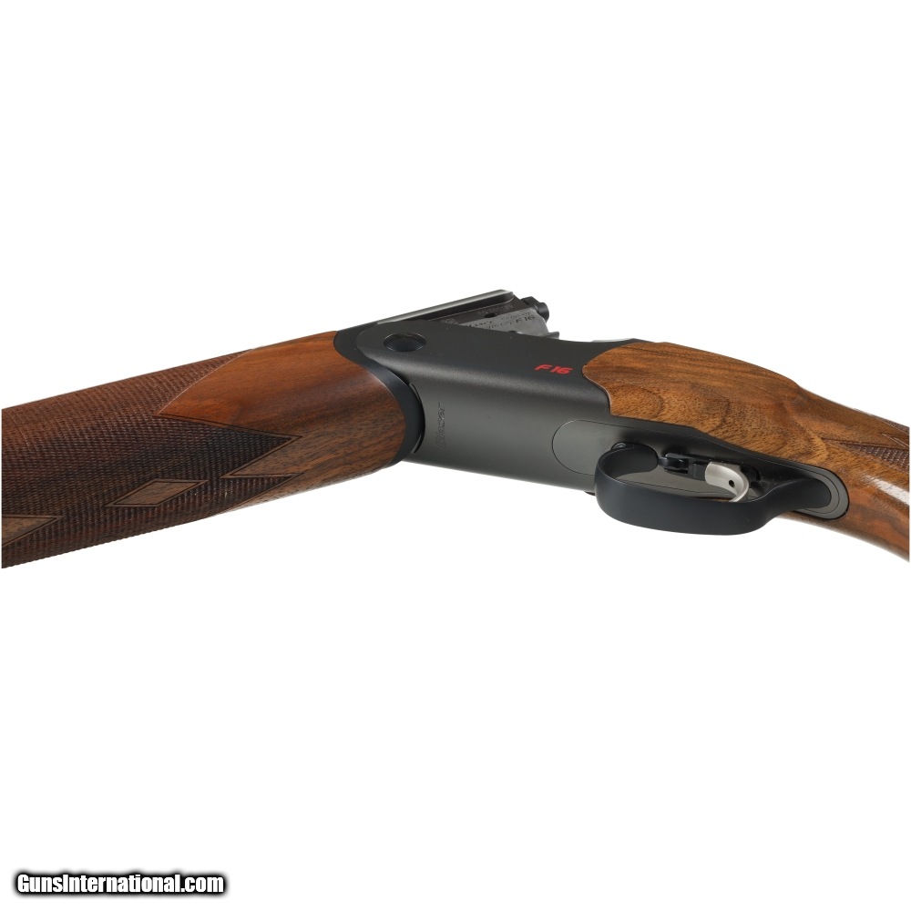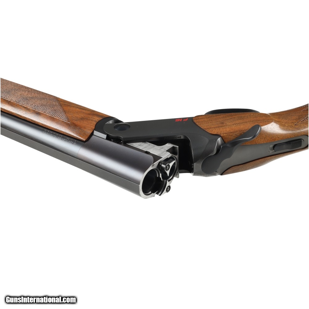 Description: The Blaser F16 is the latest I German Engineering, by creating the lowest profile receiver in its class, the F16 is given an exceptionally low center of gravity which leads to outstanding balance and less felt recoil. This example of the F16 has very low wear and a beautiful set of figured walnut stocks. Manufactured in: Germany Hand: Right Hand Action Finish: Gray Action Description: Over / Under Metal Finish: Original Barrel Length: 30 Inches Barrel Condition: Very Good Stock Finish: Original Stock Condition: Very Good Type of Butt: Kick - EEZ Pad Pad Thickness: 1/2" Grip: Pistol Forend: Checkered Cast Amount: 1/8" Extra Barrels: No. SOLD Manufacturer: Blaser Model: F16 Chambers: 3 Inches Ejectors: Extractors Condition: Preowned Metal Condition: Very Good Action: Over / Under Triggers: Single Gauge Info: 12 Gauge Stock Comb: 1 1/2 Stock Heel: 1 3/4 Inches Stock Cast: Off Fore End: Checkered Butt Pad: 1/2 LOP: 14 1/4 Rib: Matted Vent Rib Finish: Original Weight: 7.7 lbs Chokes: 6 Factory Chokes Extras: No. Case: Makers ABS Case |