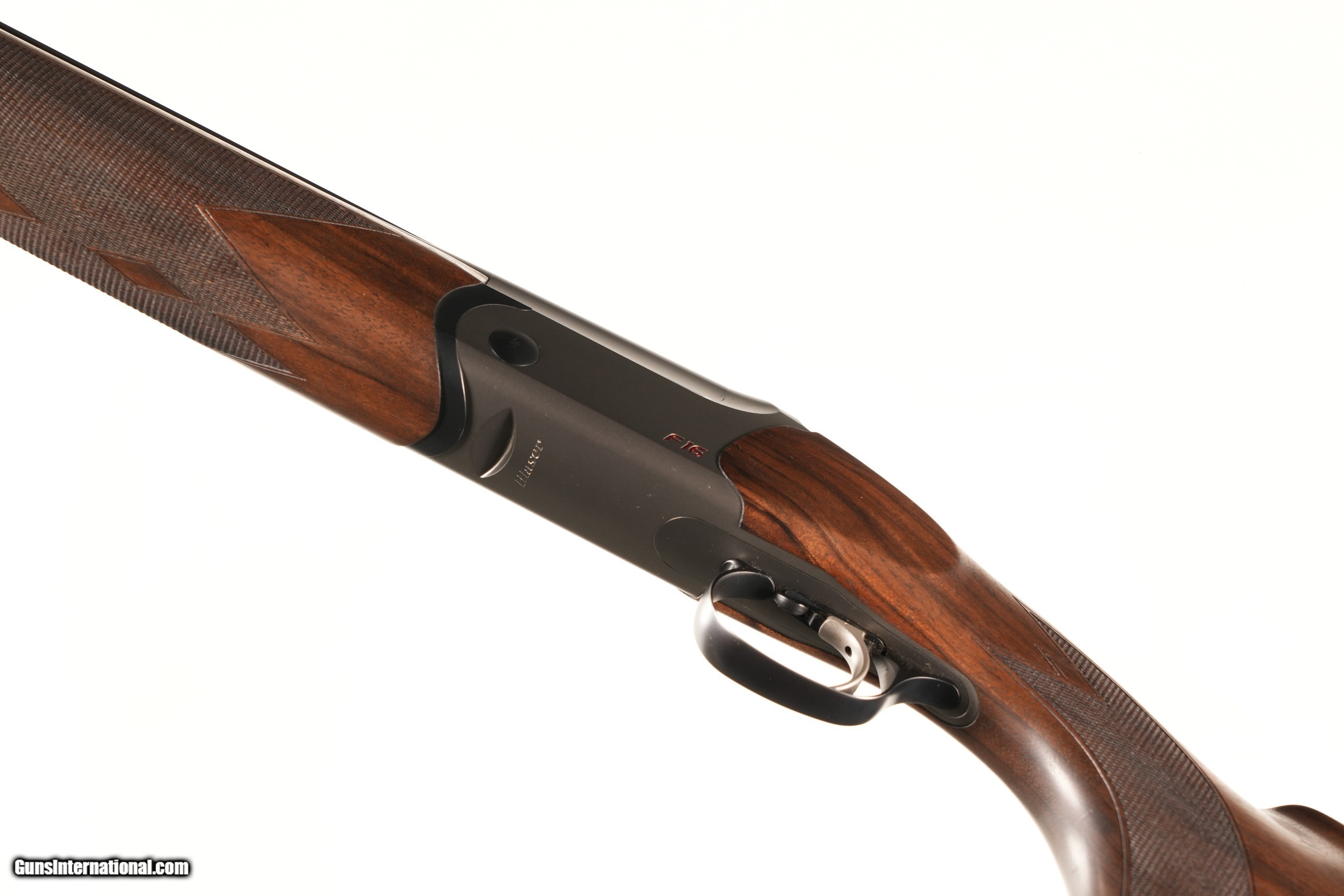 Description: 12 GA Serial # FGR013731 Blaser F-16 12 ga over under shotgun, 30" vent rib Bbl with interchangeable chokes (6 included w/ wrench). 3" chambers with single selective trigger and ejectors. Matte blue finish metal. Oil finished checkered pistol grip walnut stocks with factory pad/ 14 7/8" LOP 1 1/2" DAC 2" DAH Cast off 3mm. Mfd, 2021, 7 lbs 11 oz/ Comes in factory hard case with additional chokes and take down tools. Slip covers and manual/ Condition, Very fine with 98% metal finish with a trace of edge wear. Brilliant bores. Stocks are very fine with some finish wear and handling impressions. Mechanically excellent Barrel 30 Modern • Free Shipping, No Credit Card Fees. • Lay-a-way available for this firearm. • 1/3 Down, a 1/3 in 30 Days 1/3 in 60 Days. SOLD Manufacturer: Blaser Model: F16 Serial Number: FGR013731 Barrel Length: 30 |