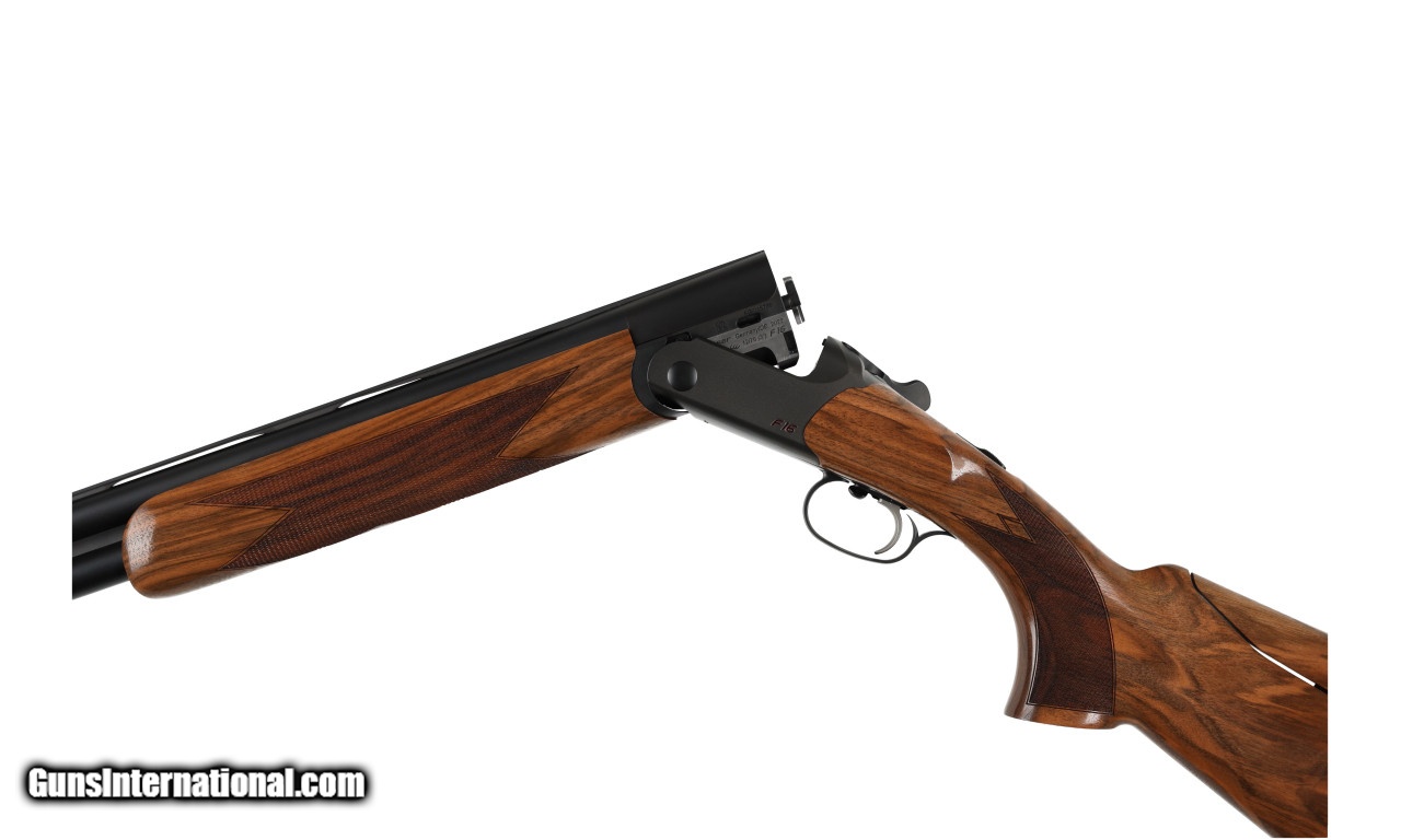 Description: The first thing noticed about the F16 Sporting is the combination of very well-figured and high-gloss finished Grade 4 walnut with matte-finished metalwork. The frame has a very dark pewter color, broken only by the F16 rollmark in red, while the barrels are matte charcoal. SOLD Manufacturer: Blaser Model: F16 Sporting Caliber Info: 12 Gauge Chambers: 3 Ejectors: Yes Condition: New Metal Condition: New Barrels: 32 Action: Boxlock Triggers: Single Gauge Info: 12 Gauge Stock Comb: 1 1/2 Stock Heel: 1 7/8 Stock Cast: Off Fore End: Checkered LOP: 14 5/8 Rib: Ventilated Chokes: 2 Choke Tubes Case: Makers ABS Case |