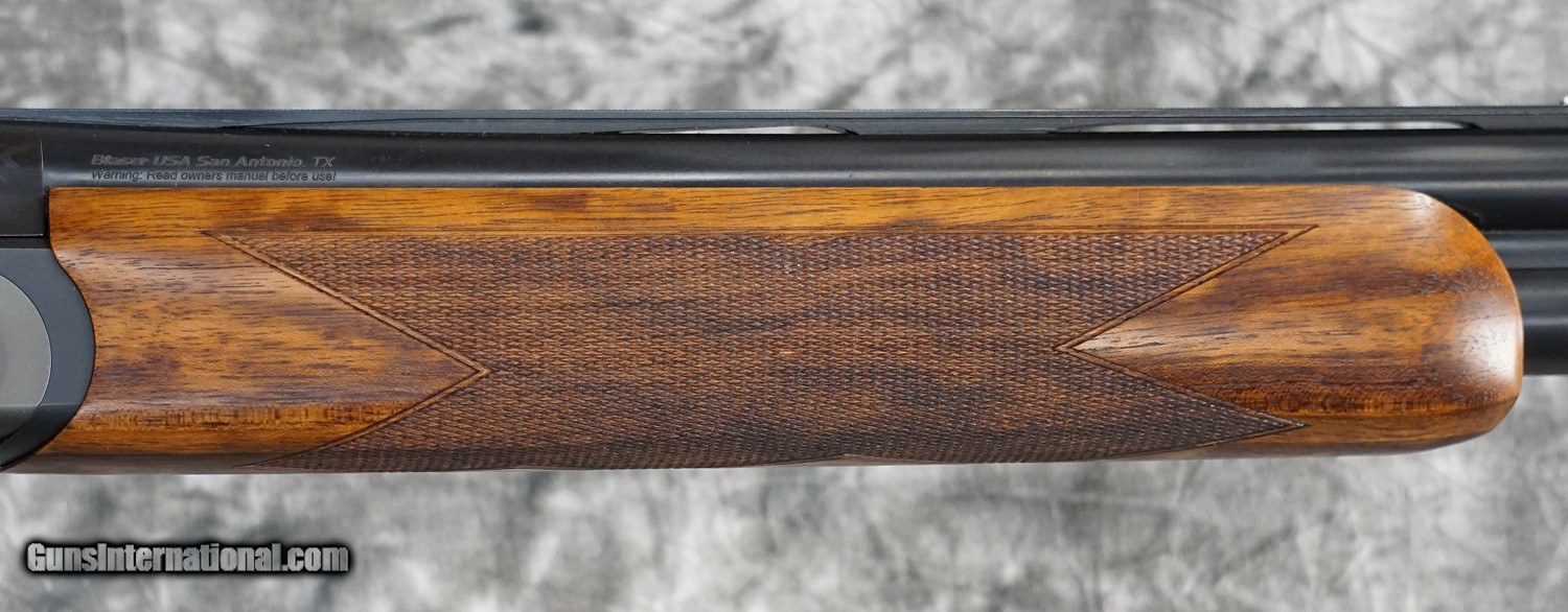 Description: Pre-Owned Blaser F-16 Sporting 12GA with 32" factory choke tube barrels, integrated weight system. Nitride finished action with finish wear, minor scuffs. Barrels show discoloring of finish over chambers, no signs of rust. Factory pistol grip stock with right-hand palmswell with finish wear, handling marks and scuffs. Includes factory case, chokes and tools. SOLD Shotgun Gauge: 12 Gauge |