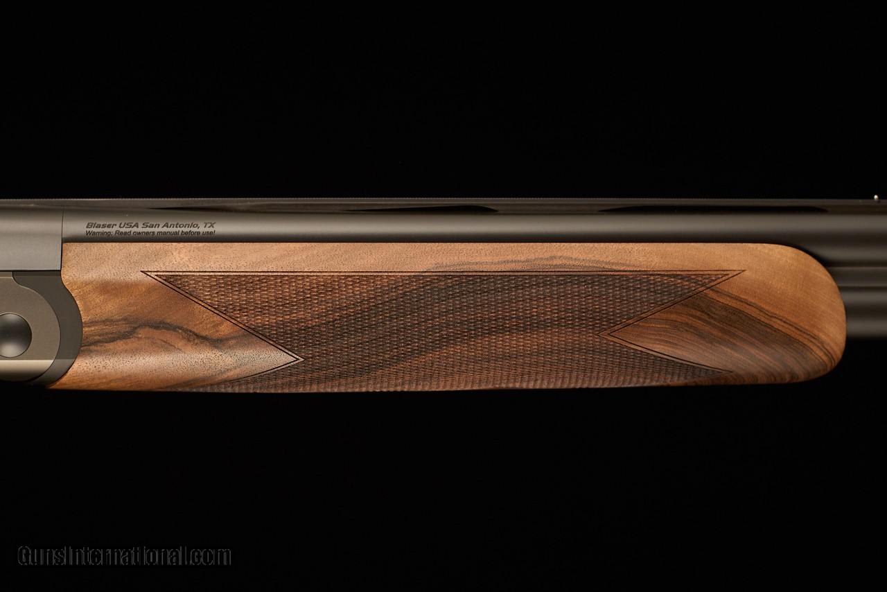 Pictured here is an F16 Sporting, LEFT HAND, in 12ga with 32” barrels and a grade 4 wood set. The comb is adjustable. Chokes are standard Blaser pattern as used in the F3. Included as standard on every F16 is the stock weight system, chokes, and accessories in a Blaser transit case.