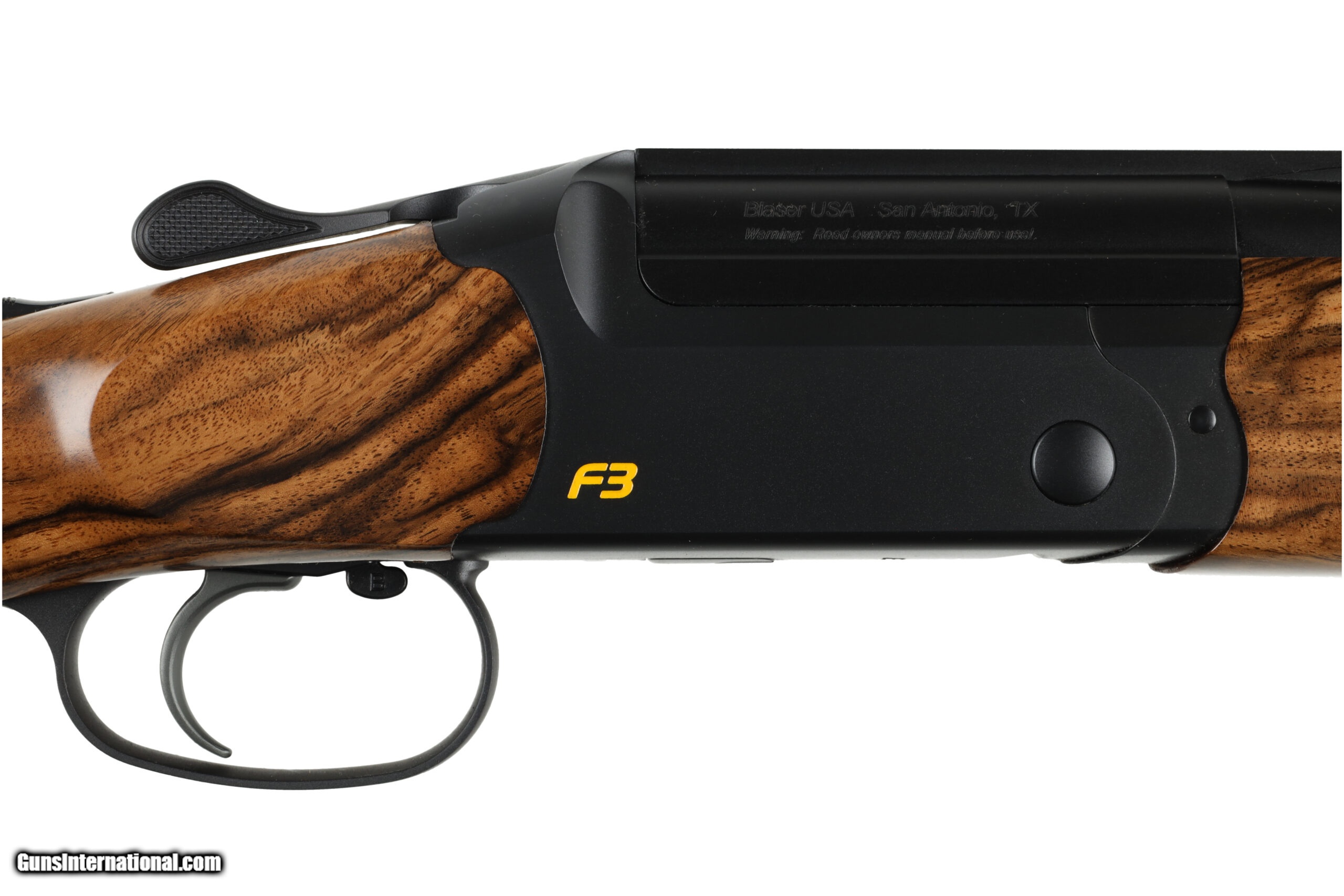 Description: A shotgun for champions – the Blaser F3 Shotgun. A one-of-a-kind competition shotgun that actively supports intuitive shooting. For Sporting disciplines. Manufactured in: Germany Hand: Right Hand Action Finish: Black Metal Finish: Original Barrel Length: 30 Inches Barrel Condition: New Stock Finish: Original Stock Condition: New Type of Butt: Factory Pad Pad Thickness: .75 Grip: Pistol Forend: Checkered Schnabel Cast Amount: 1/4" SOLD Manufacturer: Blaser Model: F3 Grade 6 Chambers: 3 Inches Ejectors: Yes Condition: New Metal Condition: New Action: Over / Under Triggers: Single Gauge Info: 12 Gauge Stock Comb: 1 5/8 Stock Heel: 2 1/8 Stock Cast: Off Fore End: Checkered Schnabel Butt Pad: .75 LOP: 14 5/8 Rib: Ventilated Finish: Original Weight: 8.4 lbs Chokes: 5 Factory Chokes Case: Makers ABS Case |