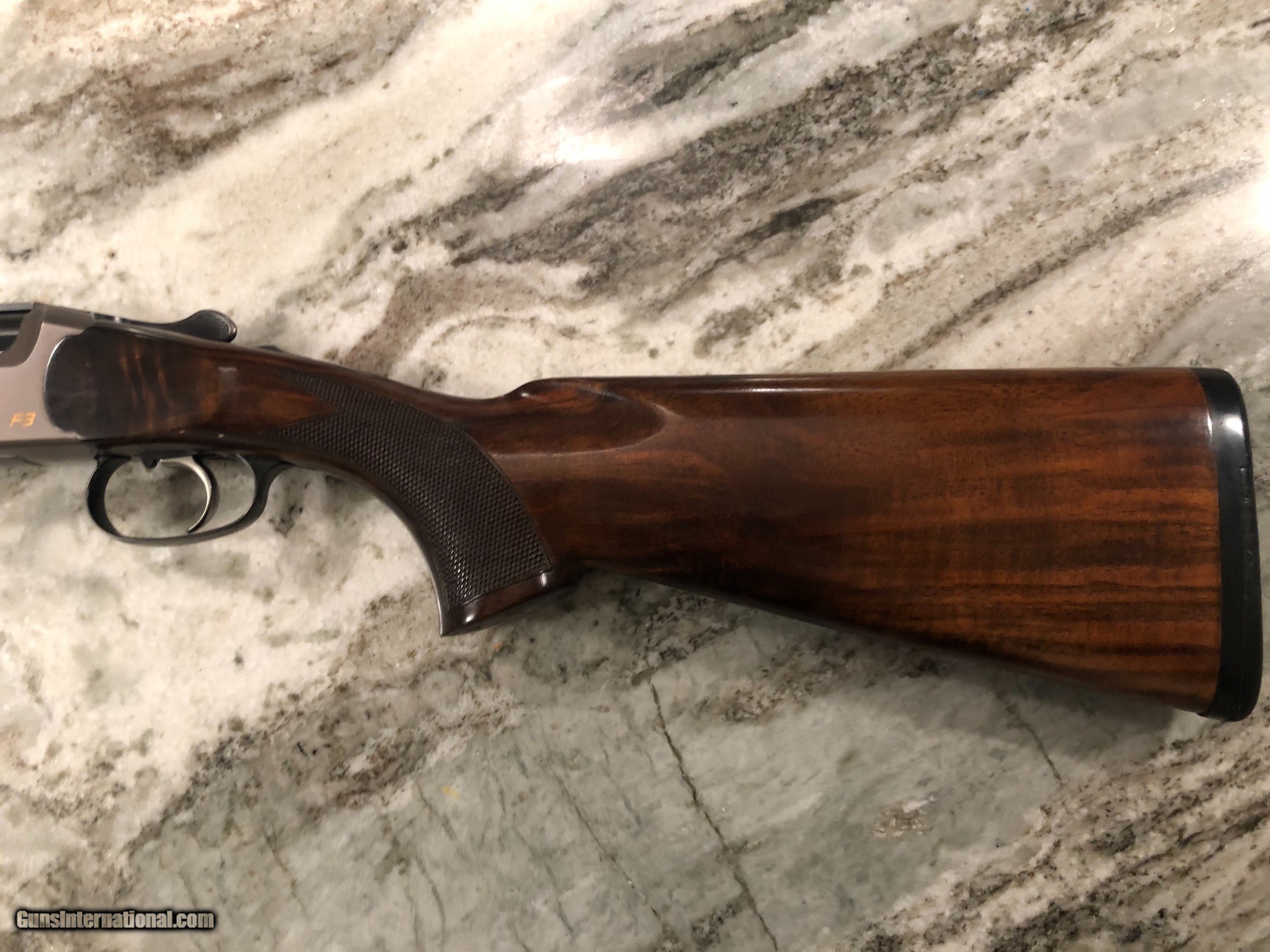 Description: Excellent condition Blaser F3 12g 32" competition sporting. Grade 5 wood. Bluing and wood are in near perfect condition. Weighs around 8lbs without weights. Standard dimensions of 14 3/4 LOP, 1.5" DAC, and 2" DAH. Comes with original makers case and 5 factory chokes. Built in mid 2000s and taken exceptional care of. Blaser has the best customer service in the business and will give a black nitride finish to the action for someone who wants the look of the latest model for $400. They will also do a complimentary modification to the action if subguage barrels are intended for use. SOLD |