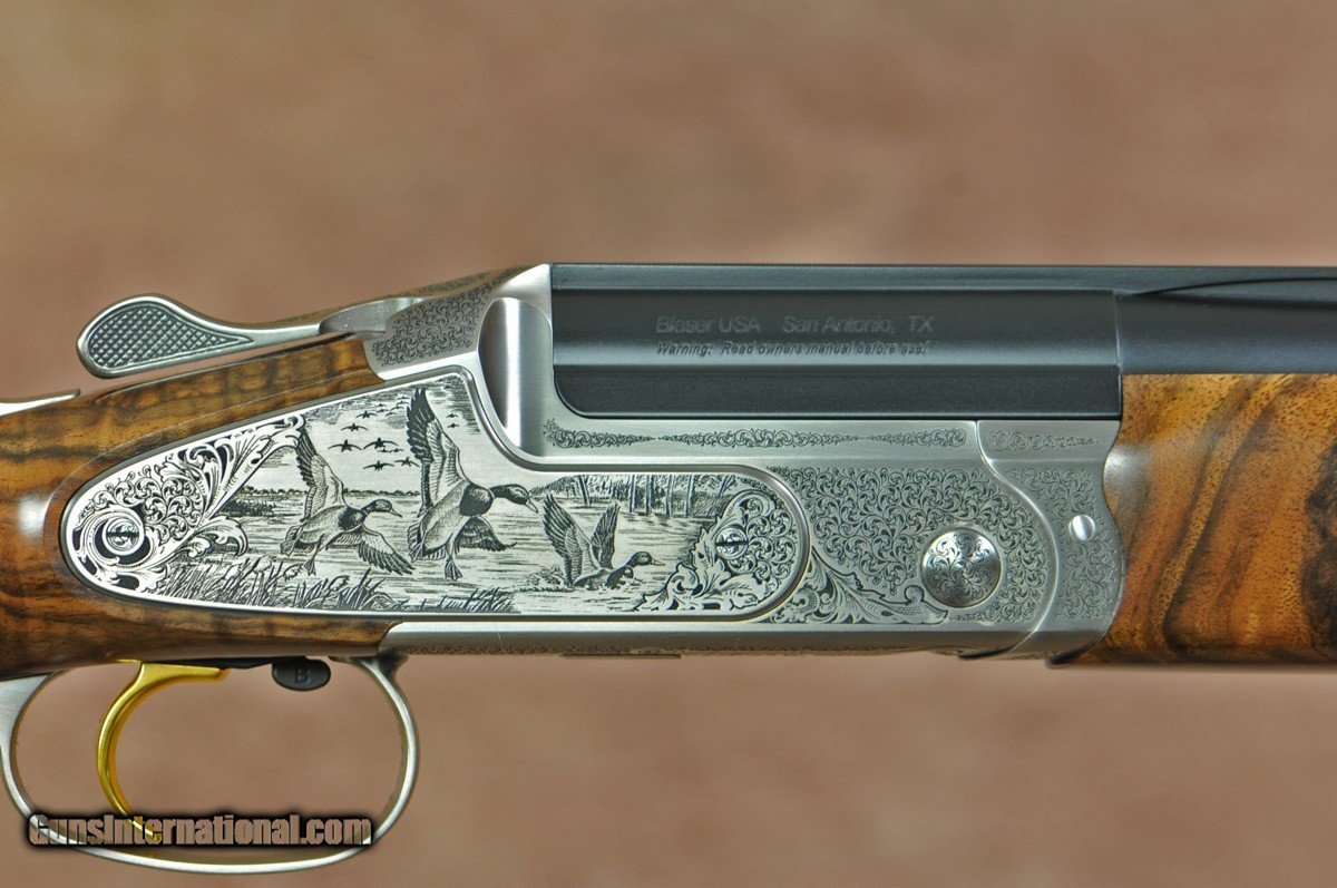 Description: New Blaser F3 Baronesse Sporting 12ga. Features factory choke tube 32" barrels with flat sporting rib. Side plate game scene engraved receiver featuring Pheasants and Mallards. Highly figured grade 7 right handed Sporting stock and Schnabel forend. Comes in factory leather trim case. SOLD Shotgun Gauge: 12 Gauge |
