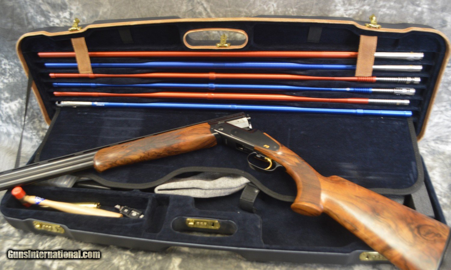 Description: Pre-Owned Blaser F3 Baron Competition Sporting 12GA with 32" factory choke tubed barrels, integrated barrel weights and full set of Briley UL (20/28/.410) sub-gauge tubes installed. Black nitride finished action with side-plates, selective adj. trigger. Factory pistol grip sporting stock with ISIS recoil reduction system installed, right-hand palmswell and schnabel forearm. Overall excellent condition with handling marks and some wear. Includes Negrini tube-set case. SOLD Shotgun Gauge: 12 Gauge |