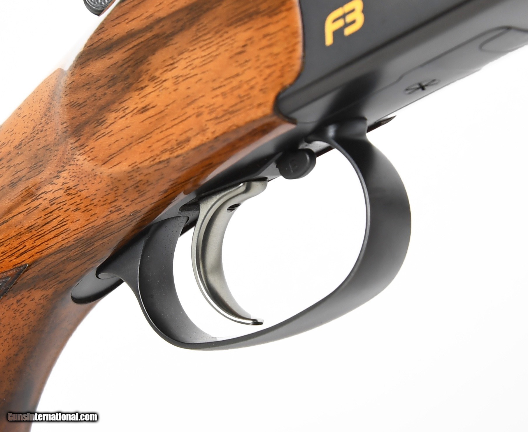 Description: Blaser F3 Competition 12 O/U sporting clays shotgun. This beautiful Blaser F3 with 30” barrels and factory right hand stock with factory adjustable comb has been shot, but shot sparingly by an enthusiast who appreciate and took very good care of his equipment. The metal finishes are 99% with just a very small rub spot on the bottom of the barrel lug. The wood is in similar ultra-high condition with only a few light finishes scratches on the butt stock. The gun comes factory cased with choke tubes and accessories. LOP is 14 ¼” over a 5/8” Kick-eez pad. Weighs 8 lbs. 4 oz. Has a factory 18.7mm (.736” bore) SN: FR 008240 SOLD |