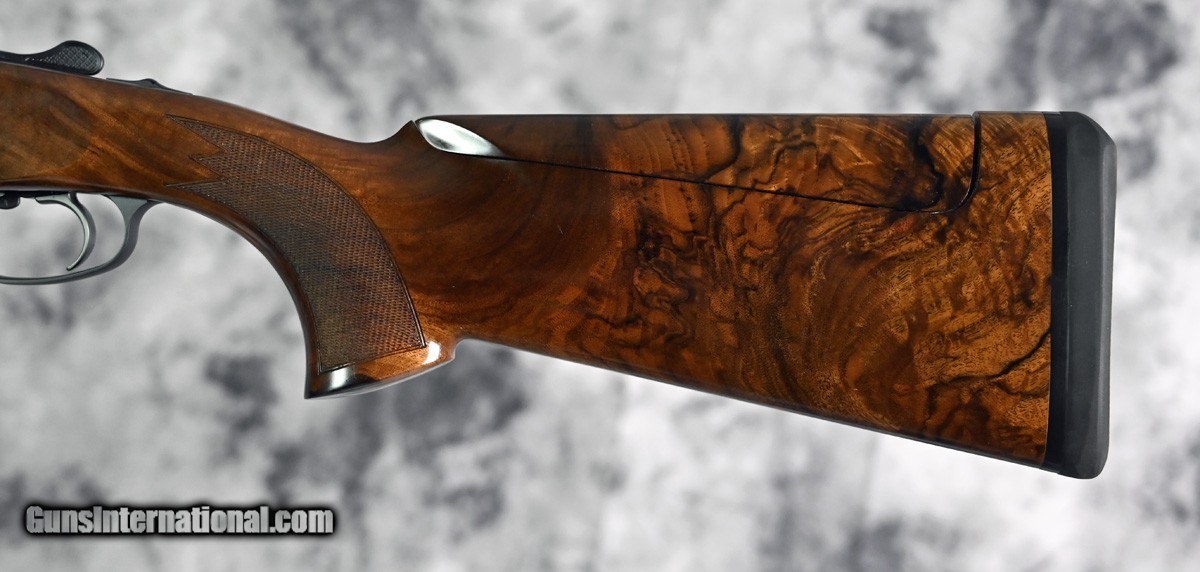 Description: Pre-owned, in excellent condition with minor handling wear, Blaser F3 Competition Sporting 12ga. Features factory extended choke tube 32" barrels with flat sporting barrels. Nitride receiver with fixed selectable trigger. Highly figured right hand Sporting stock with adjustable comb and Schnabel forend. Comes in factory leather trim case. CONSIGNMENT, ineligible for trades. Pacific Sporting Arms is the largest dealer in high grade shotguns in the world. SOLD Shotgun Gauge: 12 Gauge |