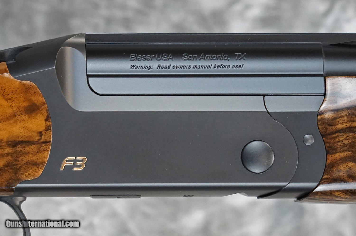Description: New Blaser F3 Competition Sporting 12GA with 32" factory choke tubed barrels, integrated weight system and flat rib. Black nitride finished action with adjustable, selective trigger. Factory pistol grip sporting stock with right-hand palmswell and schnabel forearm. Factory case, chokes and tools. SOLD Shotgun Gauge: 12 Gauge |