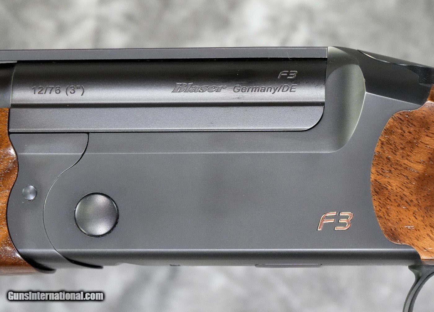 Description: Pre-Owned Blaser F3 Competition Sporting 12GA with 32" factory choke tubed barrels, integrated weight system and flat rib. Black nitride finished action, adj. and selective trigger. Factory pistol grip adj. comb stock with right-hand palmswell, schnabel forearm. Very minor handling marks, minor scuffs and wear. Includes case, chokes and tools. SOLD Shotgun Gauge: 12 Gauge |