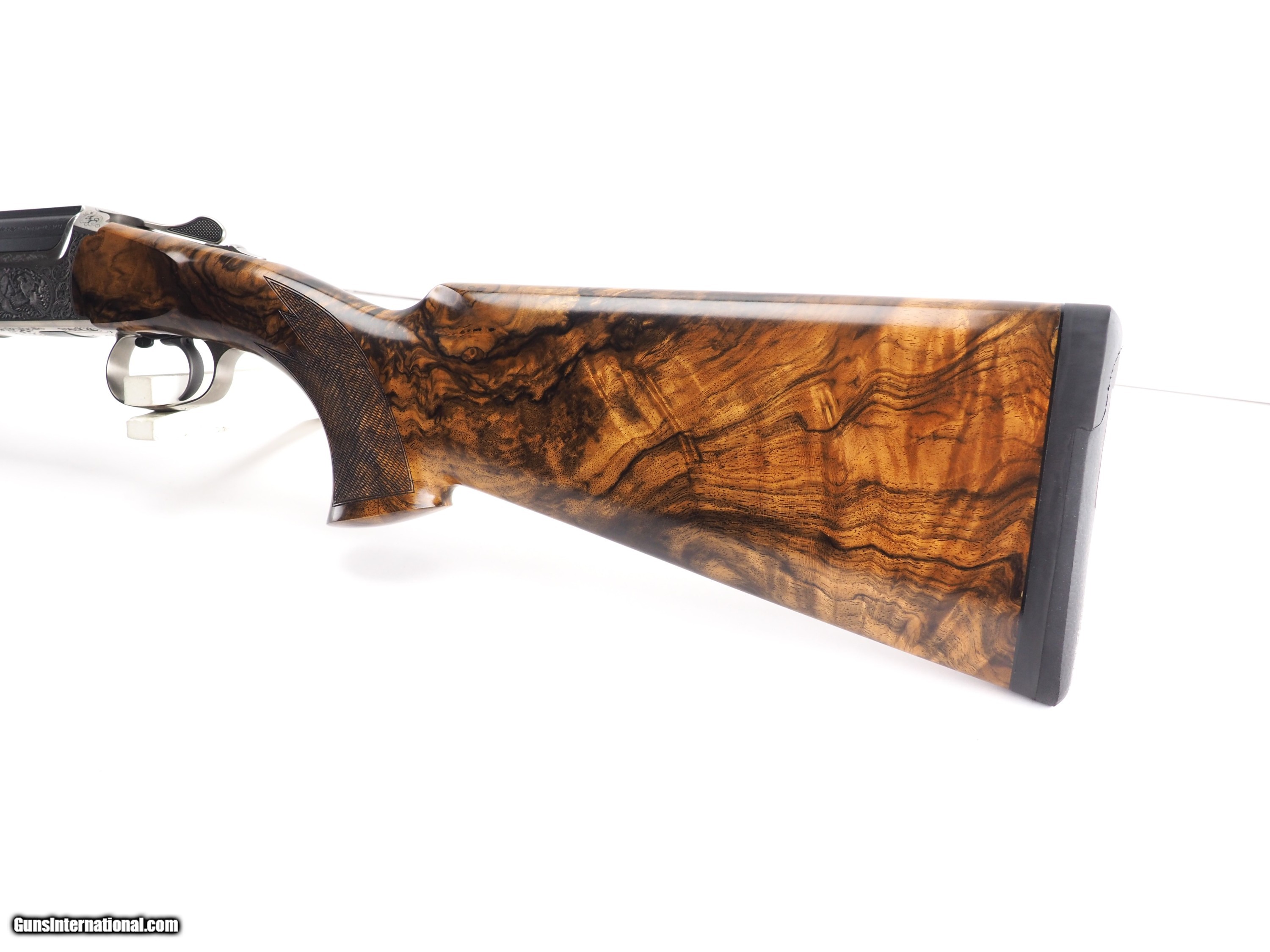Description: ??Blaser F3 Competition Sporting with traditional Grand Luxe engraving pattern, grade 9 wood, and non-adjustable comb. Shown with 12ga/32” barrels and optional factory Sinoid titanium chokes. We will put on any available gauge/barrels of your choice. Make: Blaser Model: F3 Grade: Grand Luxe Hand: RH Wood grade: 9 Comb: non-adj Barrel length: 30” or 32” Gauge: 12ga, 20ga, 28ga, .410 (or any combination thereof) LOP: 14.6” DAC: 1.5" (38mm) DAH: 2" (50mm) Chokes: 5x factory chokes of your choice (Ti available in 12ga only) Accessories: comb wrench, stock wrench, stock sleeves, trigger wrench, stock weight wrench, chokes, choke case, factory paperwork. SOLD |