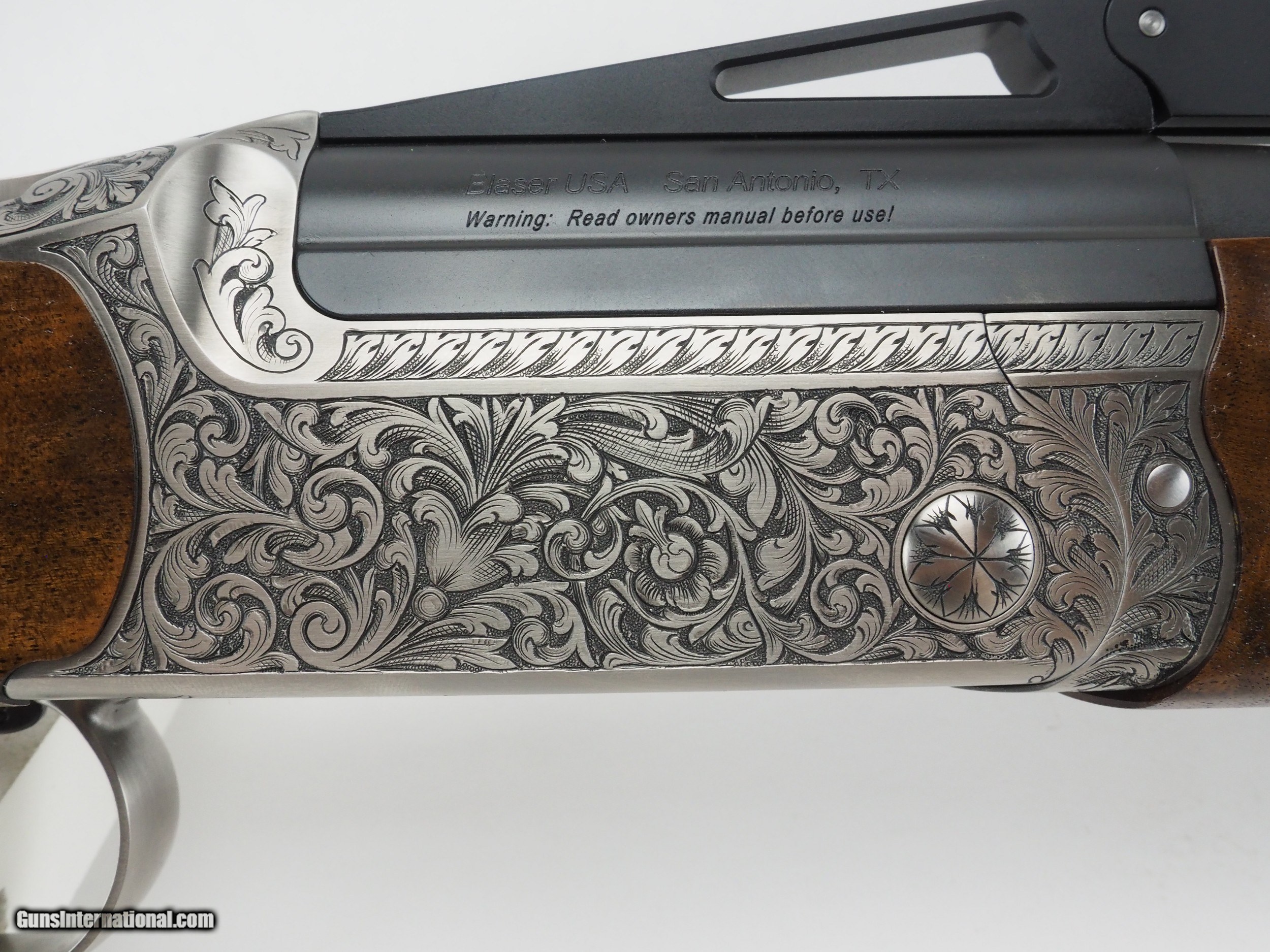 Description: F3 Super Sport with hand-engraved receiver in the Florenz pattern by Andreas Todt. Very cleanly done! Wood is grade 8 with very nice feathering and marbling effect. This gun will look equally nice with the Siena receiver (same cost). Note: we are more than happy to swap for barrels of different lengths, receivers of different styles, and stocks of different grades. Just ask! Make: Blaser Model: F3 Super Sport Grade: Florenz (hand engraved) Wood Grade: 8 Gauge: 12ga Barrel length: 30" or 32" Rib: Super Sport adjustable Hand: right Comb: parallel adjustable (standard on Super Sport) LOP: 14.8" DAC: 1.75" DAMC: 1.75" DAH: 2.5" Chokes: 5x factory extended stainless steel or 3x factory titanium Accessories: factory accessories Case: factory Blaser luxury case SOLD |