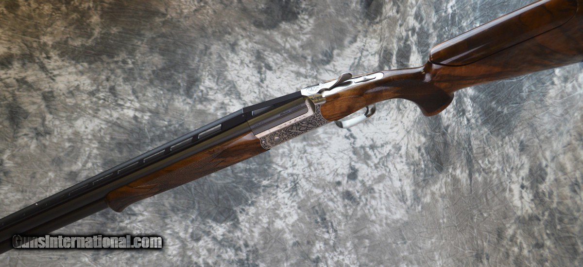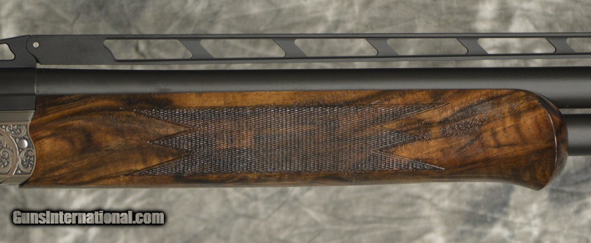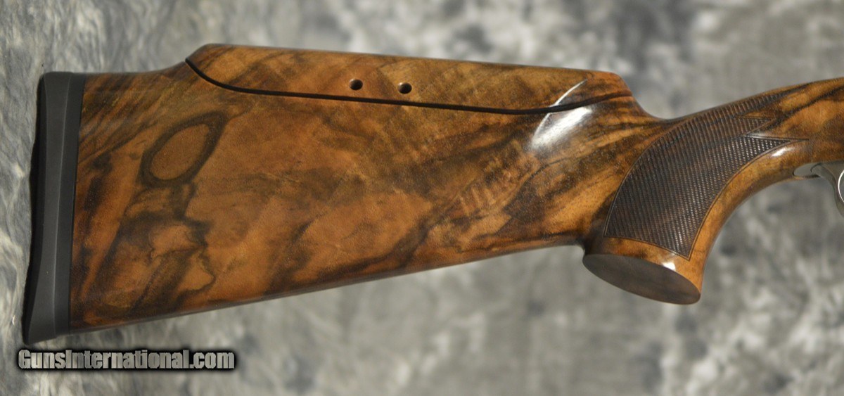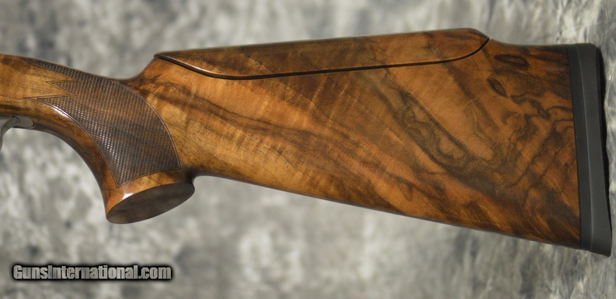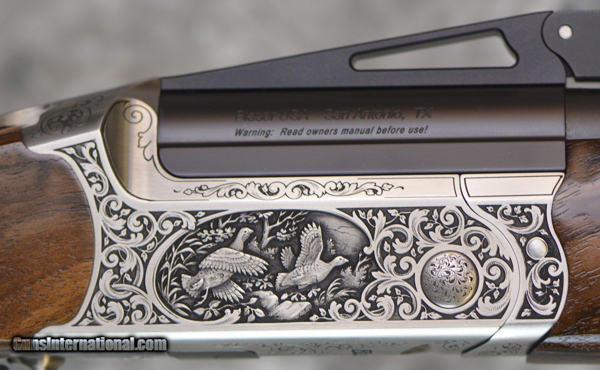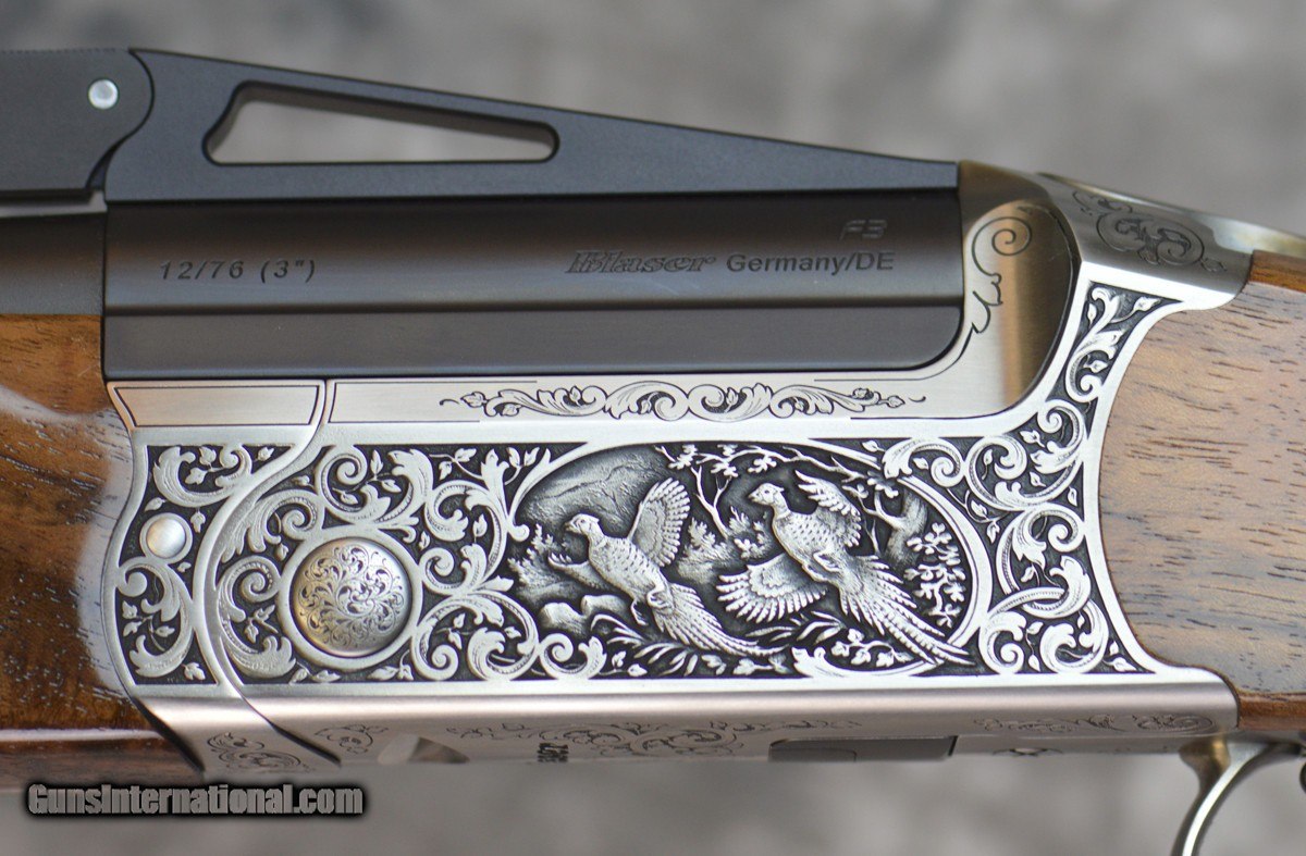 Description: New Blaser F3 Super Sport 12GA with 32" factory adj. rib barrels, factory extended Spectrum choke tubes, integrated barrel weight system. Factory deep relief engraved "Grand Luxe" pattern featuring game scenes and scrolls. Factory adj. comb Monte Carlo sporting stock with right-hand rollover/palmswell; Schnabel forearm. Includes factory case, chokes and tools. SOLD |
