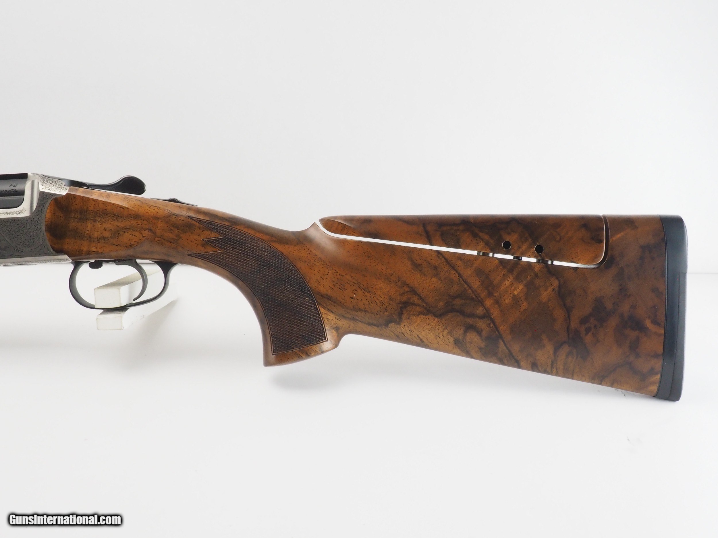 Description: 2020-dated F3 Luxus receiver with 2019-dated 12ga/32” Competition Sporting barrels. The wood set is grade 7, left hand, with factory adjustable comb. The stock does show some handling marks on the right side, likely due to contact with a shooting vest (see photos). The gun itself is in factory configuration, with no shortening of the stock or other modifications. Mechanically speaking, the gun is flawless. The barrels open with moderate, smooth resistance as you’d expect from a new gun. The lockup is perfect, with the top lever sitting in the same position as a brand new F3. The 2022 retail price on this configuration is $15,752.00, making this gun a really great value proposition. Model: F3 Hand: LH Grade: Luxus Rib configuration: Competition sporting Stock configuration:Competition sporting Comb: Factory adjustable Wood grade: 7 Condition: Used/Excellent Stock finish: Barrel:32" LOP:14.6 DAC:1.5" DAH: 2.0" Chokes: IC,S,LM,M,IM Case: Blaser Luxury Case Accessories: All factory accesories SOLD |