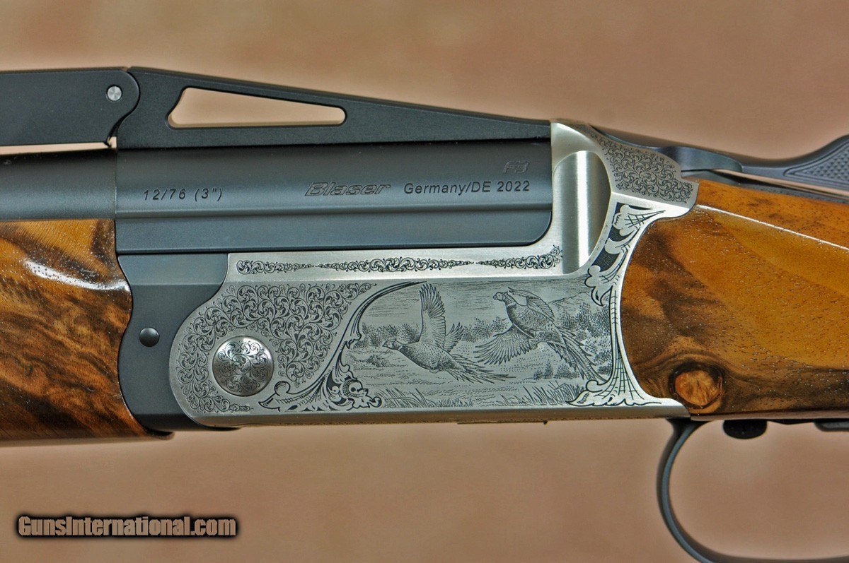 Description: New Blaser F3 Luxus Game Scene Super Sport 12ga. Features factory choke tube 32" barrels with high adjustable rib. Engraved receiver featuring Pheasants and Ducks. Upgraded grade 6 right handed Monte Carlo Sporting stock and Schnabel forend. Comes factory leather trim case. SOLD Shotgun Gauge: 12 Gauge |