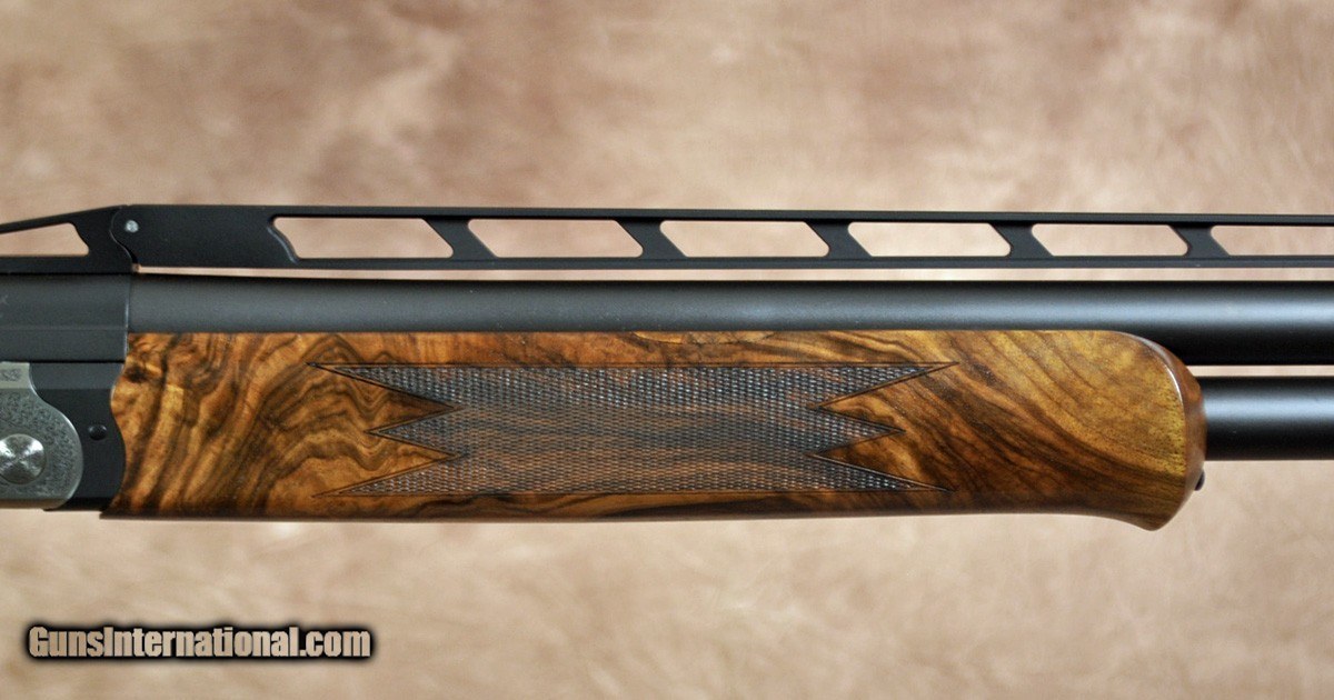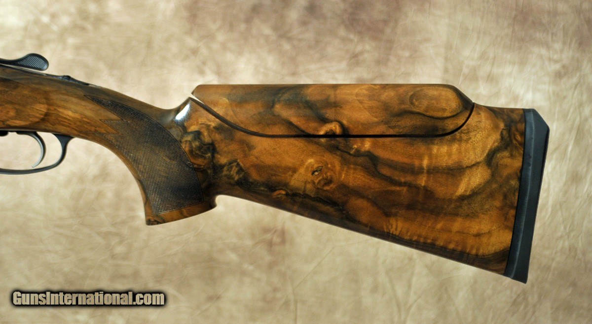 Description: New Blaser F3 Luxus Super Sport 12ga. Features factory extended choke tube barrels with adjustable high sporting rib. Engraved receiver featuring Luxus scroll pattern engraving with fixed selectable trigger. Outstanding right handed Monte Carlo Sporting stock with adjustable comb and Schnabel forend. Comes in factory leather trim case. Pacific Sporting Arms is the largest dealer in high grade shotguns in the world. SOLD Shotgun Gauge: 12 Gauge |