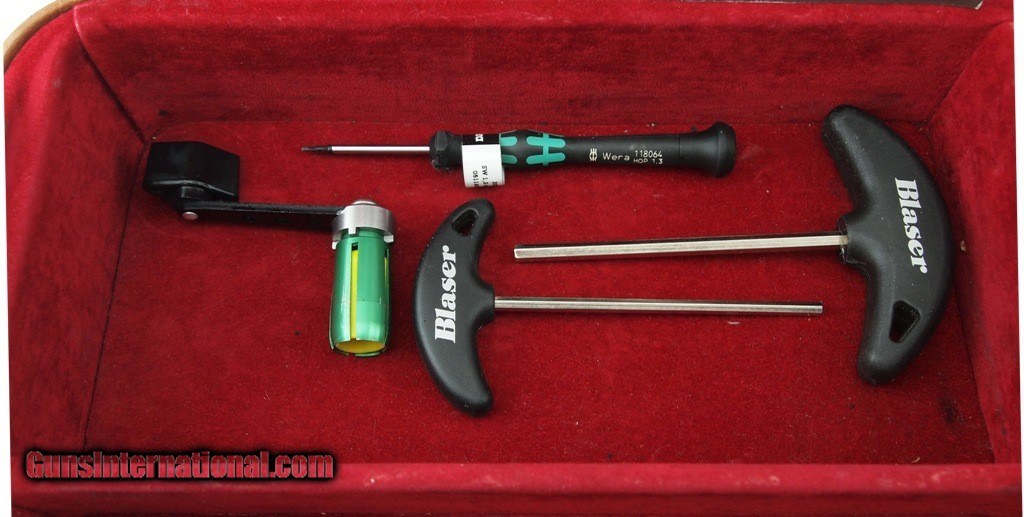 Description: Blaser F3 Luxus Super Trap Combo 12ga. 34 in Unsingle / 32 in O/U, total of 8 extended chokes (FULL (2) - IMPMOD - MOD (2) - IMPCYL - SKEET - LF), blued finish, engraved stainless steel receiver, silver mid-bead, white front bead, single trigger, beautiful checkered grip stock - forearm, adjustable comb, LOP 14 5/8", barrel weights, fitted Blaser hard case, center strap has pulled loose, owner manual and tools. This is a very clean shotgun! Add 3% for Credit Card Shipping $50.00 SOLD |