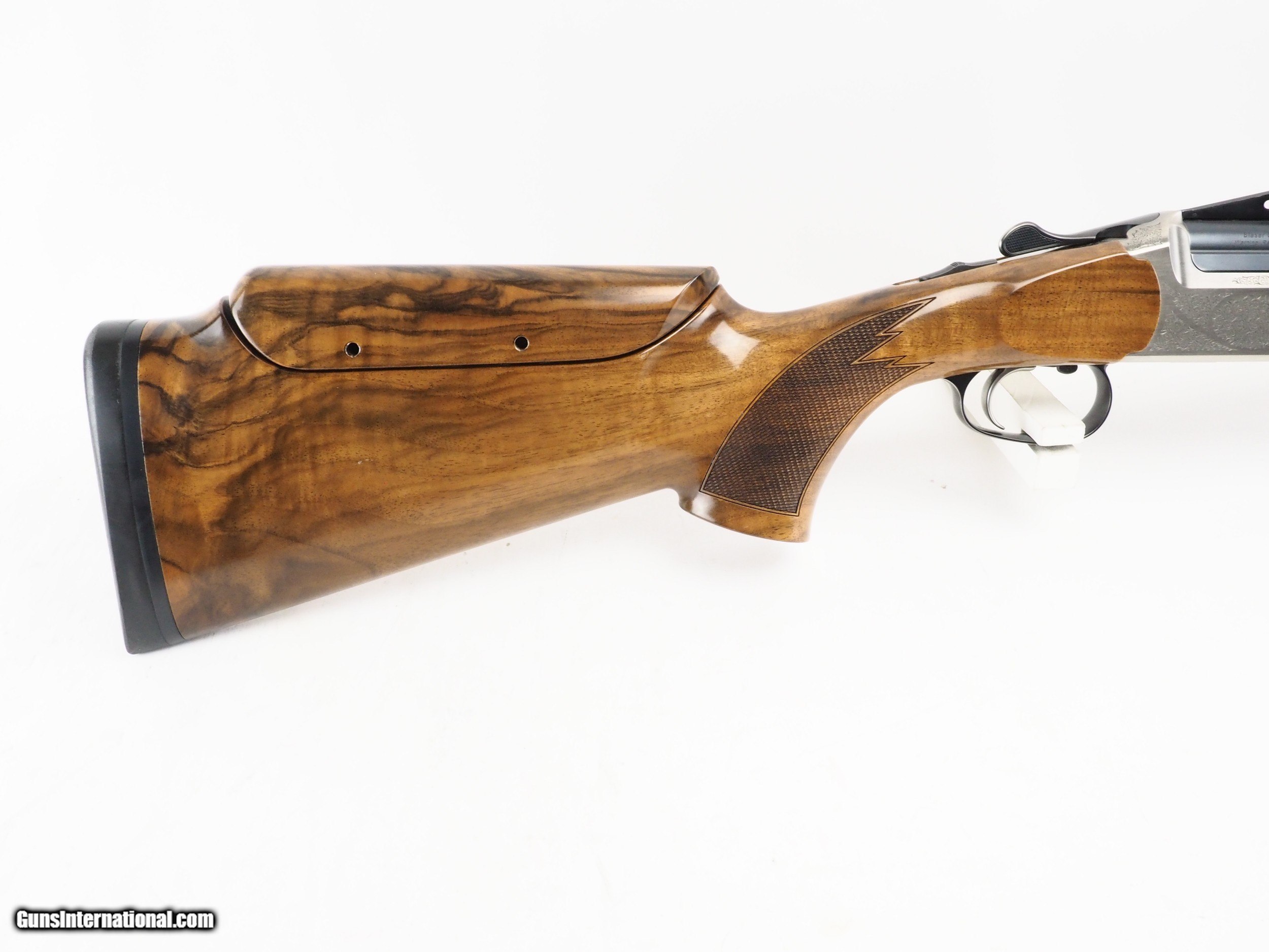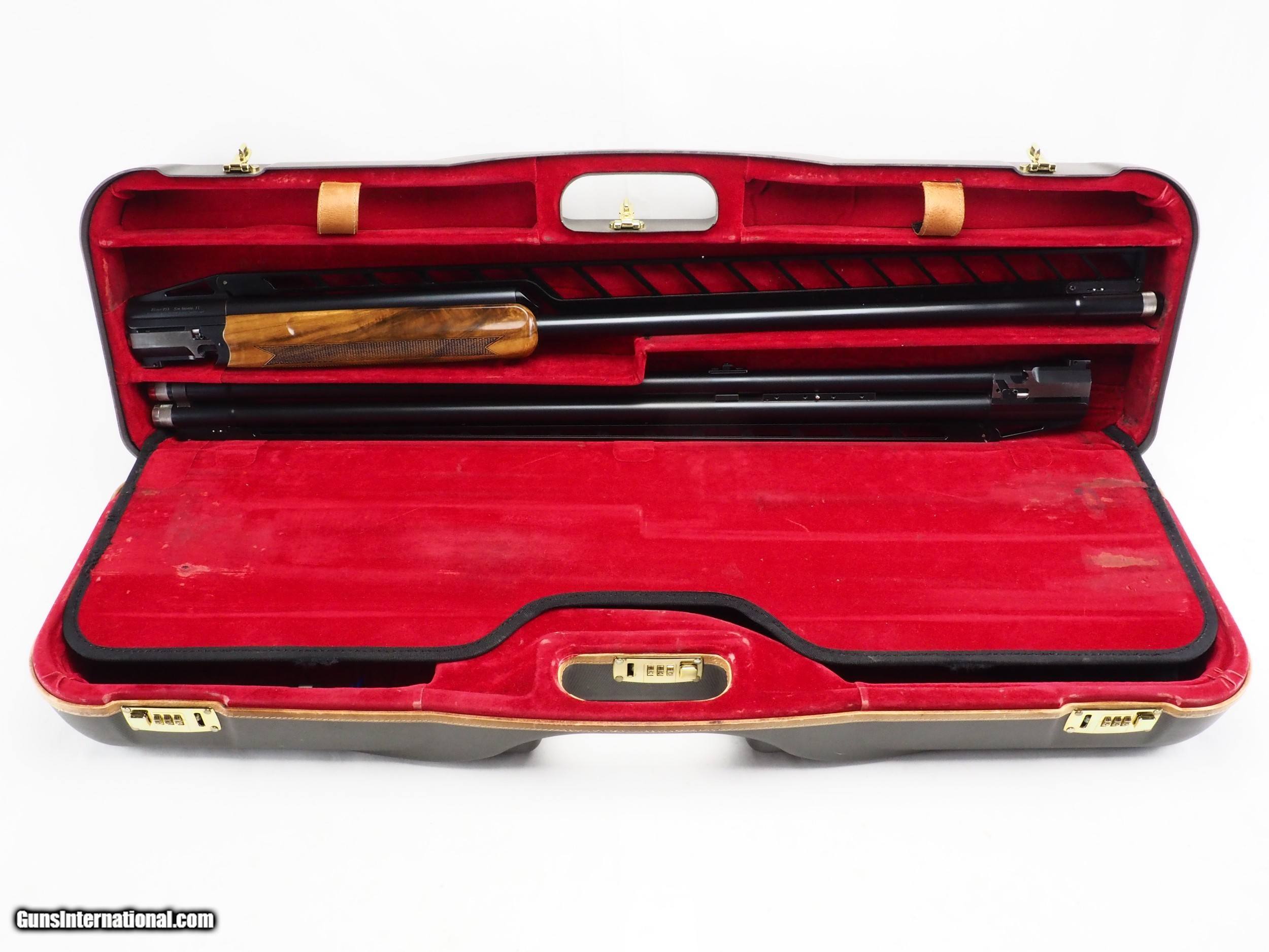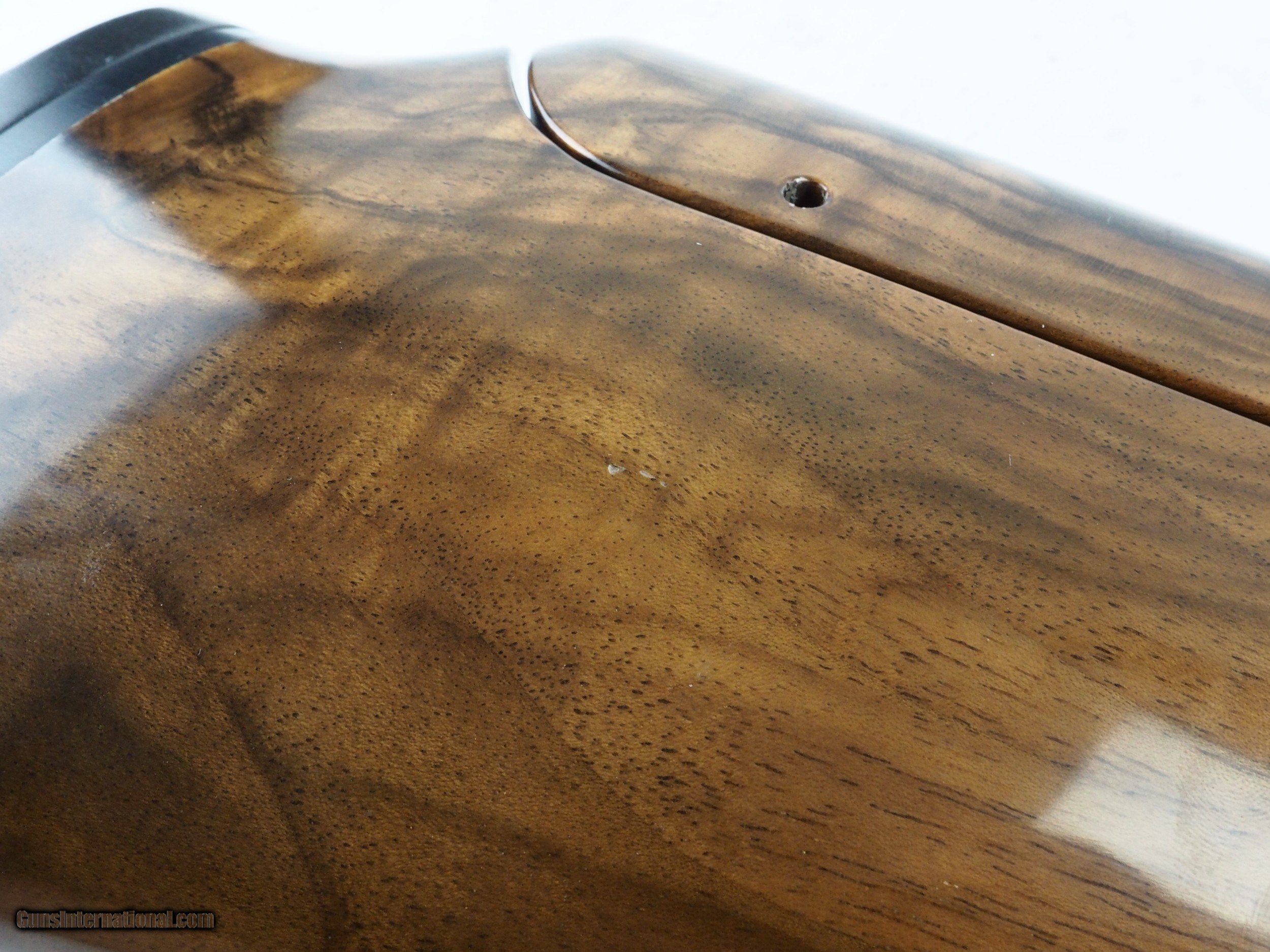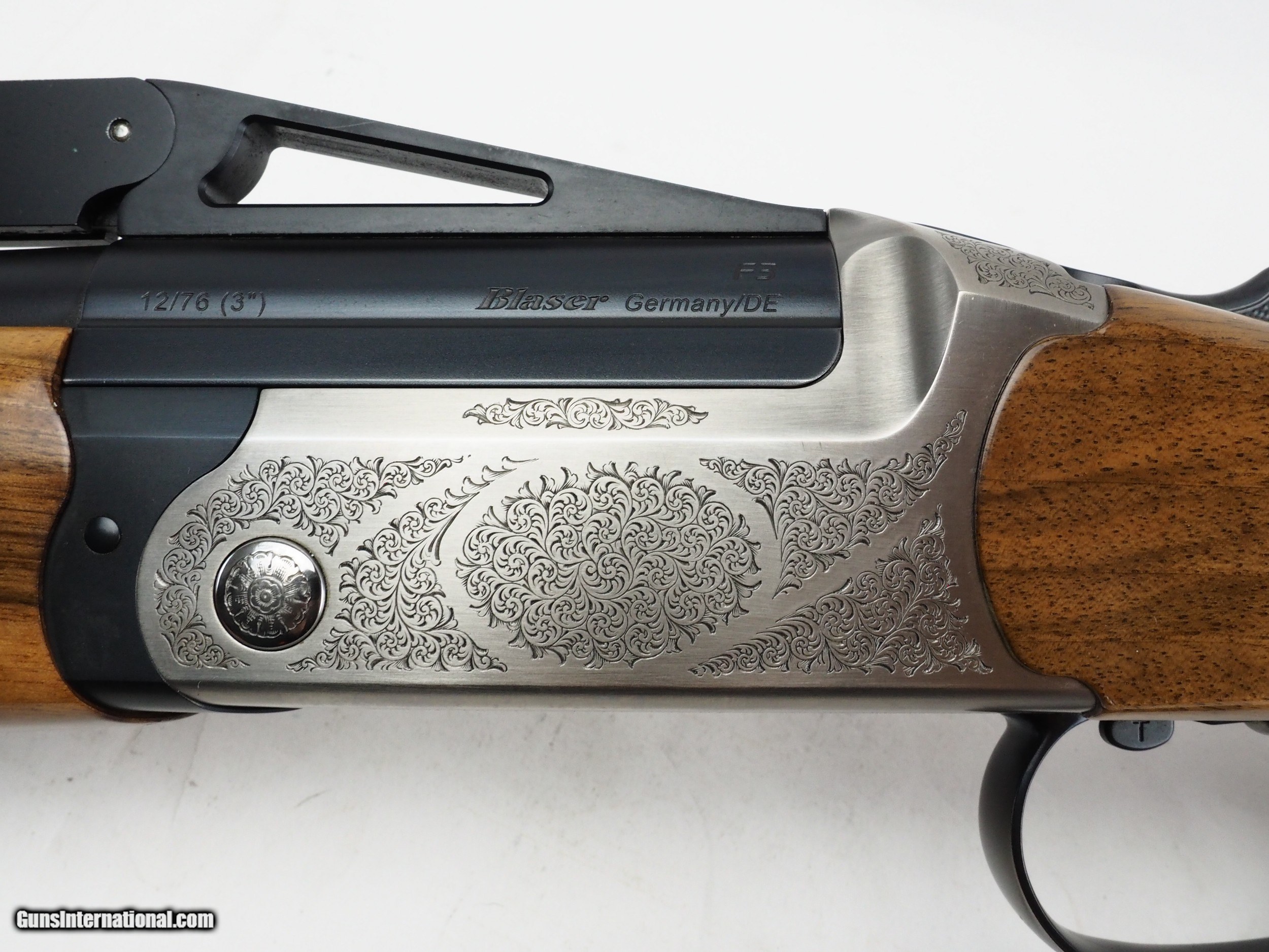 Description: Book #251. Price: $10,875.00 Very clean F3 Luxus Super Trap combo with double release trigger. Wood finish is pristine except for one or two very tiny dings (see photos). Metal finish is nearly perfect. Both barrels lock up tight, and have proper opening tension. Double release trigger can be swapped for pull trigger at no charge. Make: Blaser Model: F3 Super Trap combo Grade: Luxus w/ deep relief scroll engraving Trigger: double release Hand: right Barrel length: 32"/34" LOP: 14.75" Drop at comb: 1.5" Drop at Monte Carlo: 1.5" Drop at heel: 2.5" Chokes: SK (x2), IC, LM, M, IM, LF, F, XF - all factory extended Accessories: comb wrench, stock wrench, rib wrench, choke wrench, trigger wrench, barrel weights, stock weights, unsingle barrel weight, stock sleeves (three) Case: factory trap combo case SOLD |