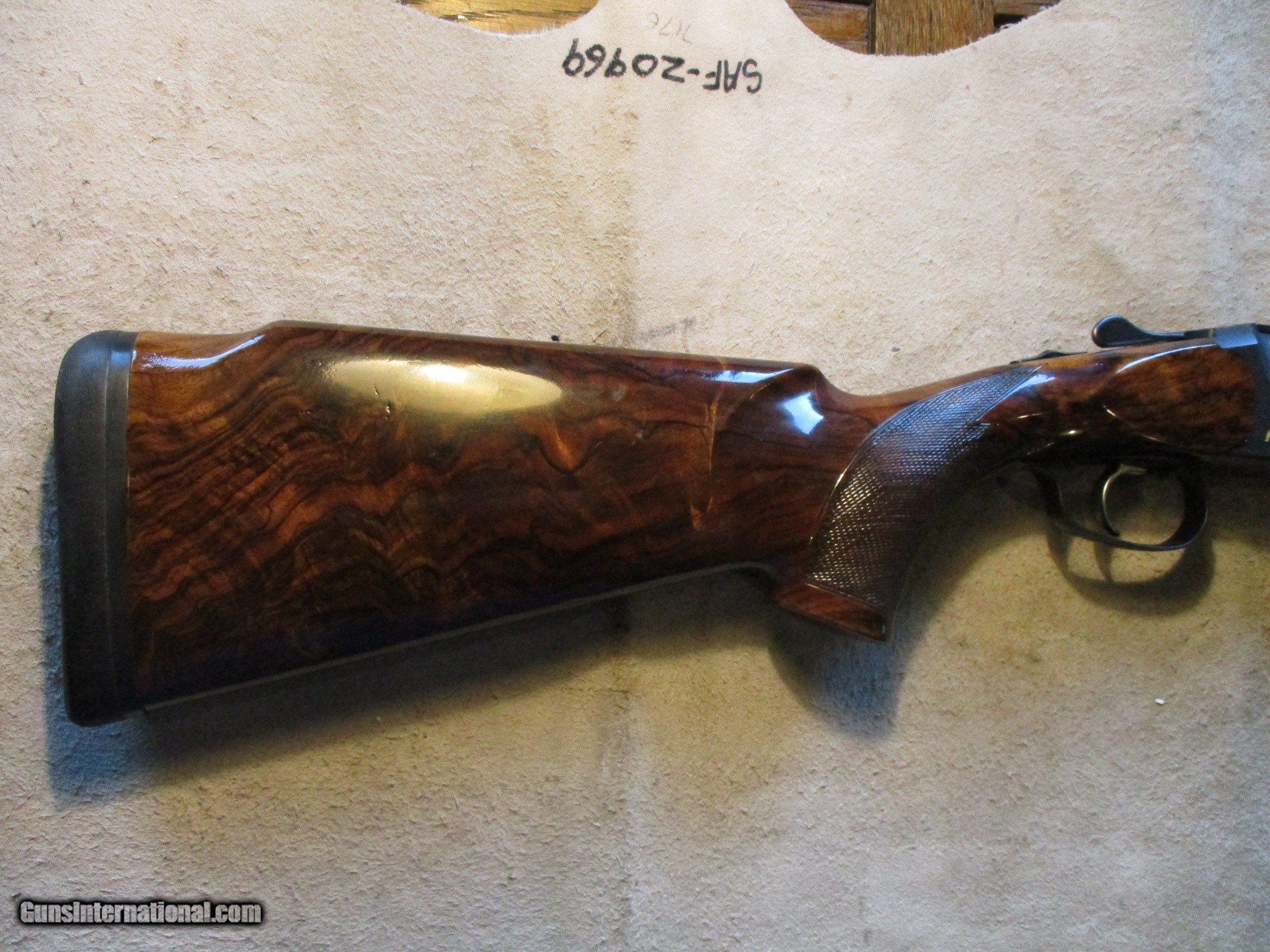 Description: Blaser F3 Sporting clay, set of 4 barrels. 12ga, 20ga, 28ga, 410, all 32" barrels. Barrels are the new 12 degrees barrels. Comes with a PILE of chokes, 28 if I counted right. Comes in the hard case as shown. SN is FR0036xx. Factory finish on all the metal, clean gun. Custom stock as picutred, done by Greenwood. LOP is 14.5" as pictured. Has a crack as shown. Comes with the hard case as shown. Priced to sell to put your own wood on it and have a first class clays gun! We will trade for silver and gold. We accept personal check, any certified funds, Venmo or Zelle. We can also take your credit card, +3%. Email me if you would like these pictures sent to you, they will come through bigger and better than on the listing page here. We do offer Layaway. Our standard terms are 25% down, 90 days. Initial deposit is not refundable. Email me with any questions. Please check your local laws to confirm it is legal to own in your state! Buyer pays $100 shipping and insurance i to your FFL in the lower 48. AK, HI or PR is extra. I will ship to California, as long as it is legal, NO PROBLEM! All my guns come with a non-firing, 3 day unconditional return privilege, from the day UPS delivers to your dealer. Buyer pays shipping both ways if the gun comes back. Please make sure to make it to your FFL to inspect within the 3 days. I am a licensed FFL, and will include a copy of my FFL with the gun for your dealer’s records. I will ship to a C&R if the gun is eligible. I will ship to California, but you need to confirm the gun is legal where you are, California or other. WE BUY AND CONSIGN GUNS AND GUN COLLECTIONS! We will travel to pick up collections! I am always looking for good clean, old original Winchesters to buy, consign, or trade, especially Pre '64's model 70's and model 54's. WE ALSO TRADE FOR CLASSIC CARS AND TRUCKS! We also trade for gold and silver. SOLD Shotgun Gauge: 12 Gauge, 20 Gauge, 28 Gauge, .410 Gauge Manufacturer: Blaser Model: F3 Barrel Length: 32 Condition: Used in case |
