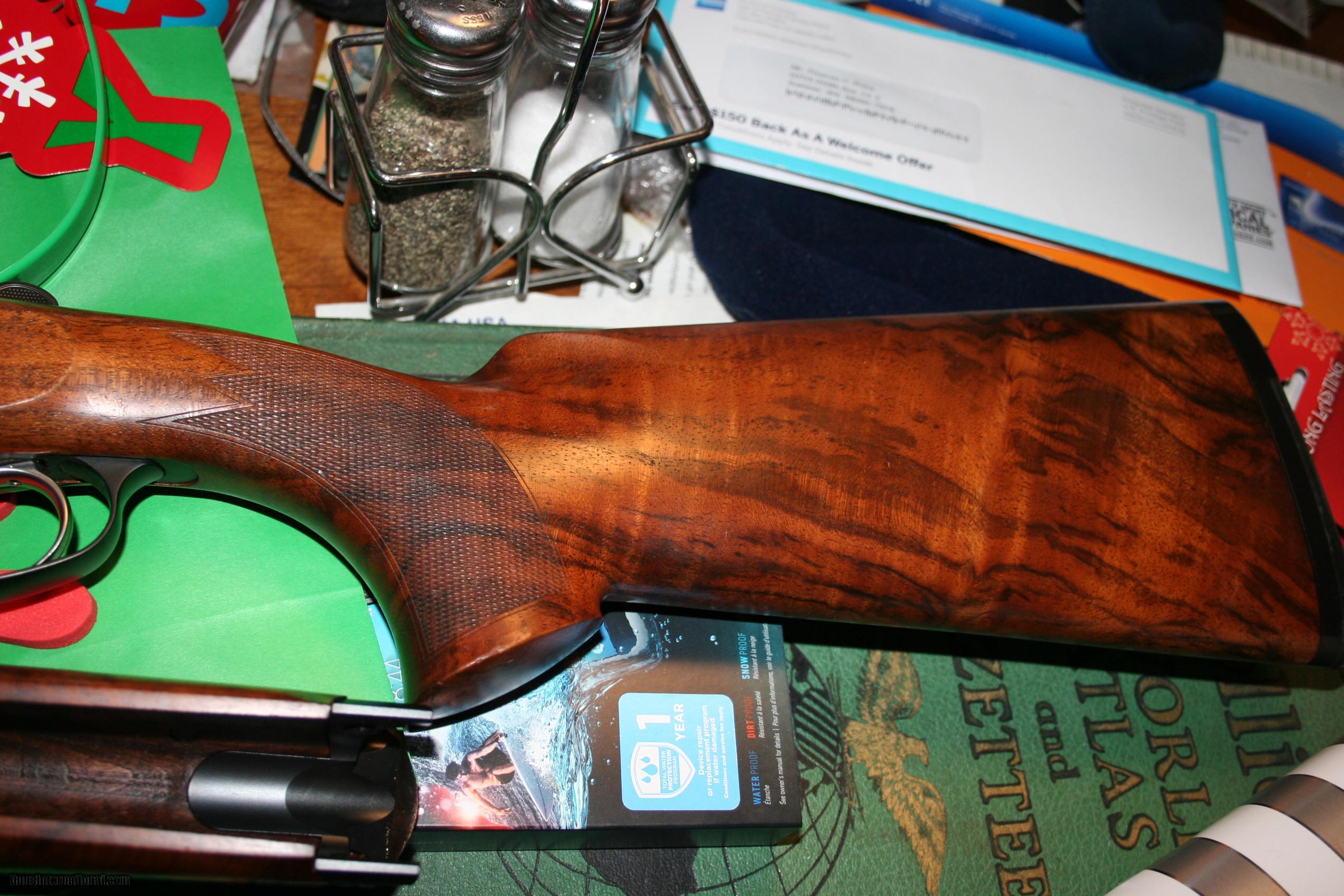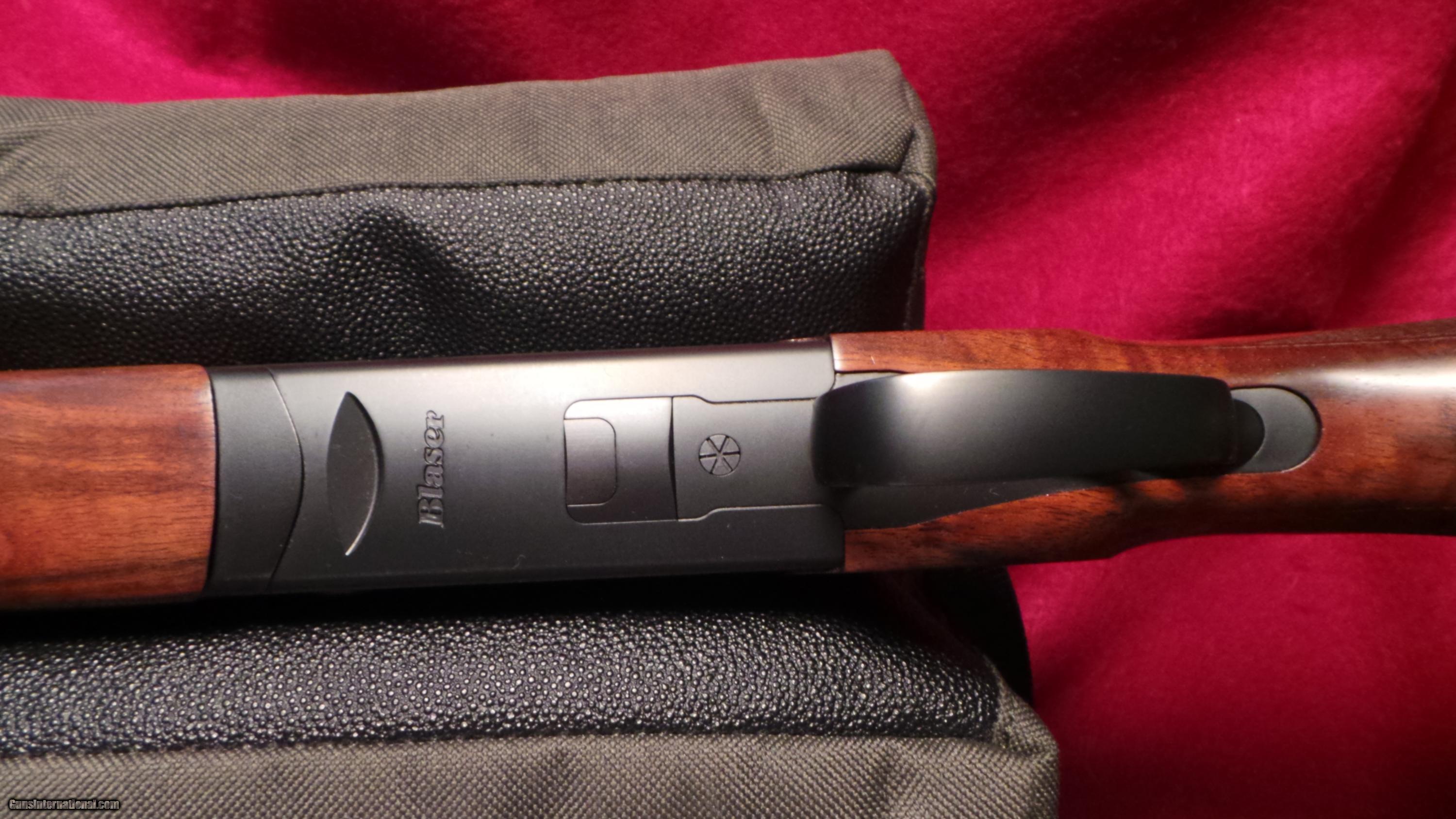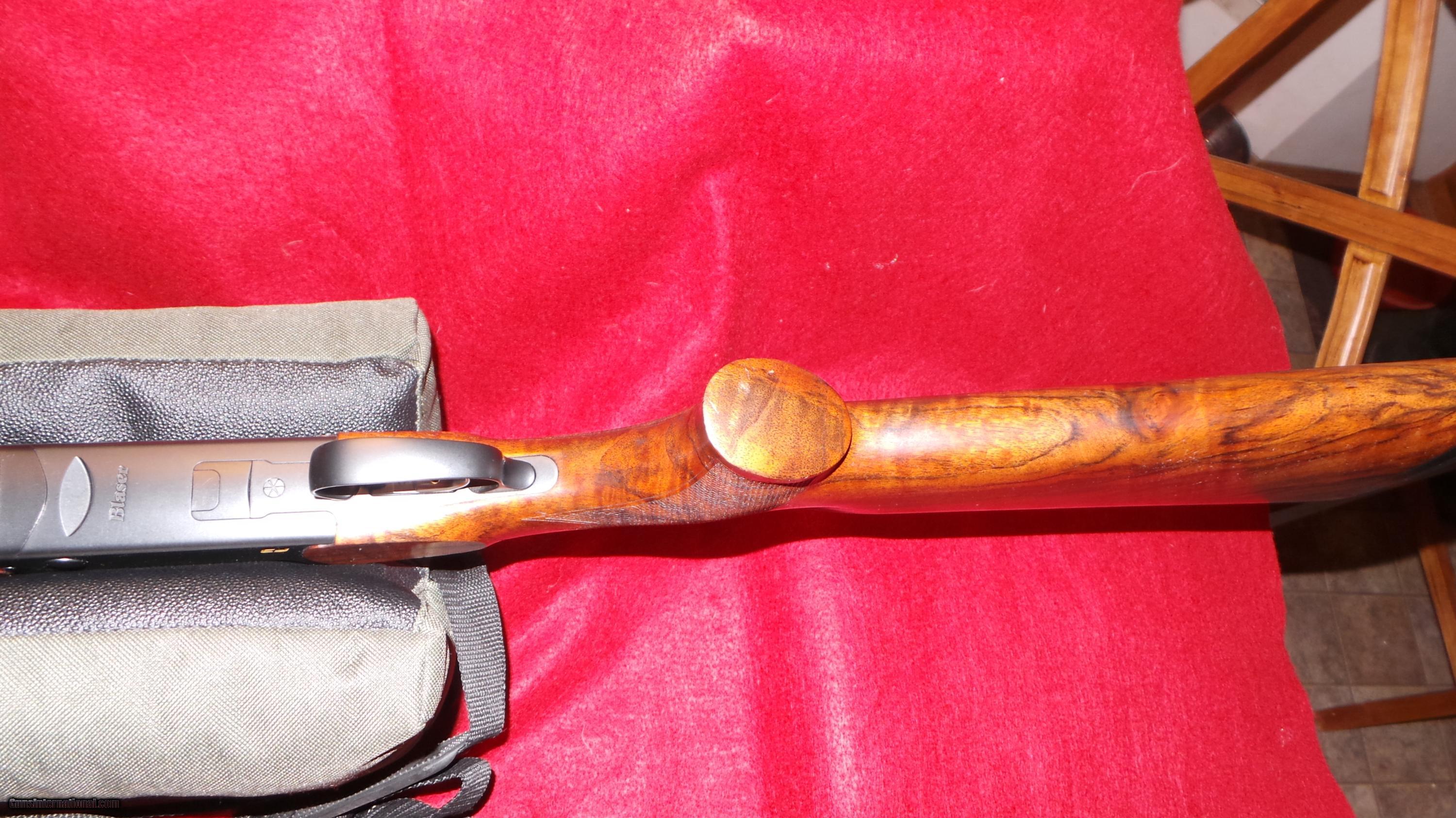 Description: (SALE PENDING) Blaser F3 Sporting in Excellent condition, 12ga, 32", with Tapered Flat Rib, Chokes area have very "slight flare", - - not the large unsightly buldge of others with - (2) chokes, L-Mod & Imp Mod. A Dynamically Balanced Sporter with Upgraded Marbled Walnut and Slim Sporter Schnabel Forend. She has right hand palm swell & "slight-cast-off". I have her at the rear on the adjustable trigger at 14 3/8". Changing the trigger forward will go to 15 +" and this is over the original Baser "Small Sporting pad"! A standard KickEeze will be longer unlless it's a small 1/2" KickEeze. Current factory pad is perfect. Only light marks from handling at the range & rack! No tools, case, or Dynamic balancing weights other than what is set up on her right now! Its obvious by the breech face and the locking lever position, especially when I have the Locking bolt "closed" with firing pins protruding for your observation of locking bolt position, that She hasn't been shot much at all... An Outstanding Value. (253) 576-2082 E-mail: tprice53comcast SOLD |