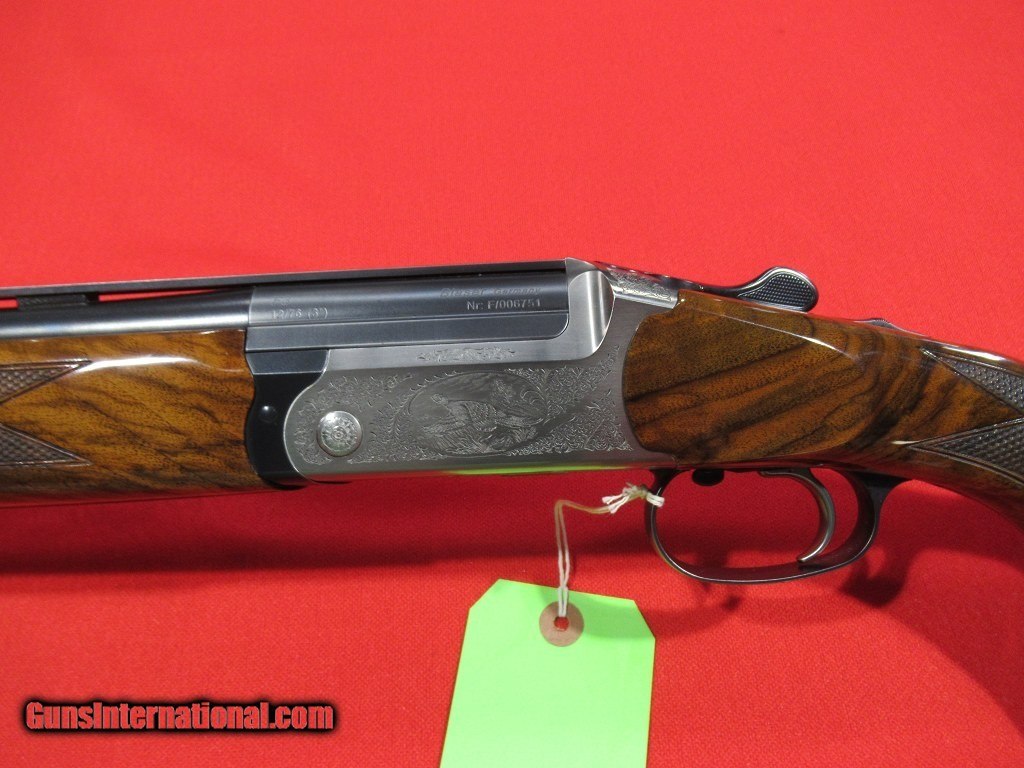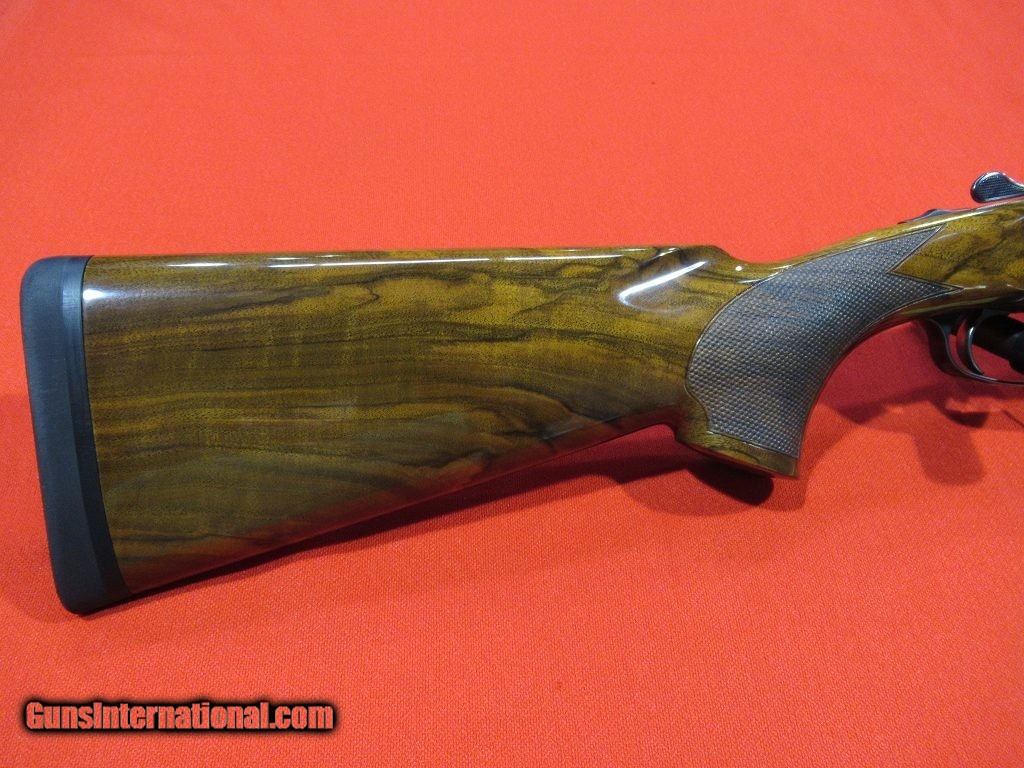 Description: Blaser F3 Flat Rib Sporting Luxus Grade: finely figured walnut stock with schnable forend, satin nickel receiver with game scene engraving surround by scroll work, selective trigger, manual safety, threaded for factory choke tubes. No Case. Comes with 5 Comp-N-Choke tubes, 34" BARRELS. SOLD |