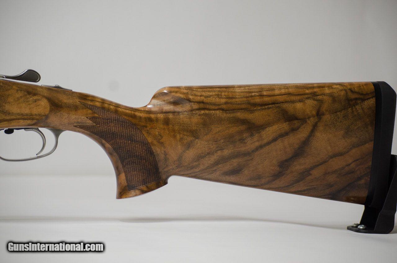 Description: Description Blaser F3 Vantage Sporting 12GA 32″ with Grand Luxe engraving and beautiful upgraded grade VI wood. The Blaser F3 was a ground breaking, zero-based development by Germany‘s leading manufacturer of sporting firearms. Superior weight distribution makes it extremely point-able, while at the same time keeping it steady and smooth when following the line of the target without infringement on acceleration or speed of swing. The F3‘s extremely fast lock time and crisp trigger, that breaks like glass at approximately 3 1⁄4 lbs, ensure that the shot string is on its way the same instant the shooter‘s brain gives the command to pull the trigger The new F3 “Vantage” not only scores with the mechanical perfection found in all Blaser shotgun receivers, it also delivers ideal target awareness due to the hybrid nature of the raised rib. The adjustment free barrels offer the perfect blend of elevation for comfort and unsurpassed peripheral vision. This unique rib design insures your sight picture will be consistent when shooting aggressively or relaxed depending upon target presentation. Balance System: The Blaser Balancer-System allows for individual adjustment of the shotgun’s balance by means of adjusting the barrel balancer that is positioned between the barrels together with the stock balancer. The barrel weight can be increased by up to 213g using balancer weights. The stock balancer is a threaded rod that can be equipped with one or two weight cylinders. Butt-Stock: The Vantage butt stock features fine checkering, and a lacquered finish. A slip rubber recoil pad for optimum protection for the shoulder is included. Chokes: All new Blaser F3 shotguns come with 5 extended choke tubes, made by Briley. SOLD |