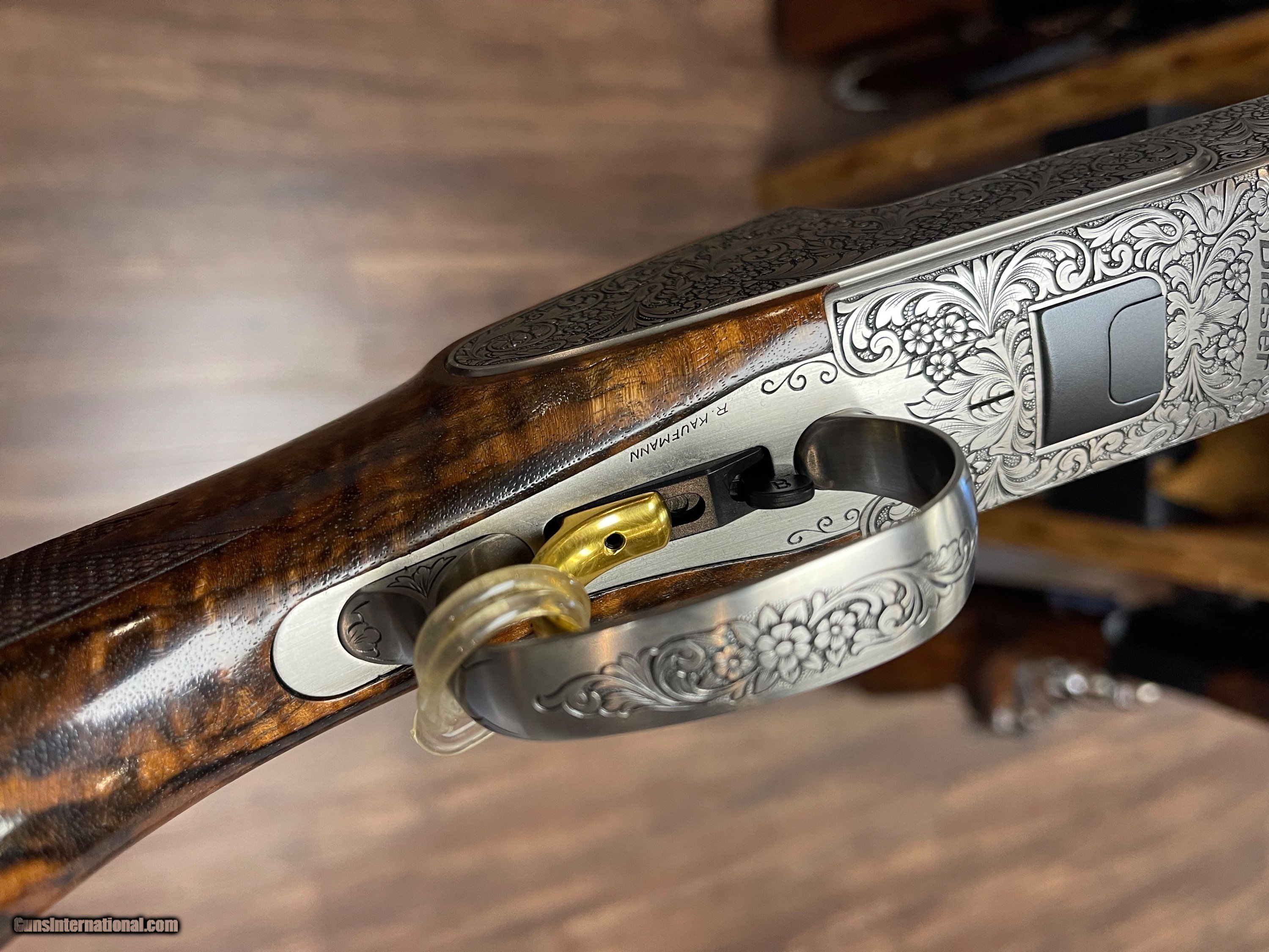 Description: New - Blaser F3 Victorian Scroll - Hand engraved by R. Kaufmann - Equiped with a right hand Competition Grade 9 stock with a LOP of 15 1/2" and an English forearm. Pictured with 12ga 32" Vantage barrels but we have lots of different calibers, lengths, and rib styles available for swap if desired. Included is a factory Blaser Negrini 2-Barrel leather trimmed case, full set of factory Briley chokes, barrel weights, and more. This gun is in new unfired condition in on consignment. SOLD Shotgun Gauge: 12 Gauge Manufacturer: Blaser Model: F3 Victorian Scroll |