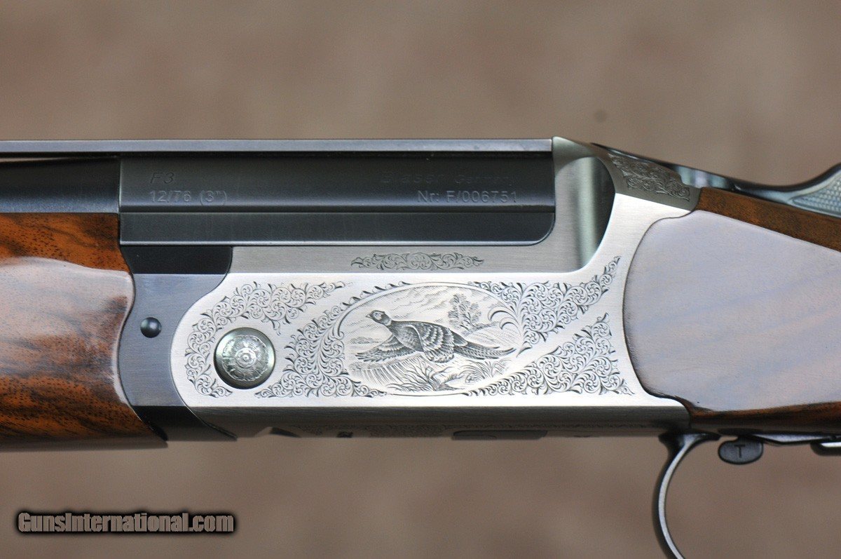 Description: Pre owned in excellent condition Blaser F3 Sporting 12 gauge. Features Luxus Game Scenes, 34″ factory C/T barrels with 6 comp n choke choke tubes. Grade VI sporting stock with schnabel fore arm and factory hard case- SOLD |