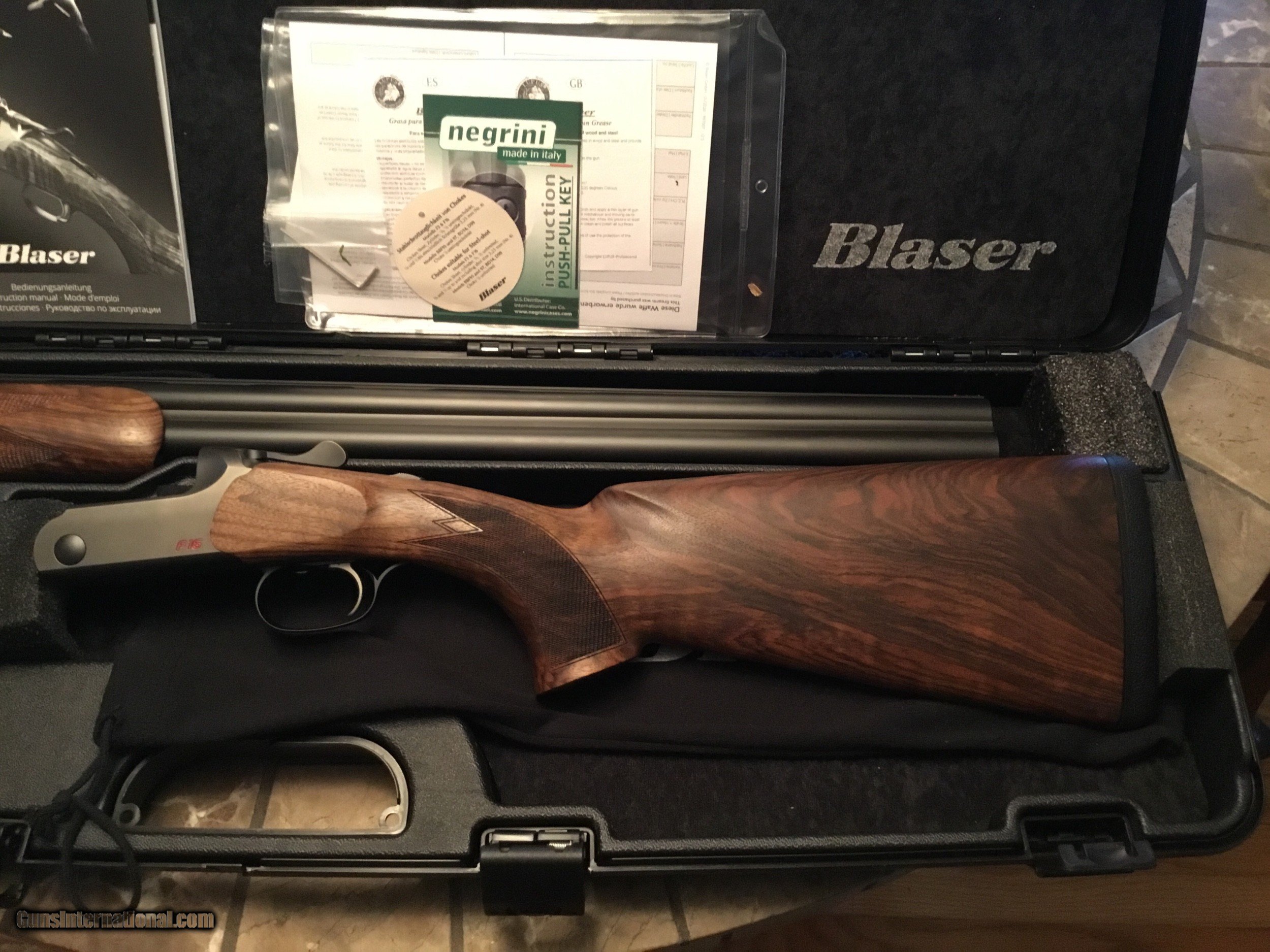 Description: Blaser F 16 12 gauge With 30" barrels with 3 stock weights which are installed beautiful wood with nice dark lines it the wood. The gun is all factory specs. No modifications adjustable trigger. The trigger is very fast with a 3.6 lbs pull. This fire arm has fired 250 rounds handles very fast and very smooth to swing. This is a very affordable starter gun for someone who is starting to shoot competition . This fire arm is excellent condition and shows no handling marks. The Blaser shotguns are well know for having a long service life and Blaser service is as good as it gets. shoot worry free with Blaser. SOLD Shotgun Gauge: 12 Gauge Manufacturer: Blaser Model: F-16 Serial Number: FGRO 12705 Barrel Length: 30” Chambers: Excellent Ejectors: Blaser automatic Condition: Excellent Metal Condition: Excellent Wood Condition: Excellent Bore Condition: Excellent Barrels: Blaser Factory Barrel Type: O/U vent rib Action: Blaser O/U Triggers: Adjustable factory Stock: Walnut Stock Dimensions: Factory Stock Drop: Factory Stock Comb: Factory Stock Heel: Factory Stock Cast: Left palm swell Fore End: Walnut checked Butt Pad: Blaser LOP: Factory 14 1/2 Rib: Vented Finish: Blued Weight: 7.6 lbs. Sights: Factory Manufacture Date: 2021 Chokes: Blaser tubes Case: Factory plastic Item Location: Carmi Illinois |