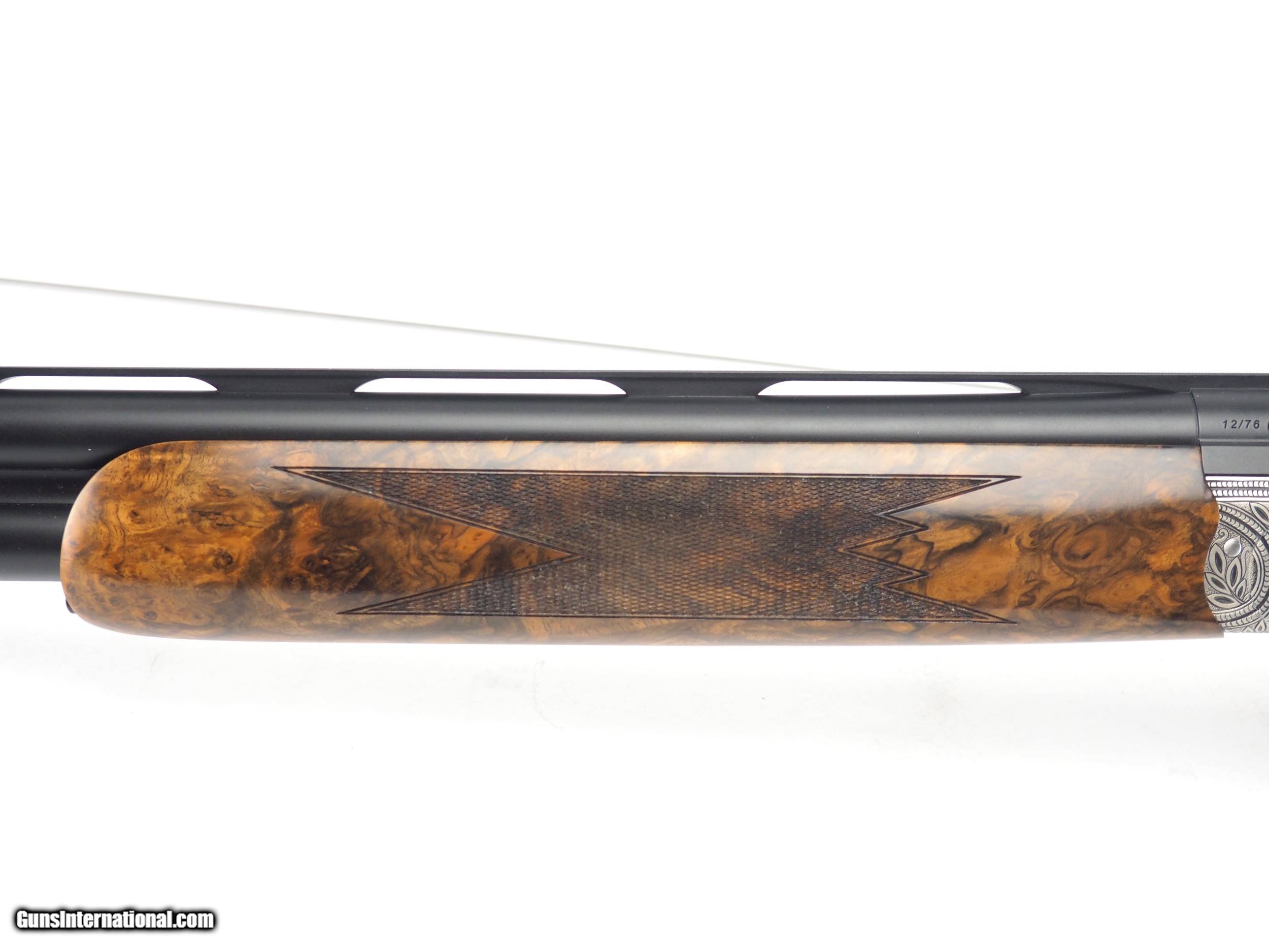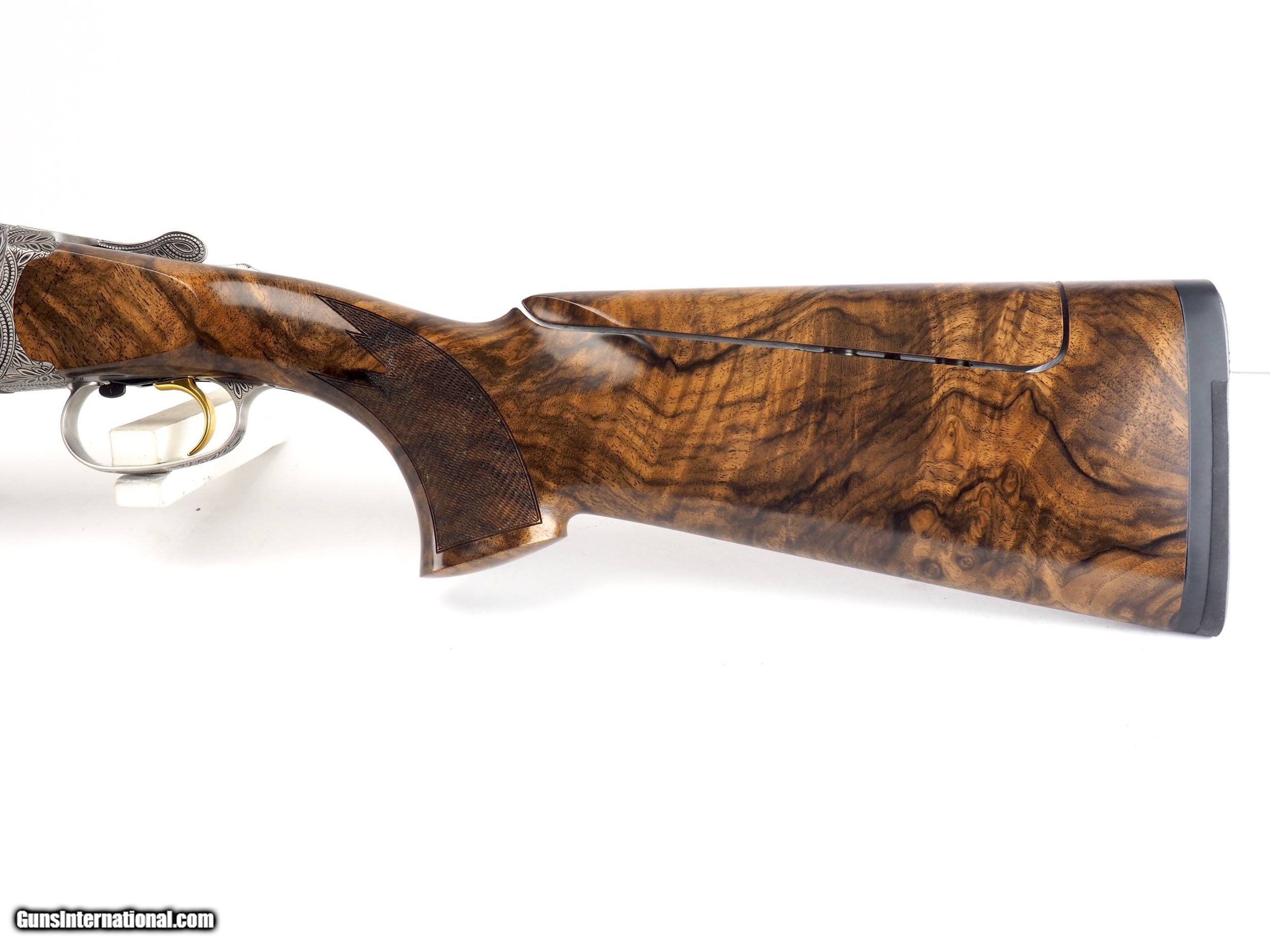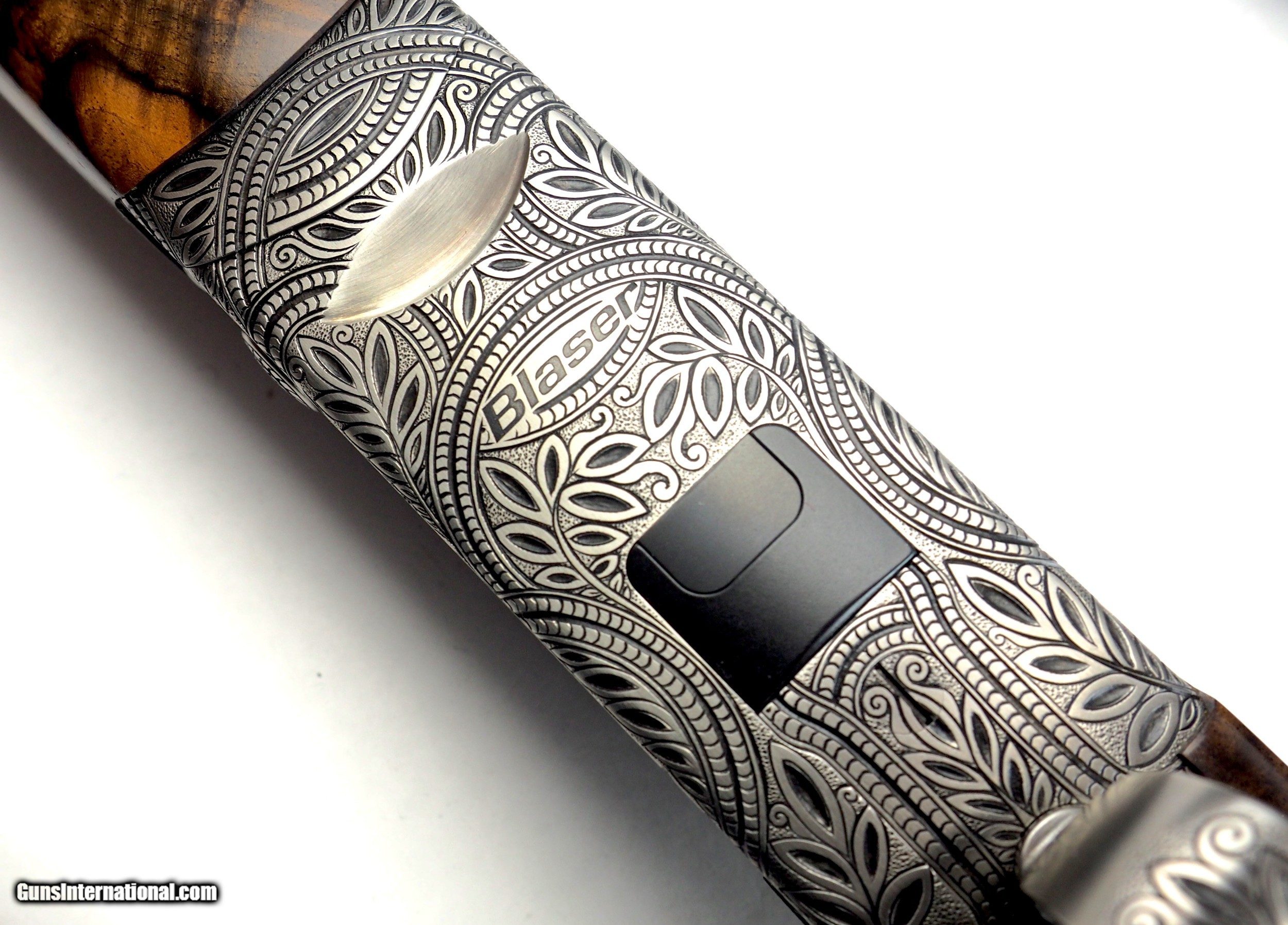 Description: The Black Leaf Scroll is possibly the favorite engraved gun amongst the Target Shotguns/Precision Fit Stocks employees! Josefine Gröbel's distinctive wrap-around, full-coverage engraving pattern lends the receiver an almost round body appearance. The chance of any of your friends having a gun even remotely similar is slim to none! You just have to view the photos, really. Rounding out this stunning gun is a gorgeous set of grade 10 wood. Are you tired of being told "no" when you want a shotgun setup your way? "Why can't I get this stock with that barrel," you ask. "Because it's not made that way," they reply. At Target Shotguns Inc, we are happy to build you whatever configuration of Blaser F3 fits your needs and desires. Simply choose the style of receiver, configuration/grade of stock, rib height, and barrel length/gauge. Because Blaser components require zero fitting, you are 100% assured that all components will properly mate together as if they left Germany together as a gun. Use Blaser's modularity to your advantage, and with no special order fees! If you're not sure which setup you need—because really, it's a lot to digest!—simply give us a phone call at 828-693-3833 and Bob or Steven will happily walk you through to the best F3 setup for your particular needs. Model: F3 Sporting Grade: Black Leaf Scroll Wood grade: 10 Comb: adjustable Condition: new Hand: RH Barrel: 30" or 32" LOP: 14.6" DAC: 1.5" DAH: 2.0" Stock configuration: Competition Sporting Stock finish: oil Chokes: 5x factory extended stainless Case: factory Accessories: all factory accessories (grease, chokes, weights, wrenches, paperwork, etc) SOLD |