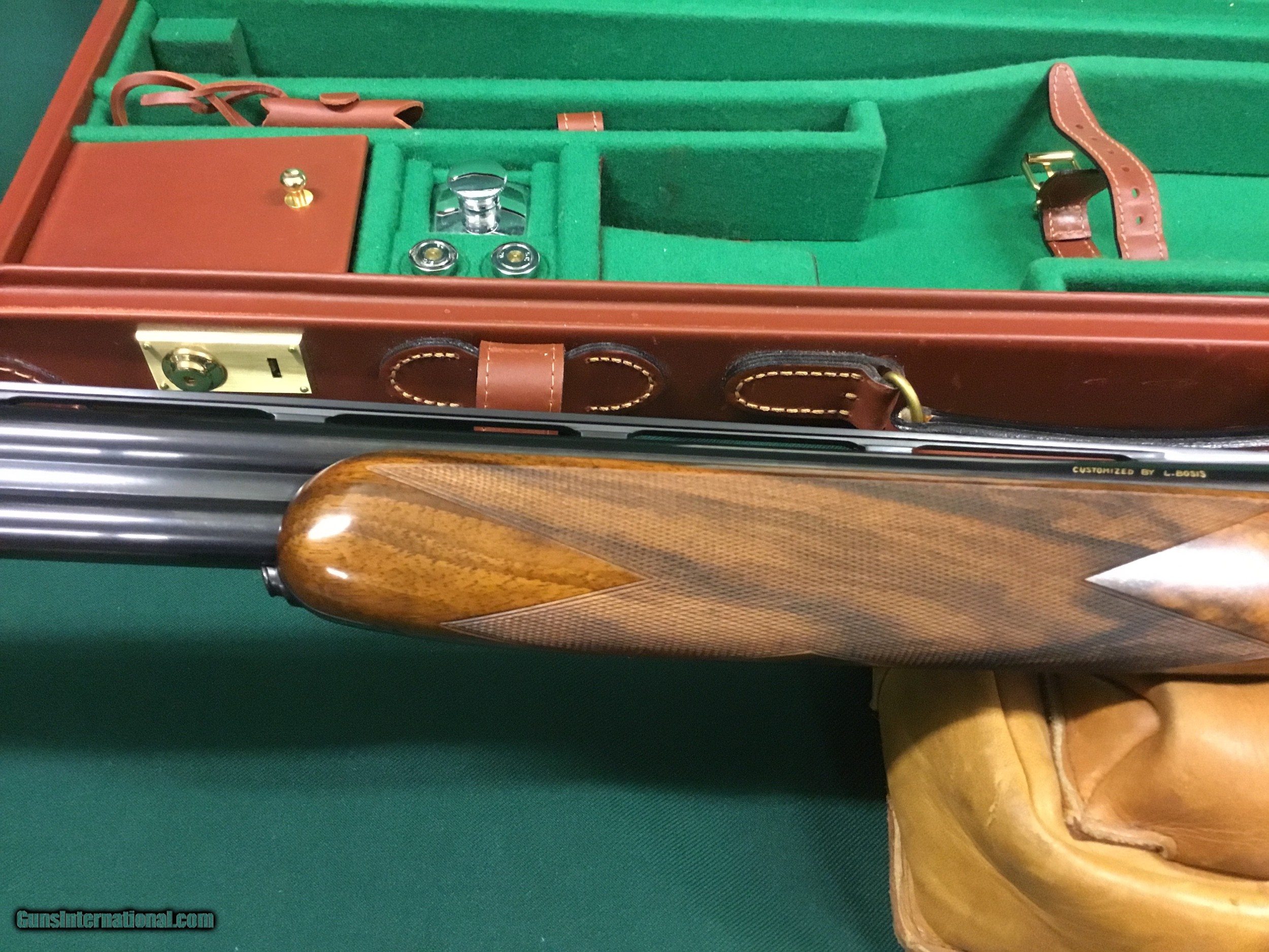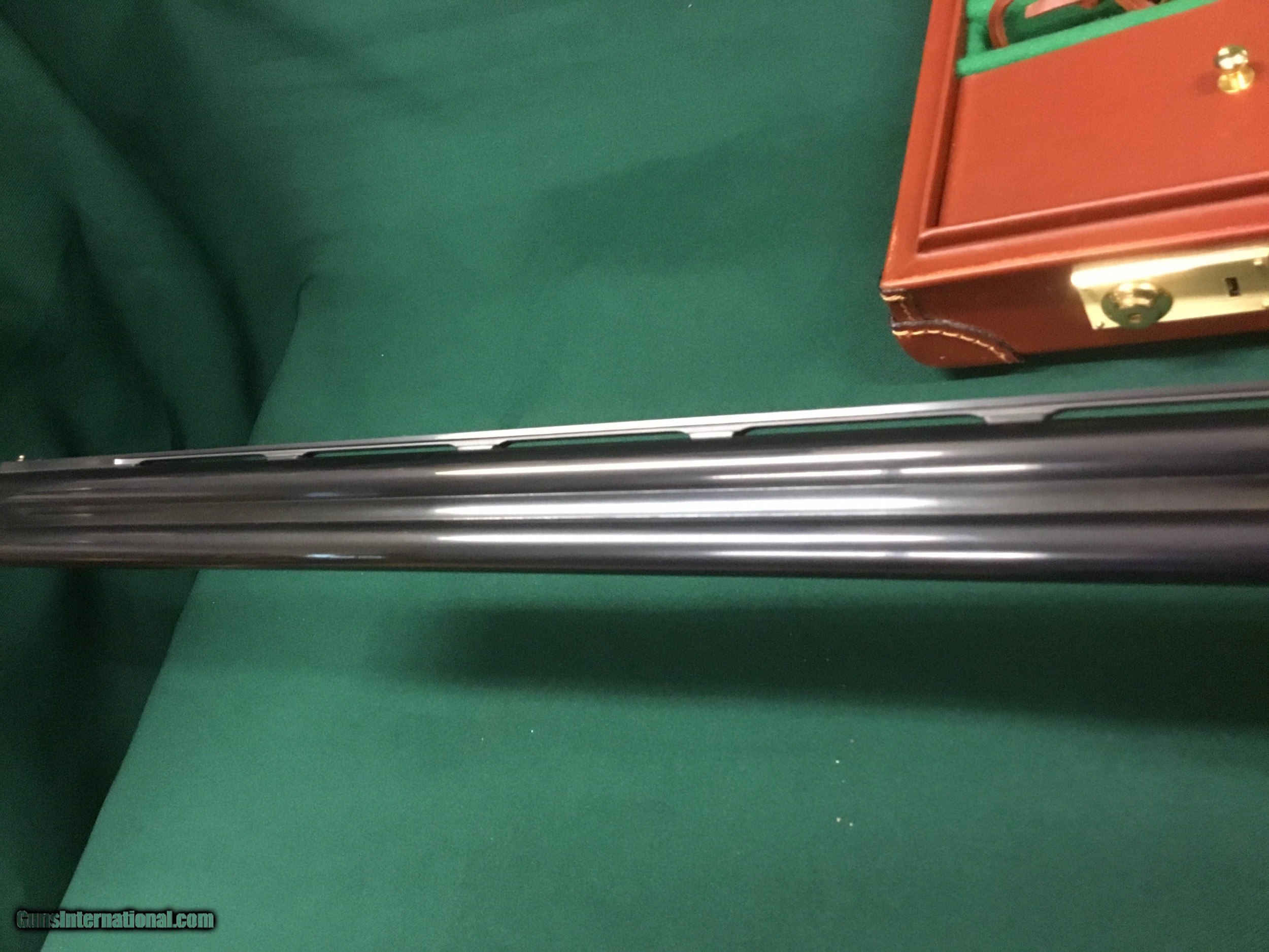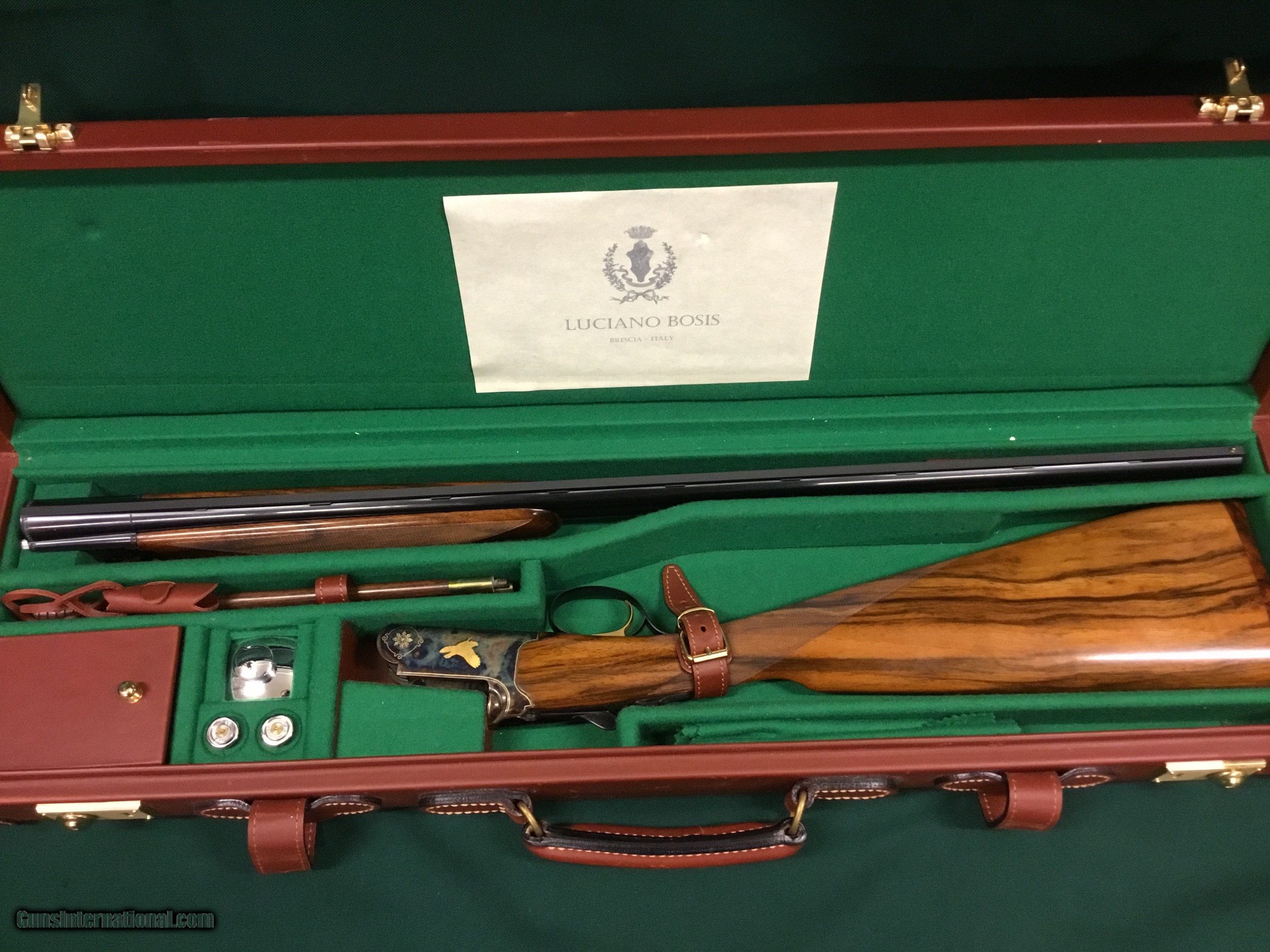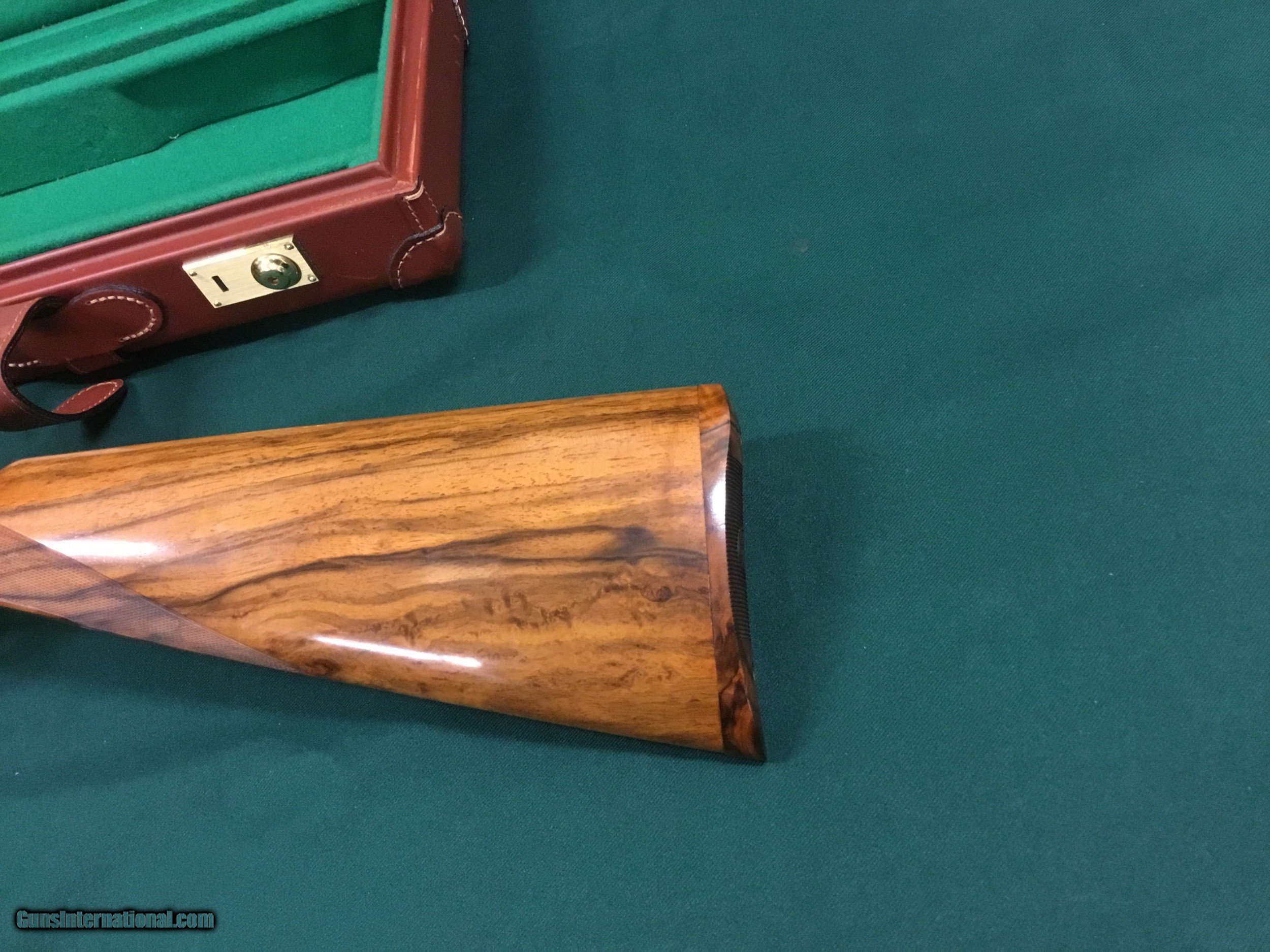 Description: This a very nice BR Rizzini 28ga. Round body o/u completely customized by the daughter of Luciano Bosis who does finish work for her father in his shop,and as the pictures show the work is excellent,case colors outstanding. 28" barrels that are choked 0&000,5 1/2 lbs with a LOP of 14 1/2",DAH 2 1/2",DAC 1 1/2",gun has ejectors and select single trigger ,please call if you have questions,thanks Jim SOLD |