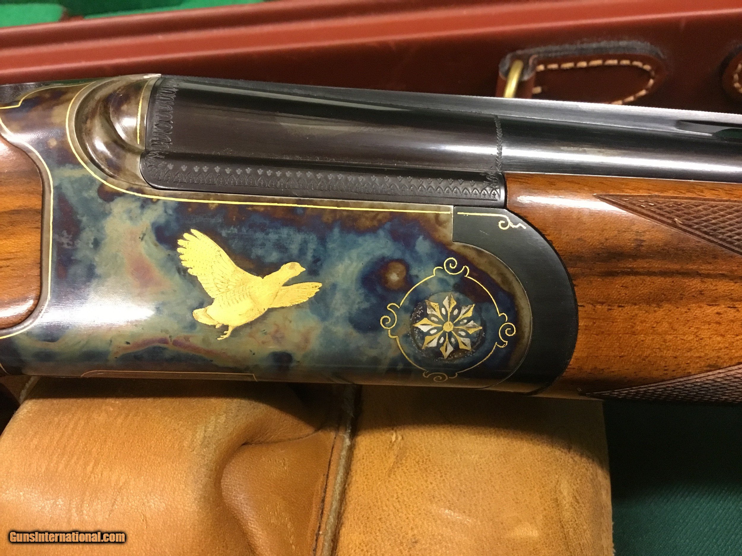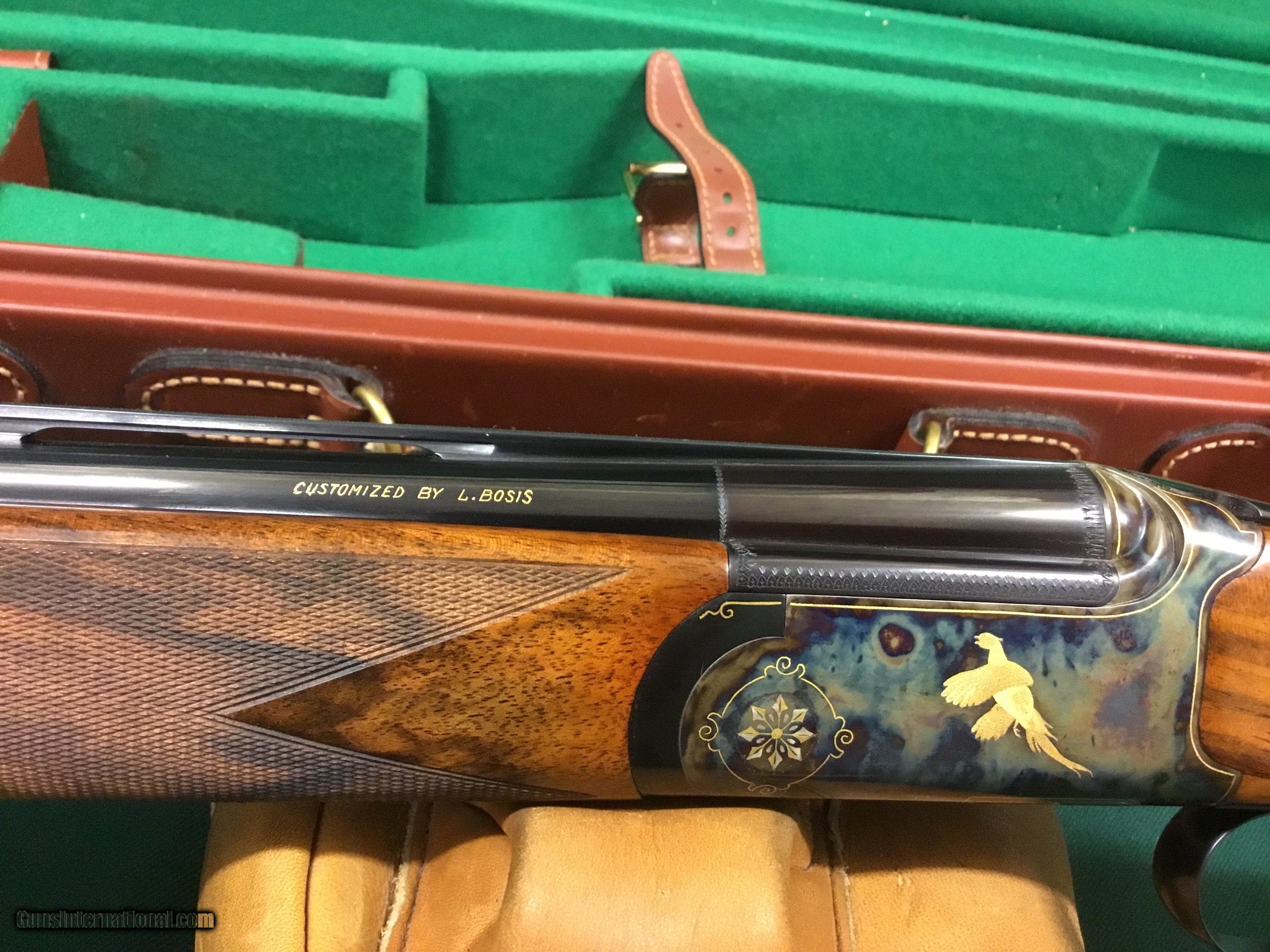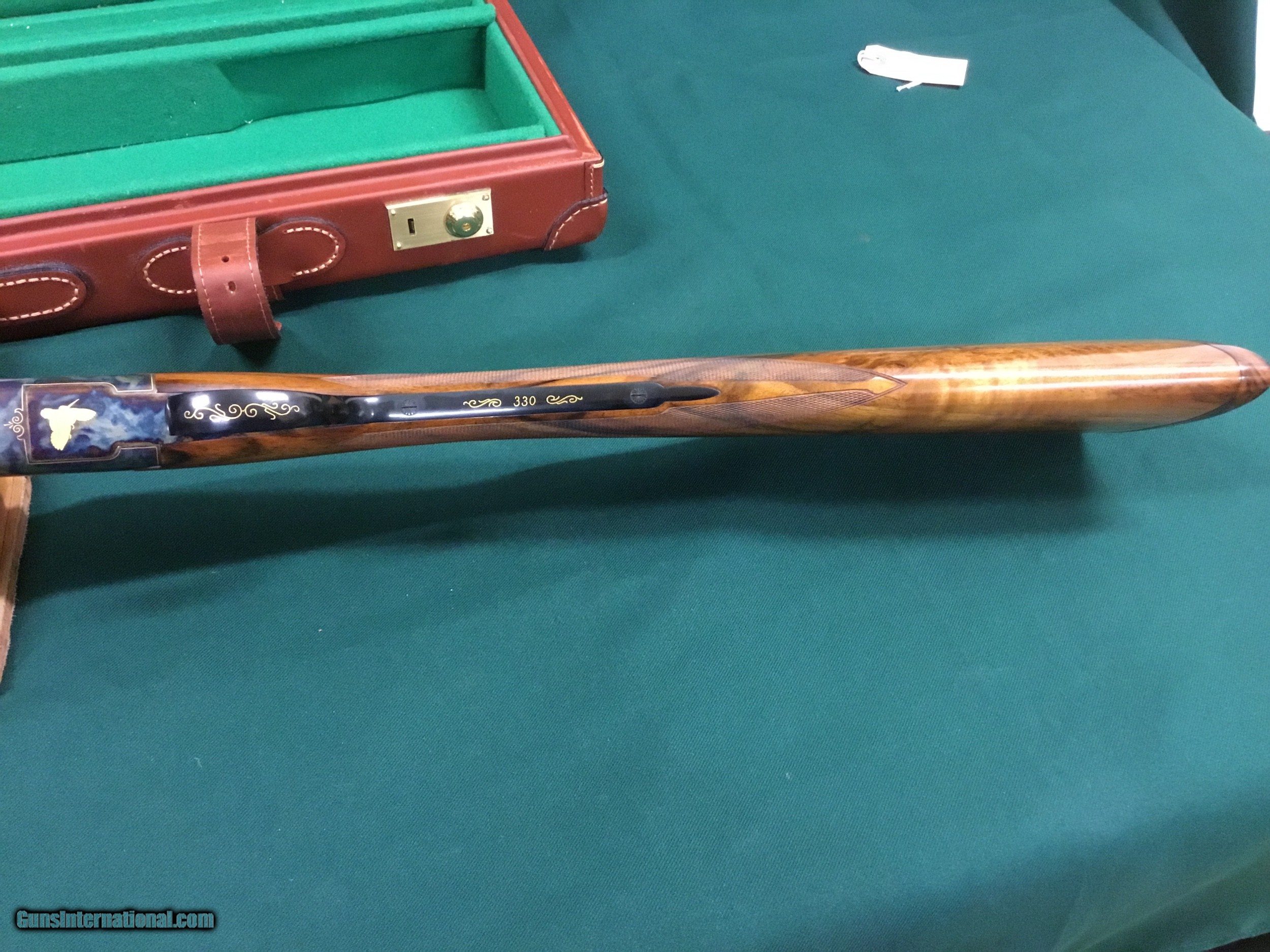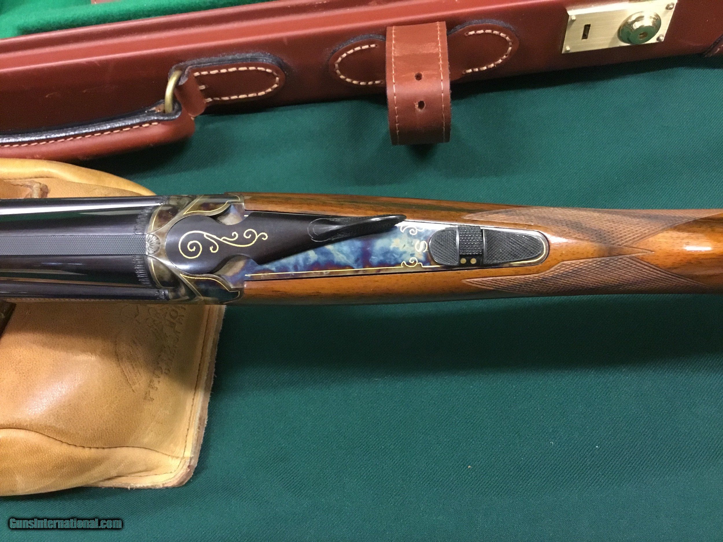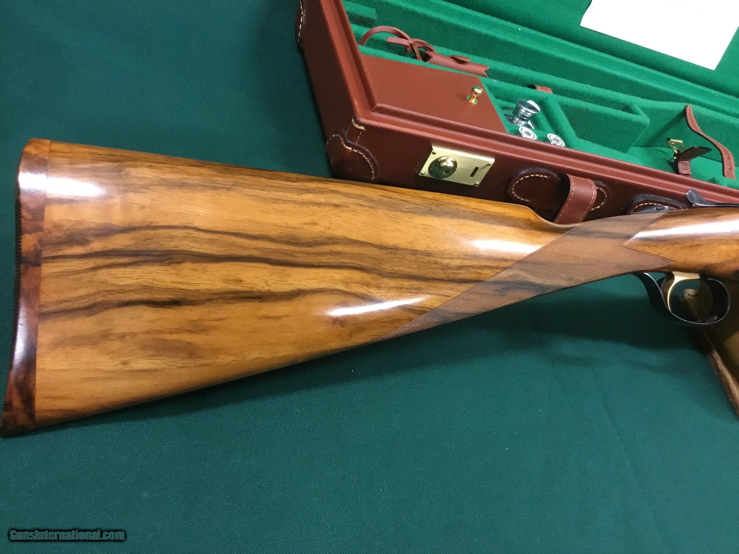 Description: This a very nice BR Rizzini 28ga. Round body o/u completely customized by the daughter of Luciano Bosis who does finish work for her father in his shop,and as the pictures show the work is excellent,case colors outstanding. 28" barrels that are choked 0&000,5 1/2 lbs with a LOP of 14 1/2",DAH 2 1/2",DAC 1 1/2",gun has ejectors and select single trigger ,please call if you have questions,thanks Jim SOLD |