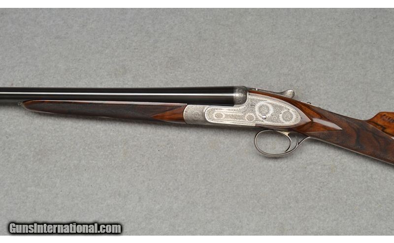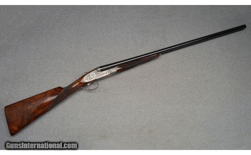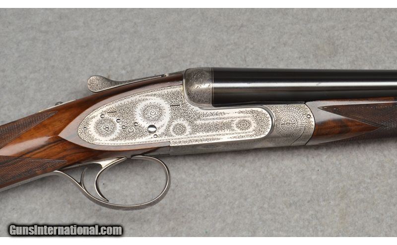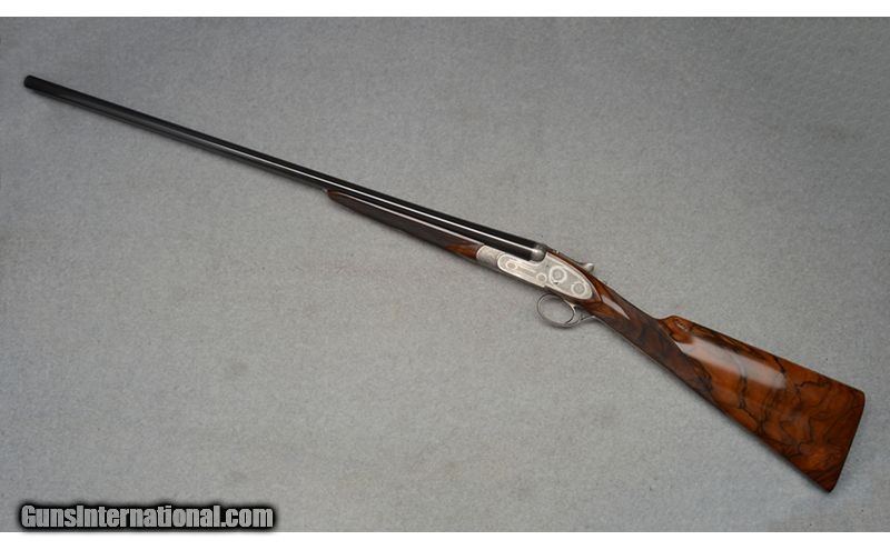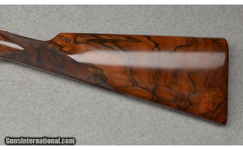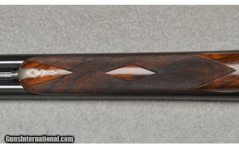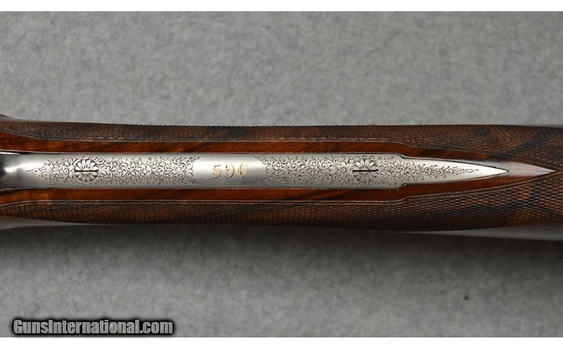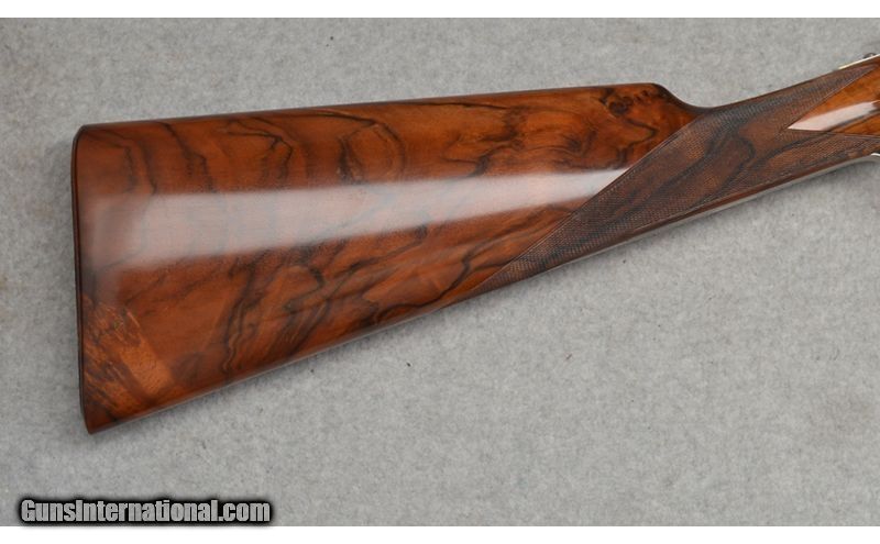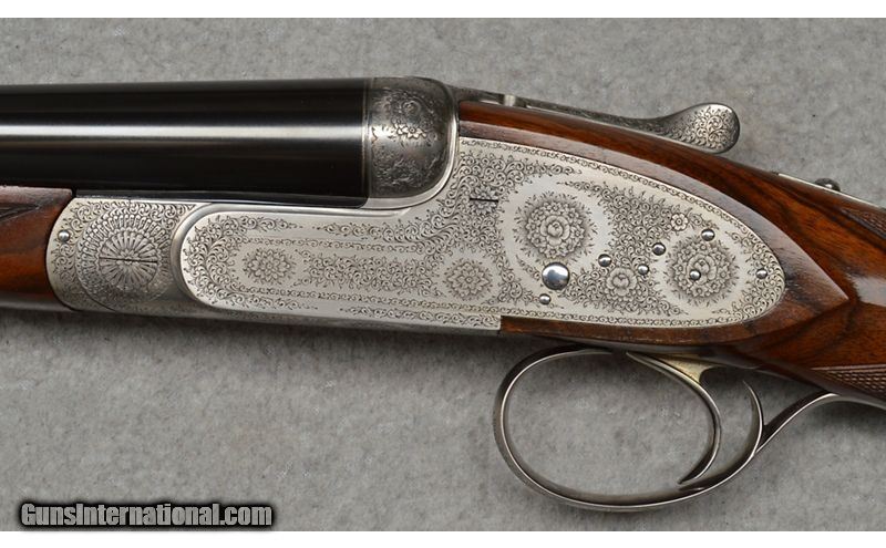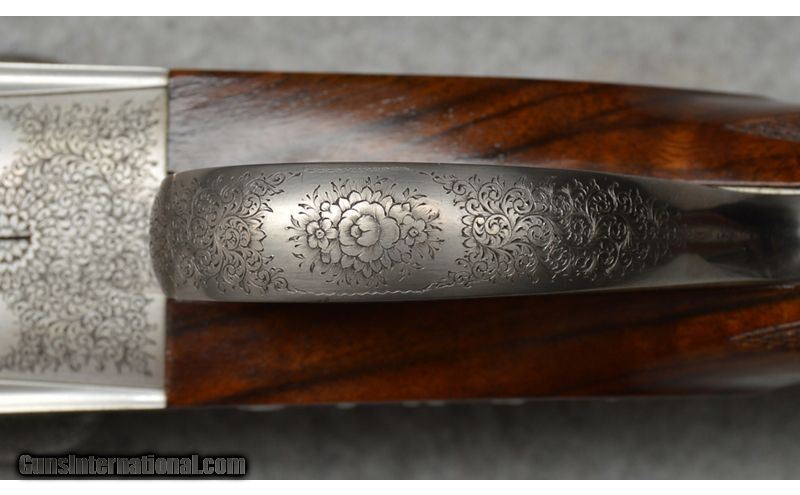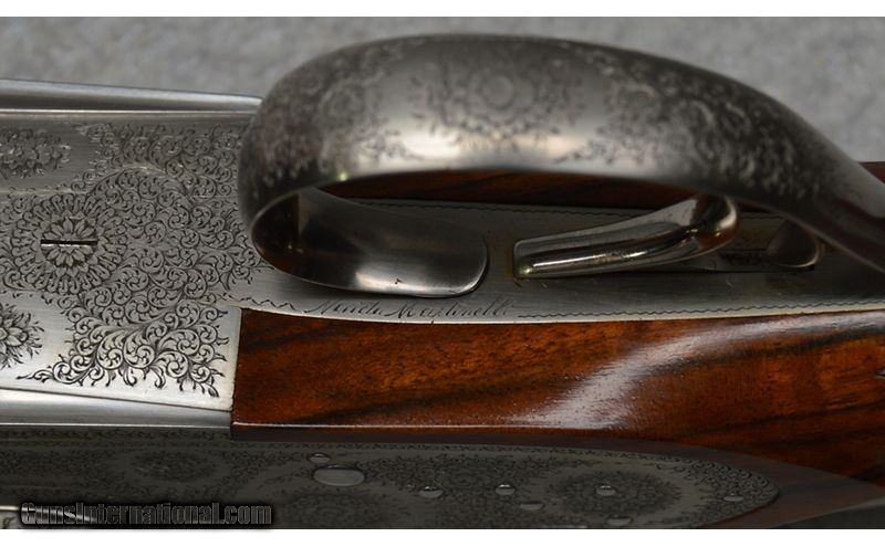 Description: Martinelli Signed and Mater Engraved, Luciano Bosis Queen Extra, Side lock shotgun in excellent condtion. The smooth rib features a single nickel bead sight and is marked "LUCIANO BOSIS ITALY". Features ejectors and fixed chokes. The wonderfully engraved side lock action features fine floral scroll with flowers at the center. The right side of the trigger plate is clearly signed "Naida Martinelli" for the firm of Master Engraver Naida Martinelli of Gardone Val Trompia, Brescia, Italy. The underside of the receiver is marked "Luciano Bosis/Brescia" in fine gold inlay. The break lever, trigger guard, upper tang, and even, the saftey switch are all also embellished in the same style. Includes: 2 Snap Caps and replacement firing pins. SN: 590 16 Gauge SOLD Chambers: 2 3/4 Metal Condition: Excellent Wood Condition: Excellent Bore Condition: Clean Barrels: 29 1/8 Triggers: Single Stock Dimensions: "14 1/2"" LOP, 1 1/4"" DAC, 2"" DAH Weight: 6 lb 14 oz Sights: Single Bead Chokes: "MOD, IMP MOD Item Location: Fort Worth, TX |