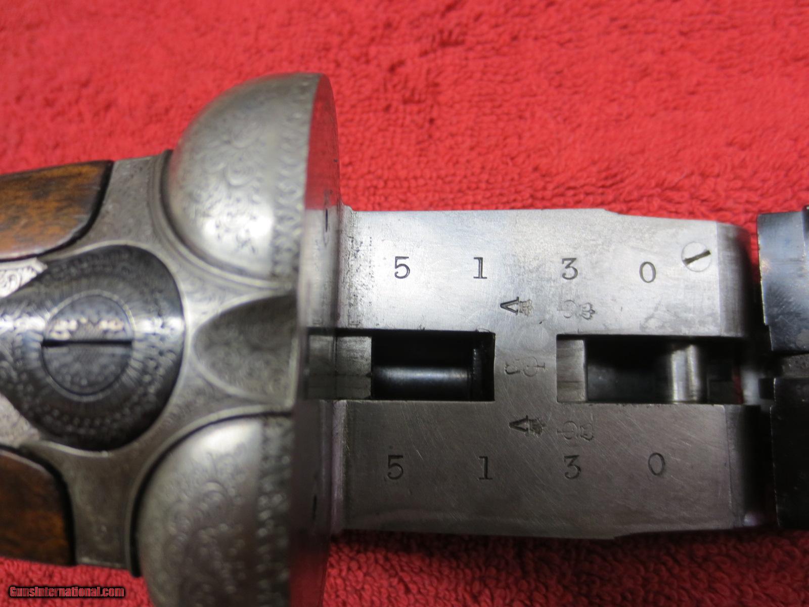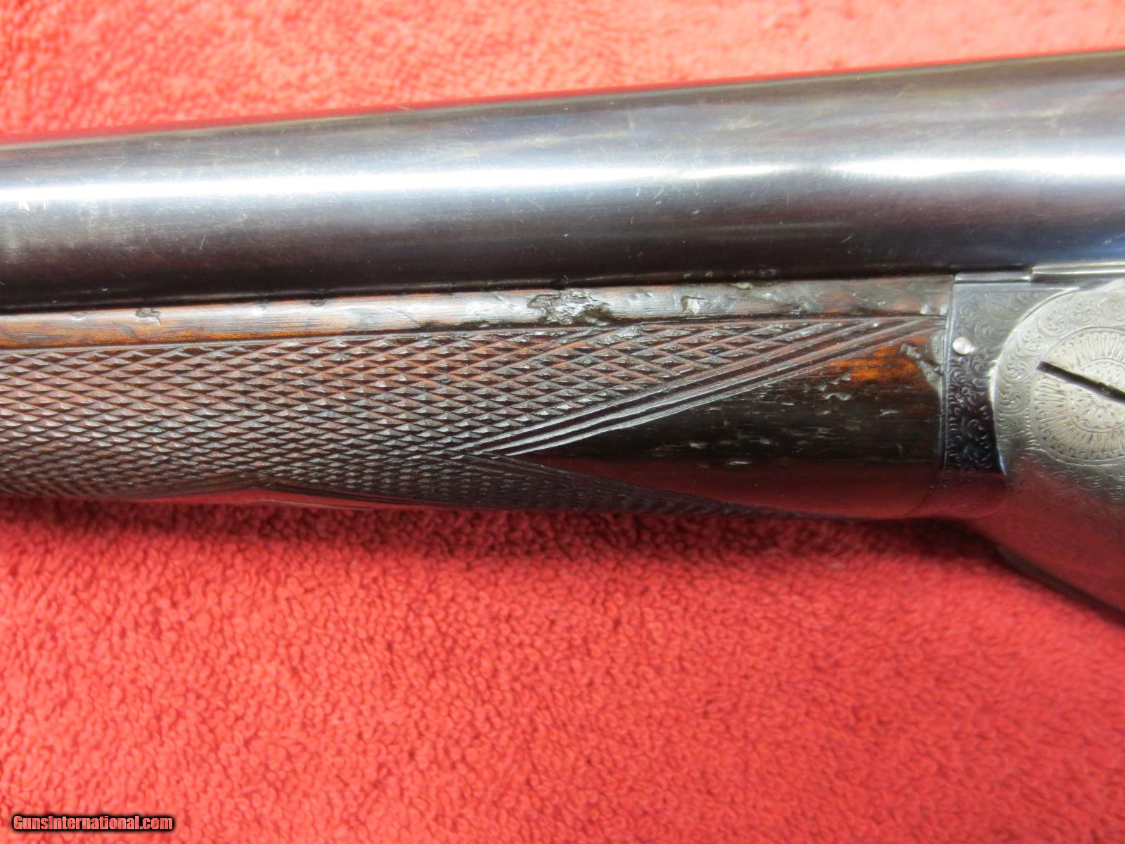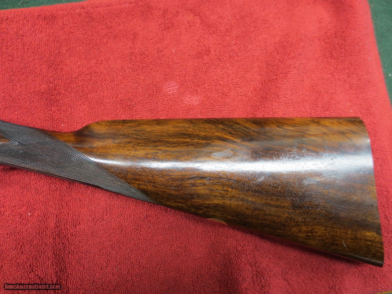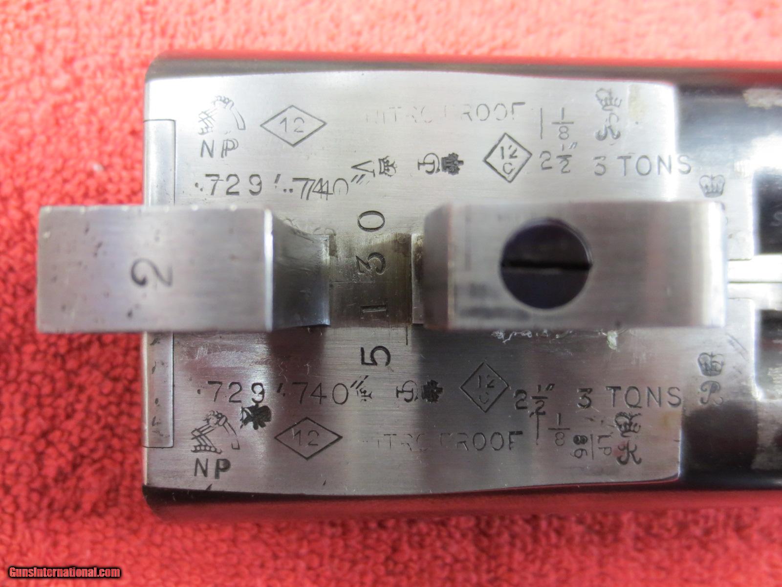 Description: For sale is a London best side lock. Boss and Co. 12ga. Seven pin. Intercepting sear. 30 inch barrels. 2.5 inch shells. Marked #2 of a pair. 1904 vintage. From arguably the best maker in the world. "Boss and Co. 13 Dover Street Piccadilly, London.W." Rebarrled and reproofed(see photo for proof marks) in 1985. Barrel walls measured in 10 inches from the muzzle are .019. Both barrels have been re-proofed. Also probably re blued at that time. Double trigger, splinter, english grip, ejectors. Ejectors need retiming. The receiver and iron serial numbers are shown in the photos #5130. The barrels are Boss barrels serial #6536. Beautiful, delicate rose and scroll engraving from a by gone era. The barrels are proofed at .740. My mic shows them at .742. Choked- rt. barrel .018, Lt barrel at .025. Bluing is at 90%. Checkered butt. LOP-14.25". DAC-1.5". DAH-2.25". Great gun and priced to sell to someone that wants value for his money and doesn't want to spend 50-100k. A chance to own a world best gun for a very fair price. There is no case. Letter of authentification from Boss and Co. included. SOLD Manufacturer: Boss and Co. Serial Number: 5130 Bore: .740 proofed Chambers: 2.5" shells Ejectors: yes Condition: 92% Wood Condition: 93% Bore Condition: excellent Barrels: 30 inch Barrel Type: steel Triggers: double Gauge Info: 12ga. Stock: straight Stock Comb: 1.5 Stock Heel: 2.25 Stock Cast: neutral Fore End: splinter push button Butt Pad: checkered LOP: 14.25 Rib: yes Finish: coin Weight: 6 pounds 1 ounce Manufacture Date: 1903 Chokes: fixed Choke Left: .025 Choke Right: .019 Engraving: rose and scroll Case: no Item Location: Reno, NV Proof:Nitro: yes. 2.5" shells, 1 1/8 Minimum Wall Thickness Left: .019 Minimum Wall Thickness Right: .019 |
