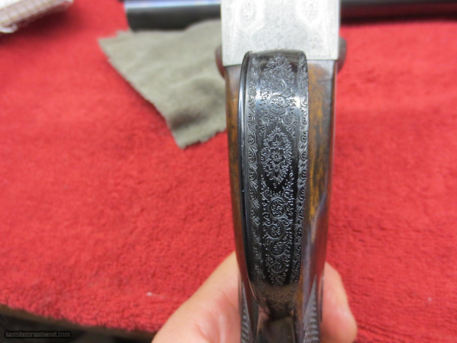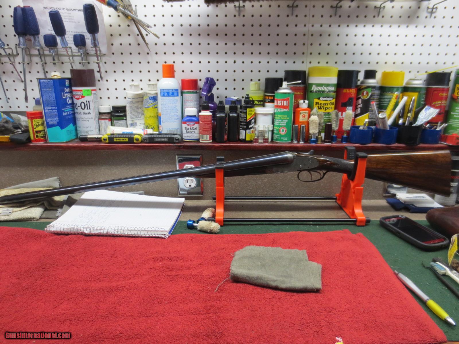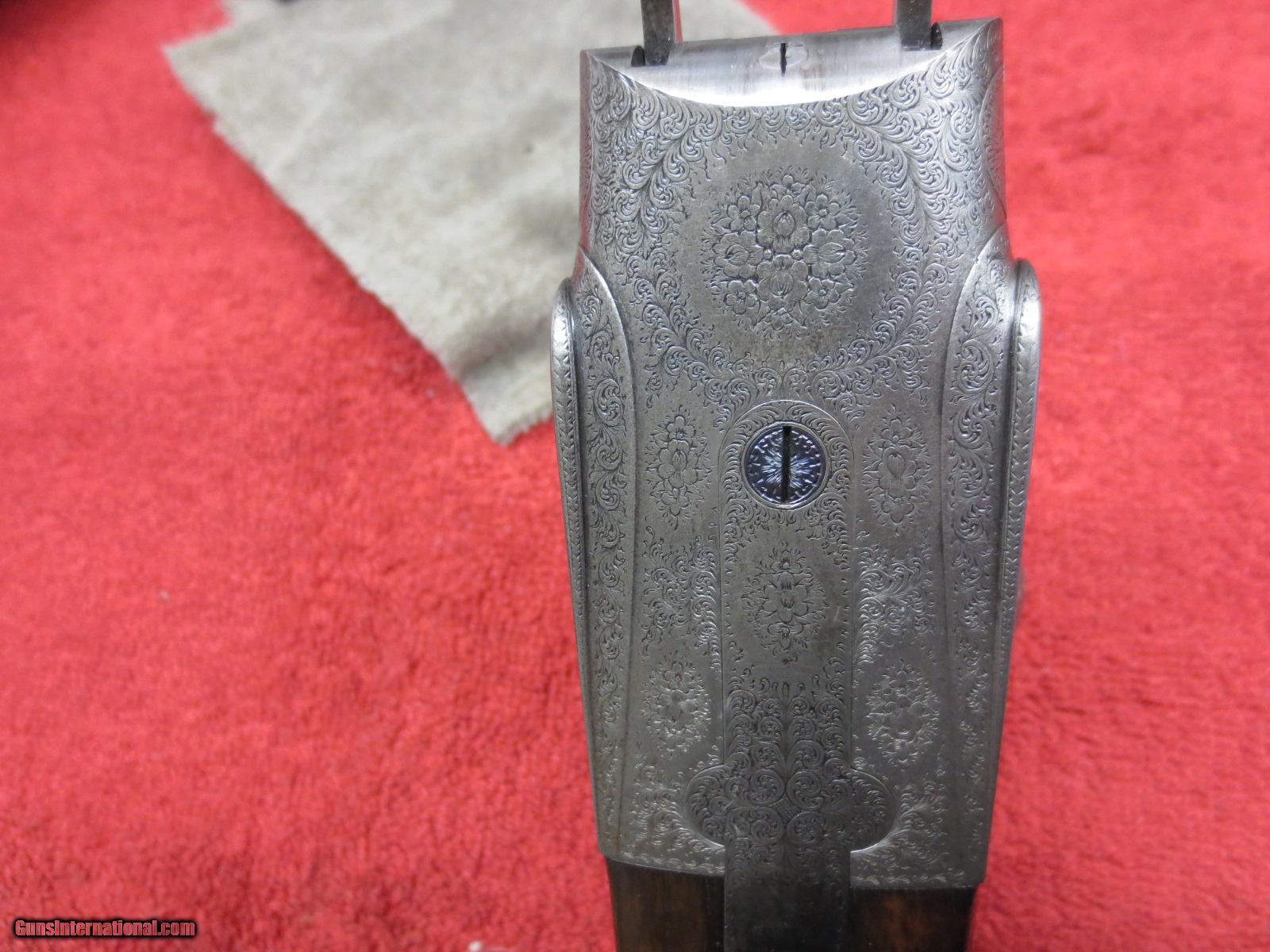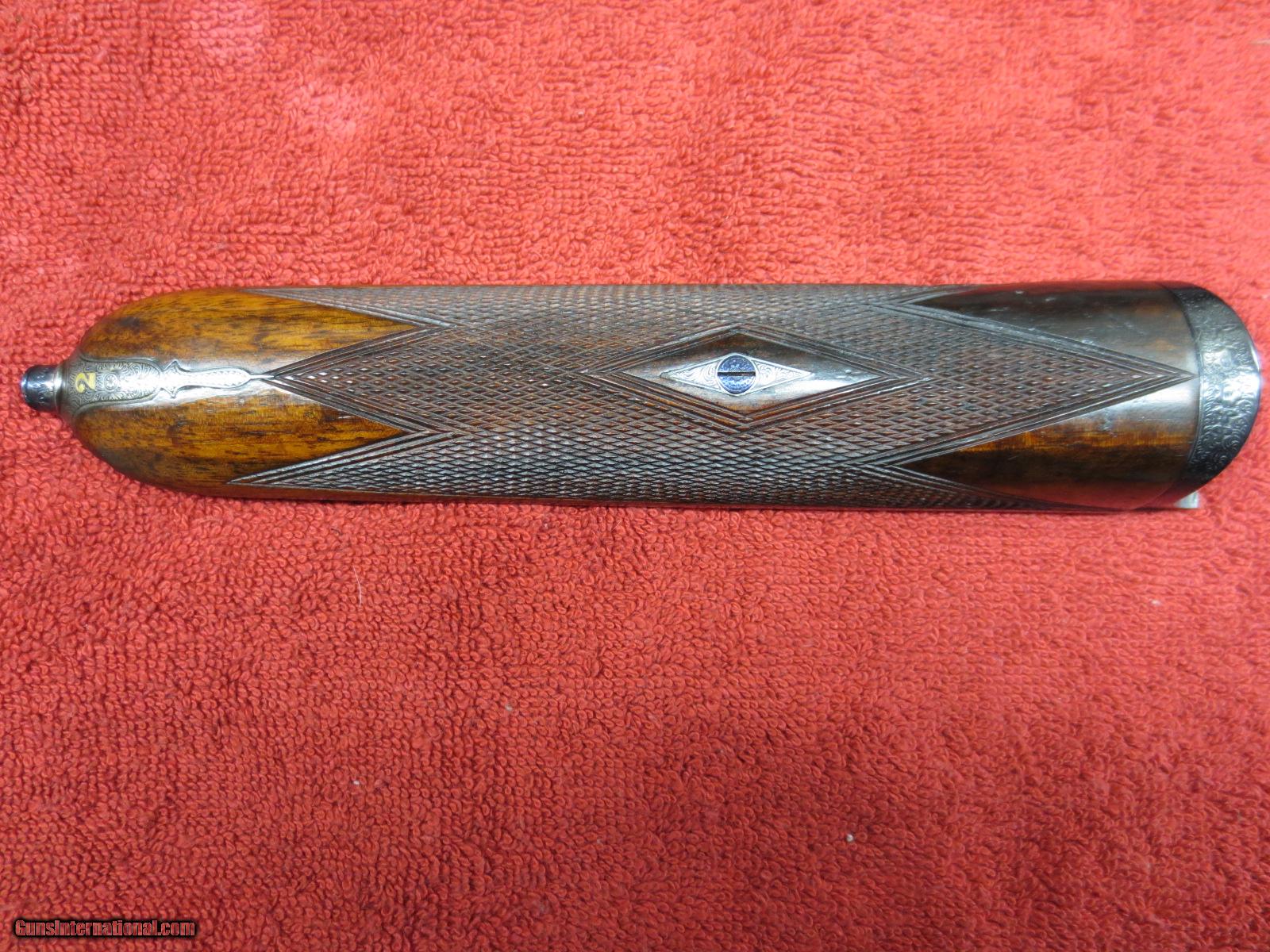 Description: For sale is a London best side lock. Boss and Co. 12ga. Seven pin. Intercepting sear. 30 inch barrels. 2.5 inch shells. Marked #2 of a pair. 1904 vintage. From arguably the best maker in the world. "Boss and Co. 13 Dover Street Piccadilly, London.W." Rebarrled and reproofed(see photo for proof marks) in 1985. Barrel walls measured in 10 inches from the muzzle are .019. Both barrels have been re-proofed. Also probably re blued at that time. Double trigger, splinter, english grip, ejectors. Ejectors need retiming. The receiver and iron serial numbers are shown in the photos #5130. The barrels are Boss barrels serial #6536. Beautiful, delicate rose and scroll engraving from a by gone era. The barrels are proofed at .740. My mic shows them at .742. Choked- rt. barrel .018, Lt barrel at .025. Bluing is at 90%. Checkered butt. LOP-14.25". DAC-1.5". DAH-2.25". Great gun and priced to sell to someone that wants value for his money and doesn't want to spend 50-100k. A chance to own a world best gun for a very fair price. There is no case. Letter of authentification from Boss and Co. included. SOLD Manufacturer: Boss and Co. Serial Number: 5130 Bore: .740 proofed Chambers: 2.5" shells Ejectors: yes Condition: 92% Wood Condition: 93% Bore Condition: excellent Barrels: 30 inch Barrel Type: steel Triggers: double Gauge Info: 12ga. Stock: straight Stock Comb: 1.5 Stock Heel: 2.25 Stock Cast: neutral Fore End: splinter push button Butt Pad: checkered LOP: 14.25 Rib: yes Finish: coin Weight: 6 pounds 1 ounce Manufacture Date: 1903 Chokes: fixed Choke Left: .025 Choke Right: .019 Engraving: rose and scroll Case: no Item Location: Reno, NV Proof:Nitro: yes. 2.5" shells, 1 1/8 Minimum Wall Thickness Left: .019 Minimum Wall Thickness Right: .019 |