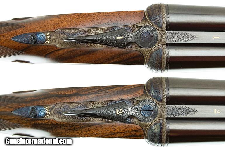 Description: PROOFED 2003 THESE ARE THE SMALLEST FRAME GUNS BOSS EVER MADE AND STATED WILL NEVER DO AGAIN BOTH ARE IDENTICAL 28" SELF OPENER FULL AND FULL 3" CHAMBERS SINGLE TRIGGER EJECTORS SPLINTER FOREARM ENGLISH GRIP CHECKERED BUTT NEW UNFIRED IN MAKERS OAK AND LEATHER CASE 5LBS 3 OZ X 2 1/4 X 1 1/2 X 15 SOLD |