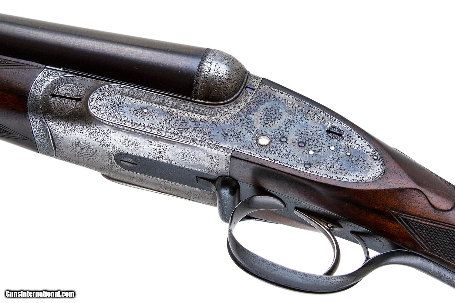 Description: 29 3/4" BARRELS CHOKED 1/2 & 1/2 2 3/4 THIS IS VERIFIED BY BOSS THE GUN WAS REBARRELED BY FORMER PURDEY GUNSMITHS SYMES & WRIGHT USING ORIGINAL BOSS RIB SINGLE TRIGGER EJECTORS SPLINTER FOREARM ENGLISH GRIP MAKERS CASE EXCELLENT CONDITION 7LBS 4 OZ X 2 X 1 1/2 X 14 1/2 SOLD |