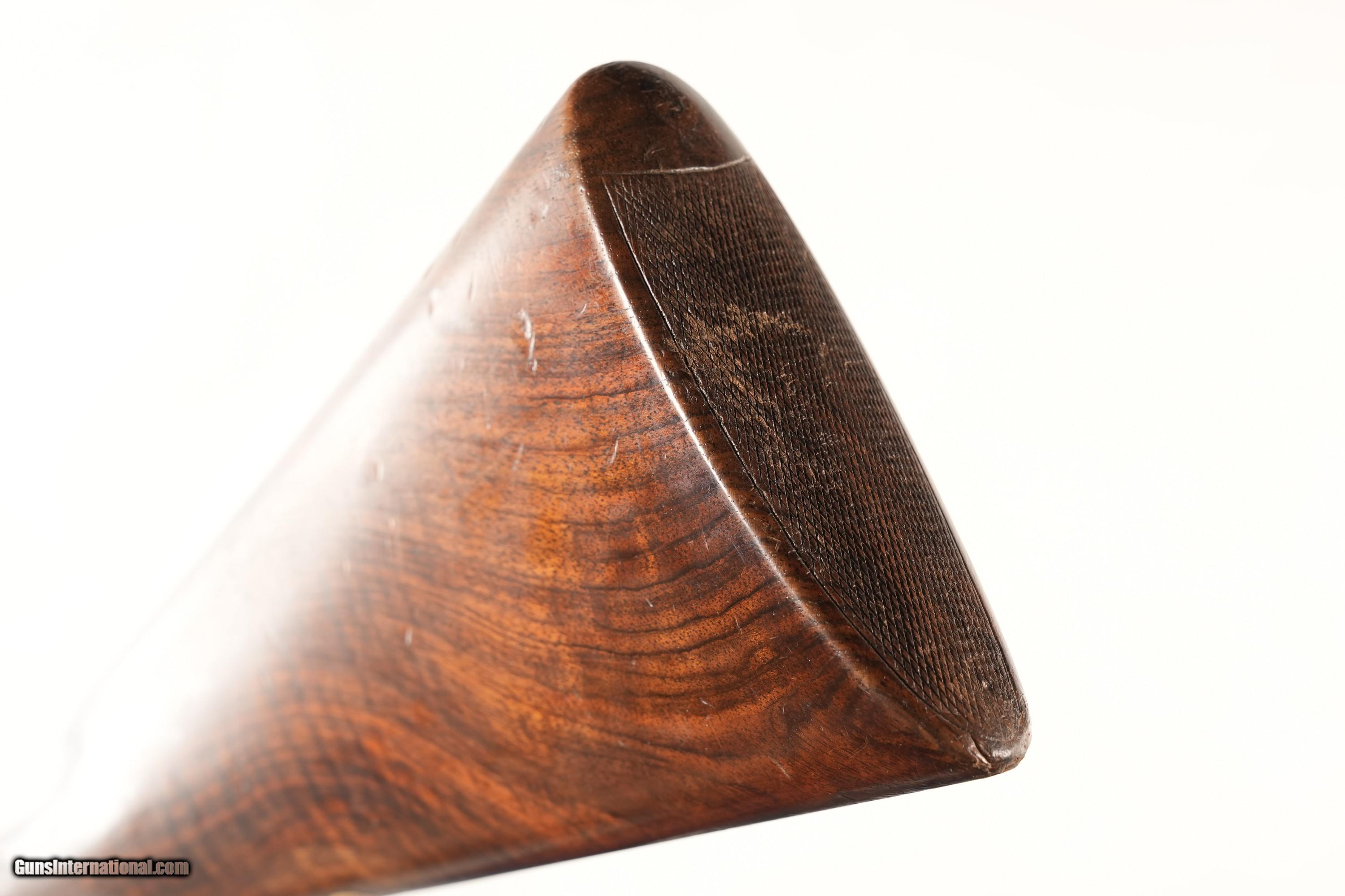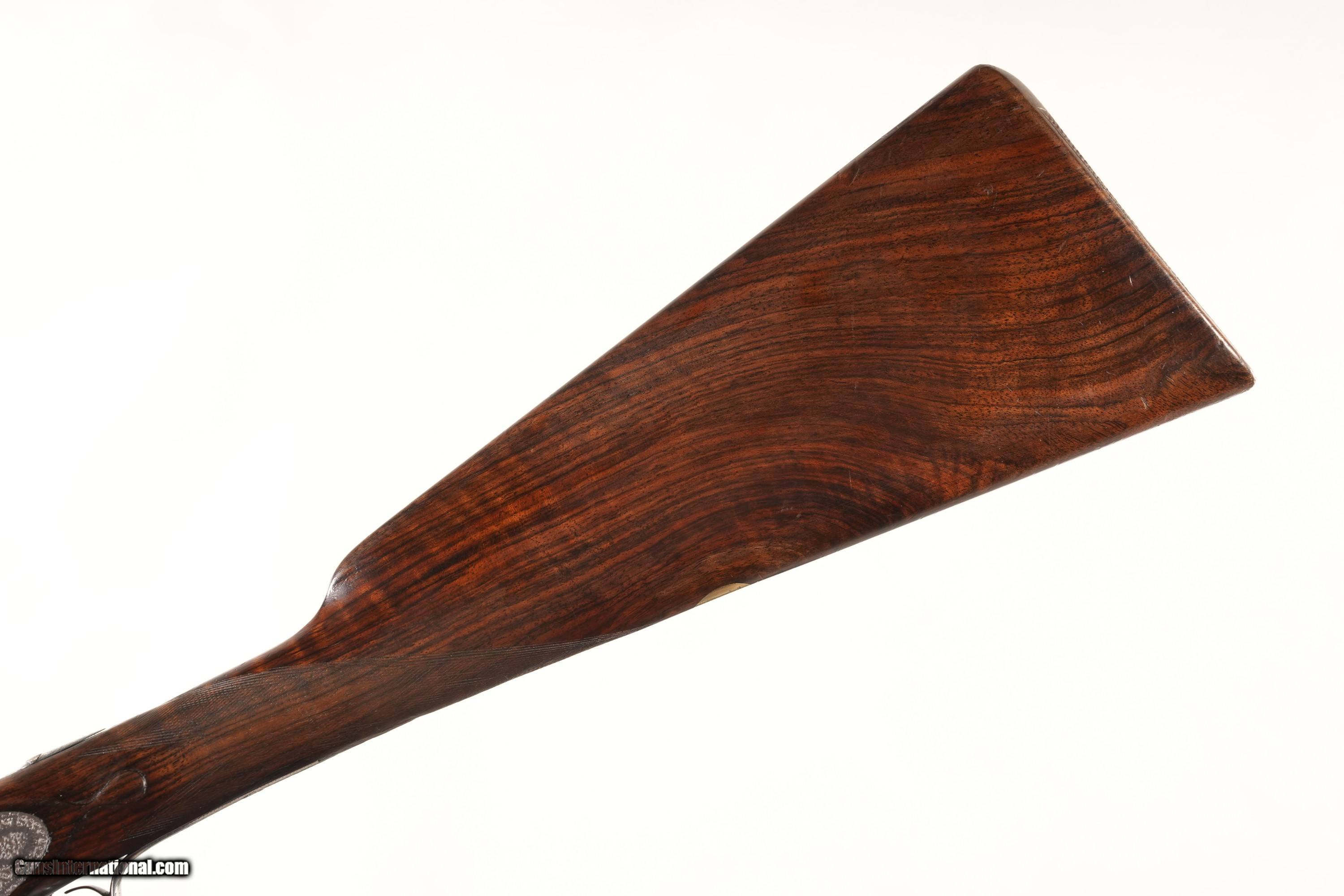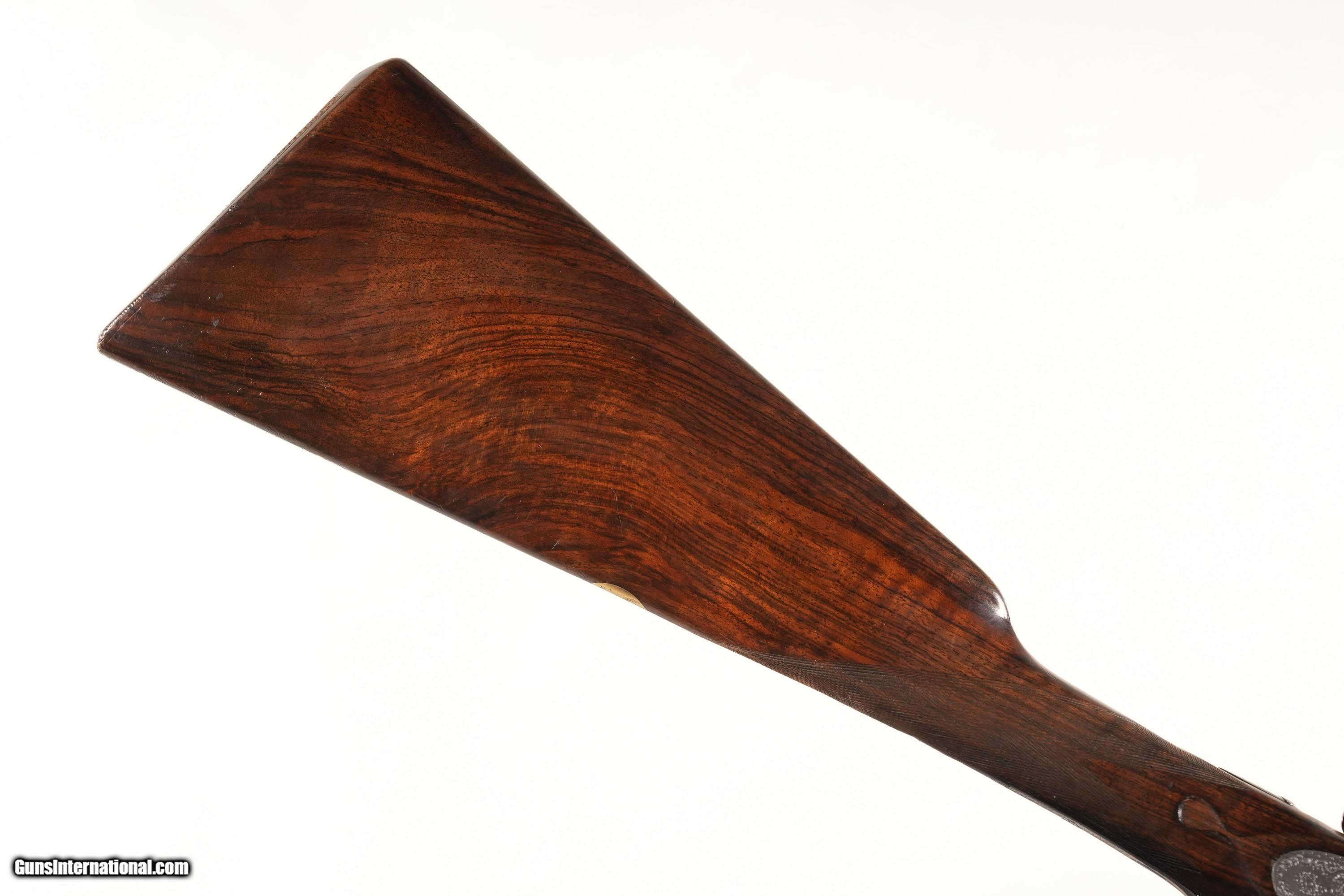 Description: Boss & Company Side Lock Single trigger Easy Opening ejector double 12 Ga. 2 1/2" chambers with Mod & IC chokes . Traditional Rose & Scroll English engraving on the bright finished locks and receiver, Oil finished English straight stock with checkered wood butt. All matching serial numbers with Top lever and Bbl numbered "2" in gold. 15 1/4" LOP 1 3/4" DAC 2 1/4" DAH Cast off 5mm at Heel 10mm at Toe 6 lbs 12 oz. Mfd, circa 1920. Condition, Metal rates very fine as earlier refreshed / refinished. Bright bores and mechanically excellent. Stocks have moderate wear , remain full sized and with period of use impressions. • Free Shipping, No Credit Card Fees. • Lay-a-way available for this firearm. • 1/3 Down, a 1/3 in 30 Days, 1/3 in 60 Days. SOLD Curio/Relic: Yes Manufacturer: Boss Model: Sidelock Serial Number: 5344 Barrel Length: 30 |