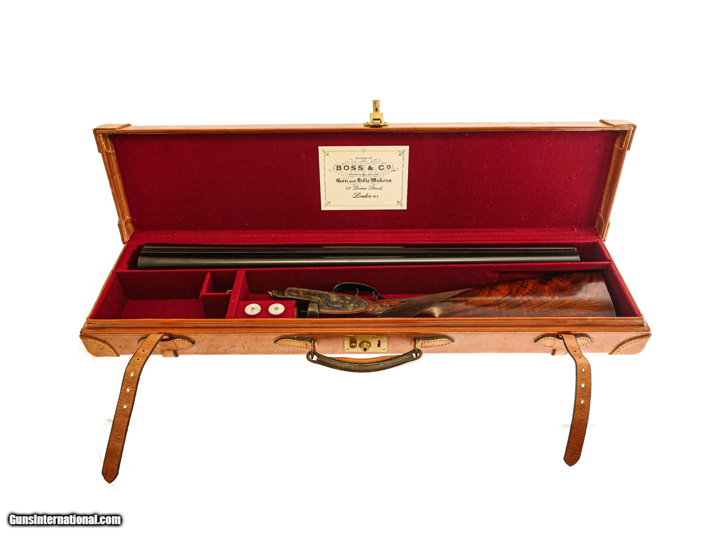 Description: Boss & Co. - SxS, 12ga. 26" Barrels Choked IC/IM. Double trigger, straight grip, checkered butt, auto ejector, 1960s production. Gun retains 99% case color, barrel blue, and wood finish. Magnificent and highly detailed rose and scroll engraving, solid filed matte rib, cork street address, 2 ¾” chamber, 3 ¼ ton proof. Gun remains test fired only and comes in the original makers case with label. Beautiful Turkish walnut, from the original owner, and as close to a new gun that is available. Less than half the cost if you were to order new, and it is a virtually unused gun. Inv: 62603 6 lbs. 13 oz. 14 ½" x 1 ½" x 2 ½" $49,995.00 SOLD |