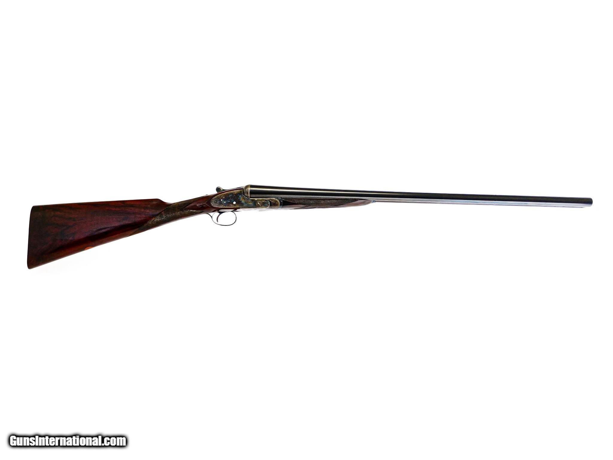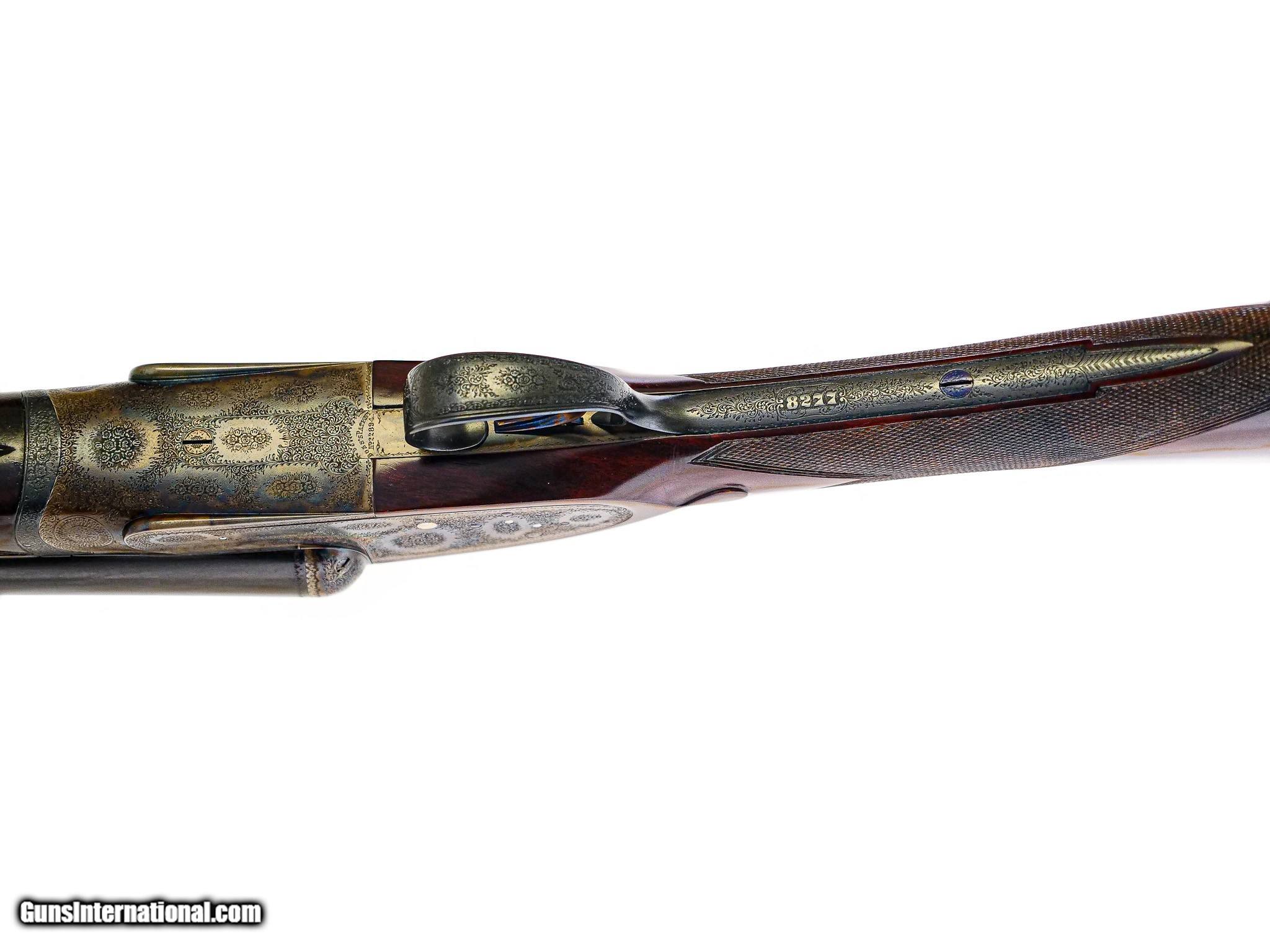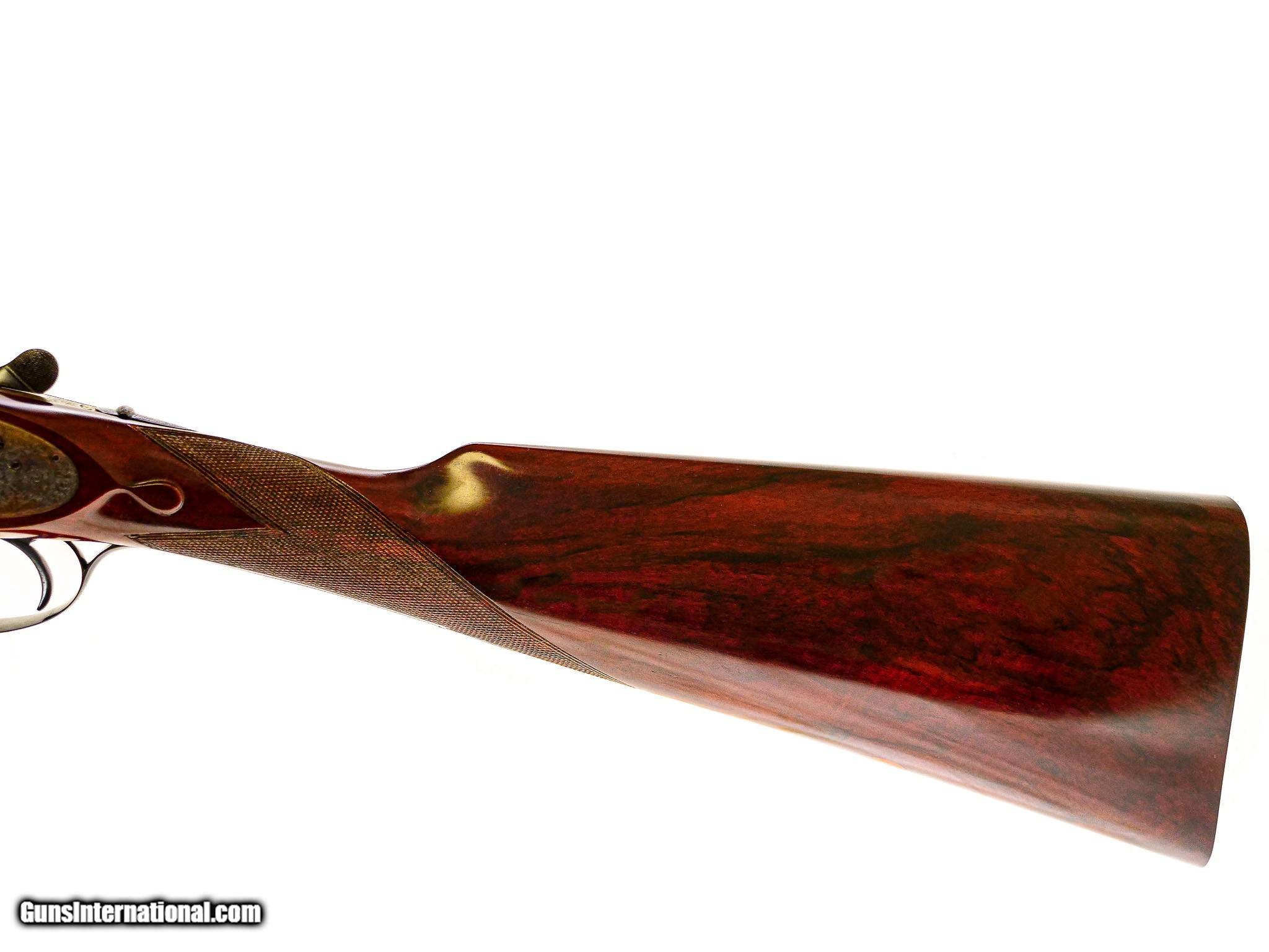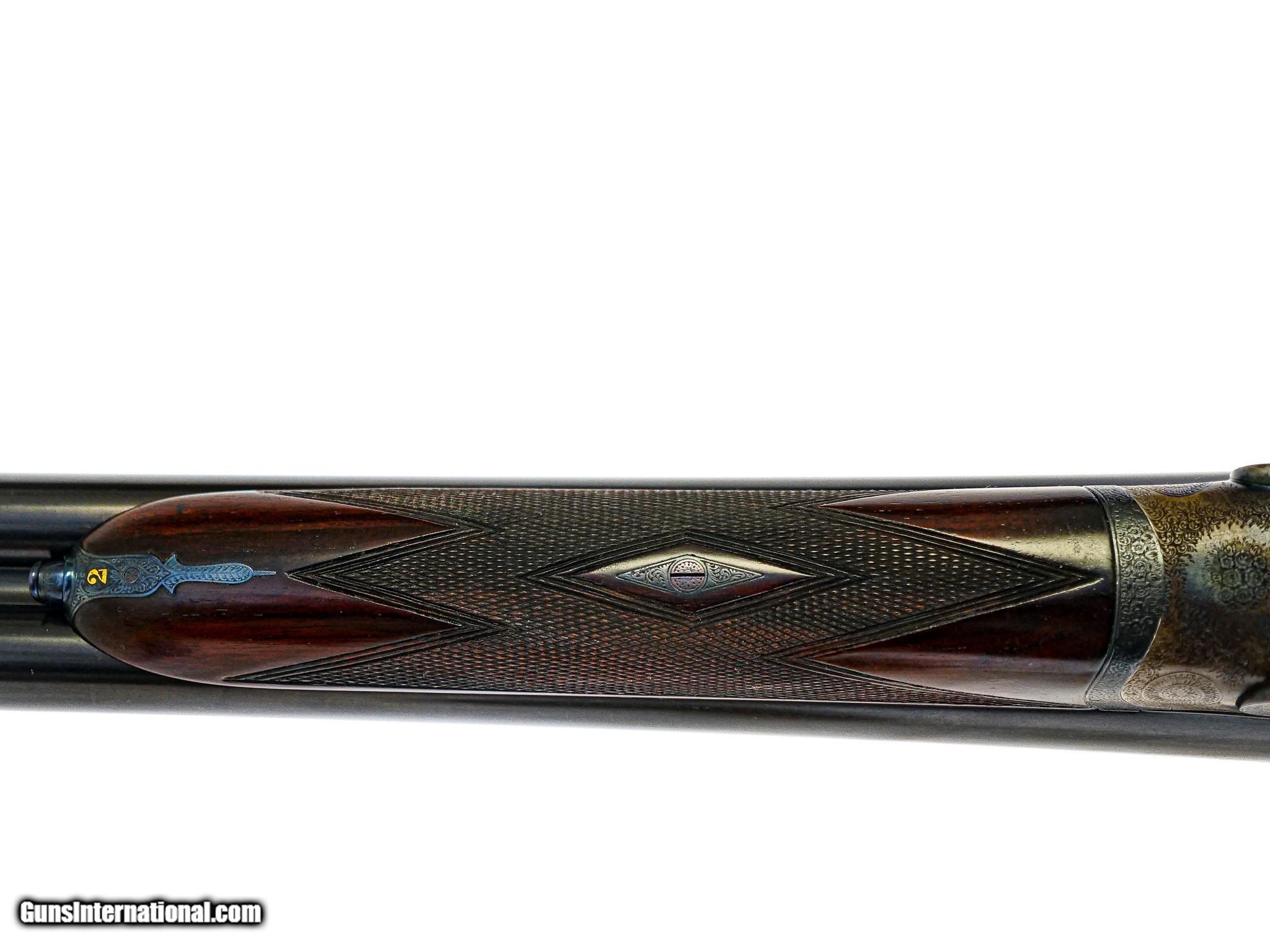 Description: Boss & Co. - SxS, 12ga. 28” Barrels Choked IC/M. 2 ½” chambers, Boss single selective trigger, auto ejector, straight grip, checkered butt, the finest Sumner rose and scroll engraving imaginable. The engraving is sharp, perfect, and three dimensional. Magnificent French walnut, splinter forend, the gun has been gone over at an English type refurbishment to make the gun indistinguishable from a brand new gun. 100% English case color, barrel blue, and wood finish. Perfect drop point and screws, just an outstanding gun, originally #2 of pair, you won’t find a gun anywhere on the market that can complete with the value of this gun, it has the very best of everything. Inv: 66602 5 lbs. 7 oz. 14 7/8" x 1 ½" x 2 ½" $19,995.00 SOLD |