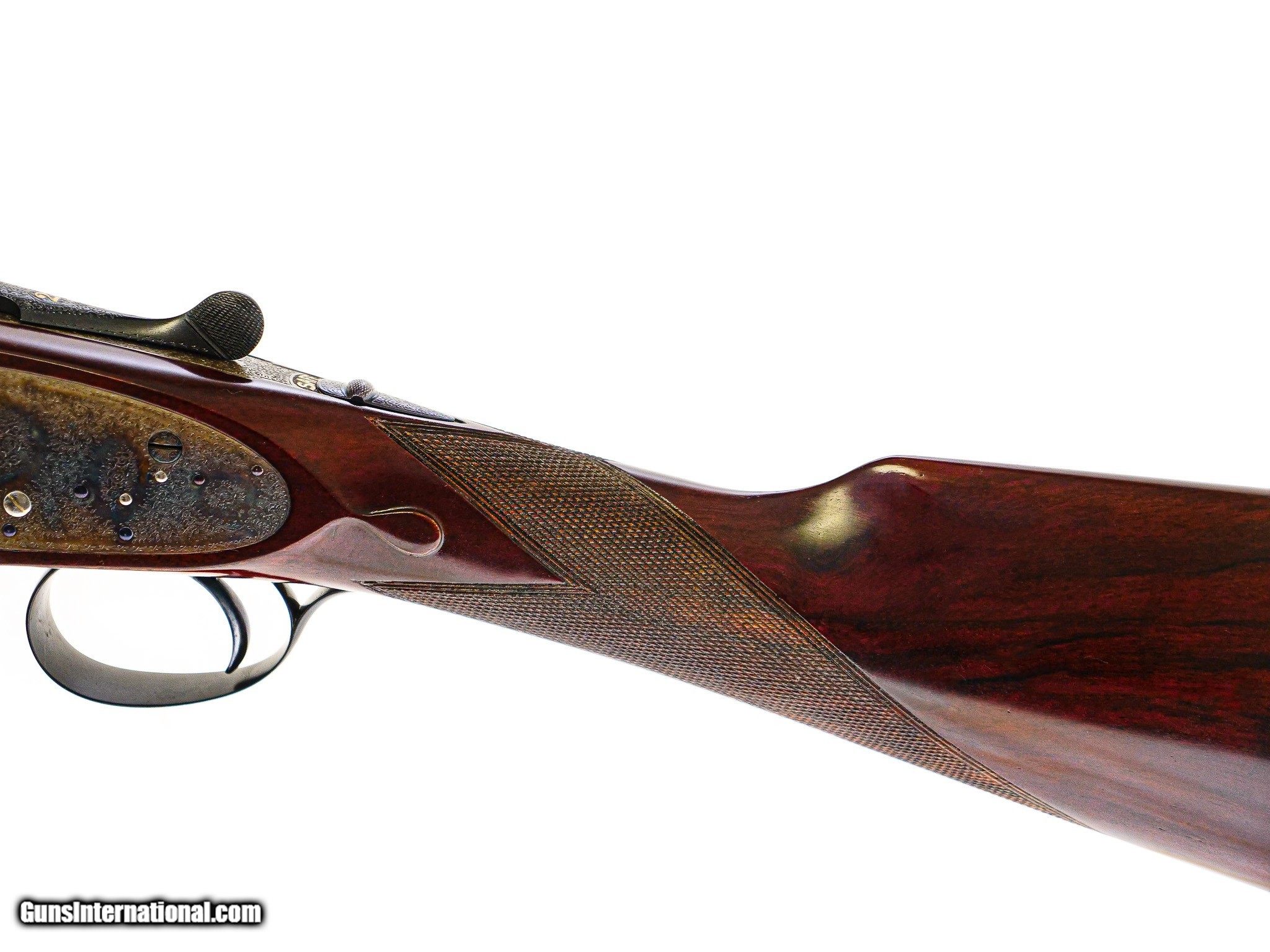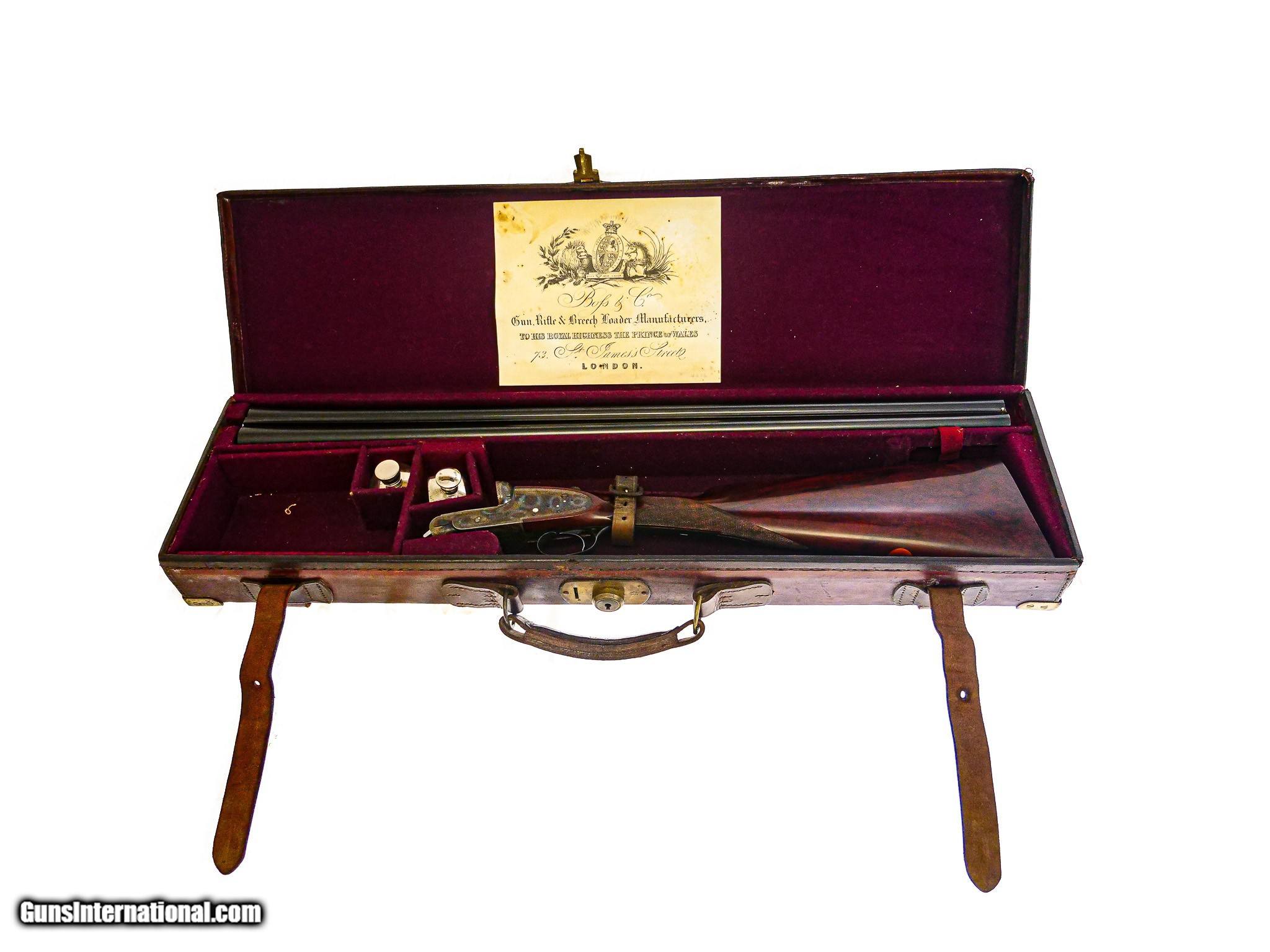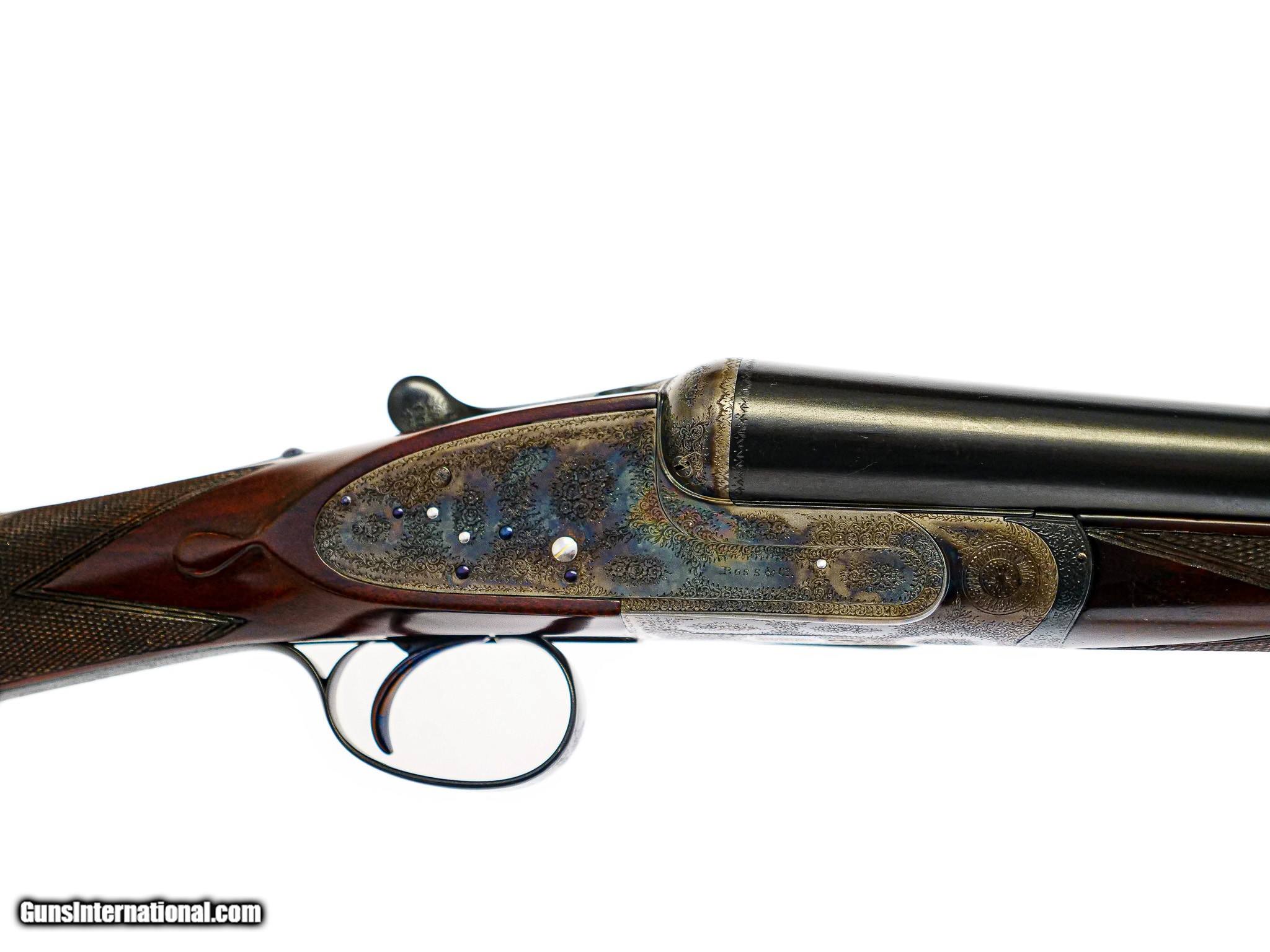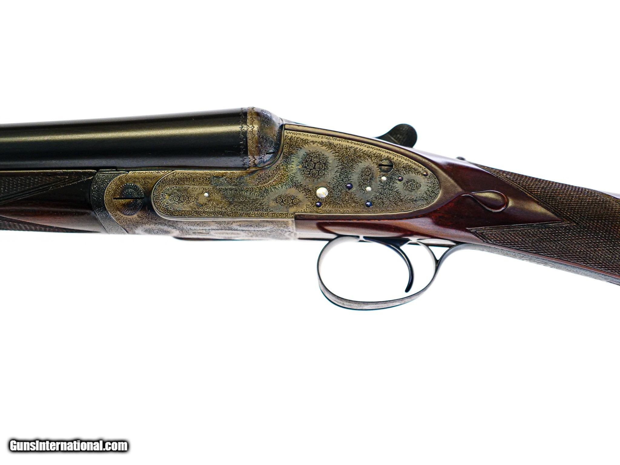 Description: Boss & Co. - SxS, 12ga. 28” Barrels Choked IC/M. 2 ½” chambers, Boss single selective trigger, auto ejector, straight grip, checkered butt, the finest Sumner rose and scroll engraving imaginable. The engraving is sharp, perfect, and three dimensional. Magnificent French walnut, splinter forend, the gun has been gone over at an English type refurbishment to make the gun indistinguishable from a brand new gun. 100% English case color, barrel blue, and wood finish. Perfect drop point and screws, just an outstanding gun, originally #2 of pair, you won’t find a gun anywhere on the market that can complete with the value of this gun, it has the very best of everything. Inv: 66602 5 lbs. 7 oz. 14 7/8" x 1 ½" x 2 ½" $19,995.00 SOLD |