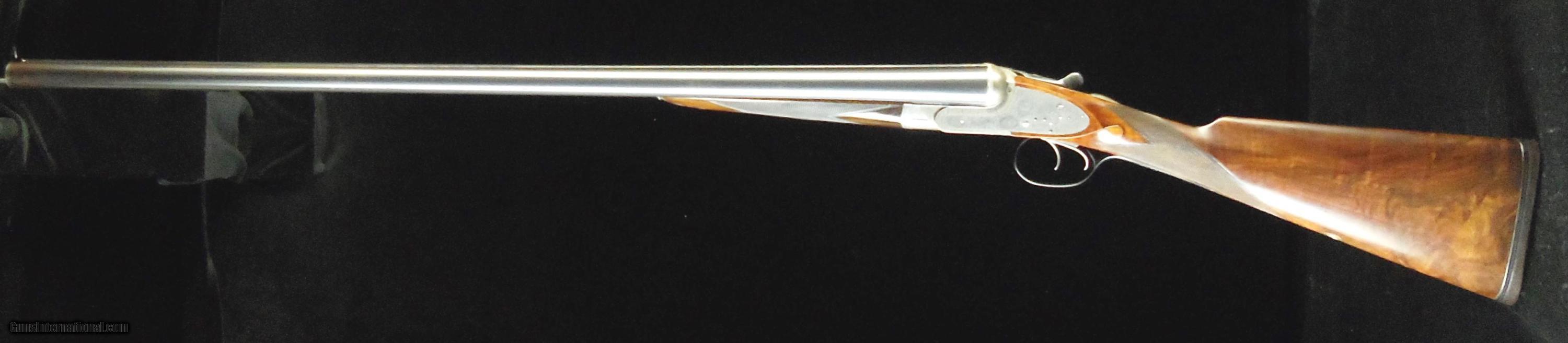 Description: Boss London Sidelock 12 Ga.30" steel barrels, choked .009/.011. Proofed 2 1/2". Opened to 2 3/4" but not re-proofed. Number 1 of a broken set. Nitro Proofed. Best Quality Game Gun. SOLD Antique: Yes Manufacturer: Boss & Co. Model: Sidelock Serial Number: 4288 Bore: 12 Chambers: 2 3/4 Ejectors: Yes Condition: Pre-Owned Metal Condition: 96% Wood Condition: 95% Bore Condition: Bright Barrels: 30 Barrel Type: SxS Action: SLE Triggers: Double Gauge Info: 12 Stock: Figured Walnut Stock Comb: 1 1/4 Stock Heel: 2 1/4 Stock Cast: 3/8" Cast Off Fore End: Splinter Butt Pad: Leather LOP: 15" over 1/2" leather pad Rib: Solid Swamp Finish: Satin Weight: 6lb 5oz Sights: Bead Manufacture Date: 1893 Choke Left: .009 Choke Right: .011 Engraving: Rose & Scroll Case: No Item Location: Springfield, MO Proof:Nitro: Yes Minimum Wall Thickness Left: .023 Minimum Wall Thickness Right: .024 |