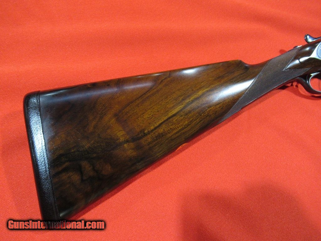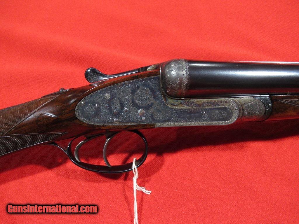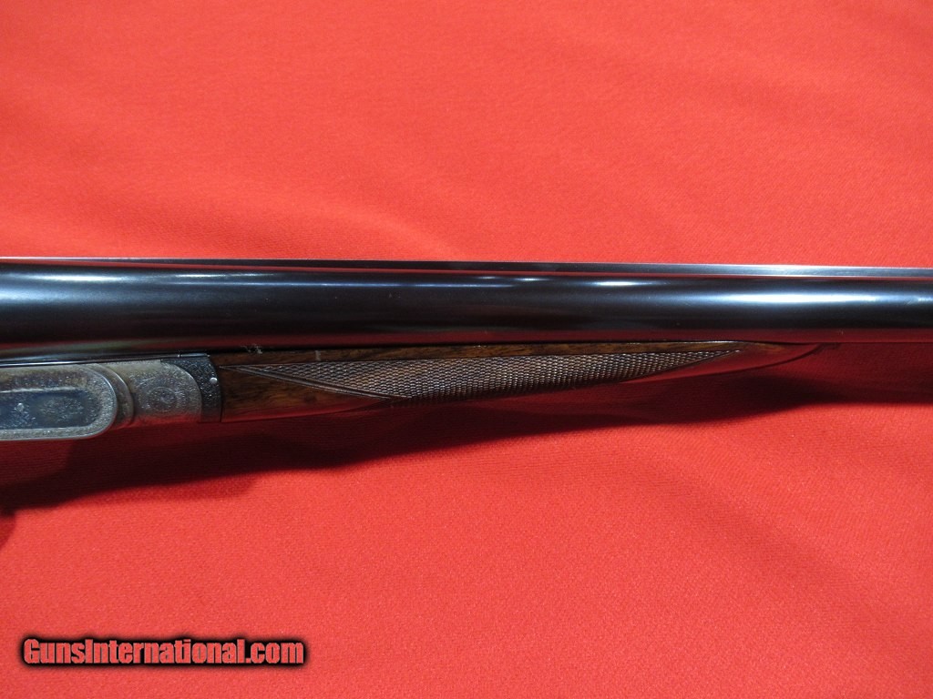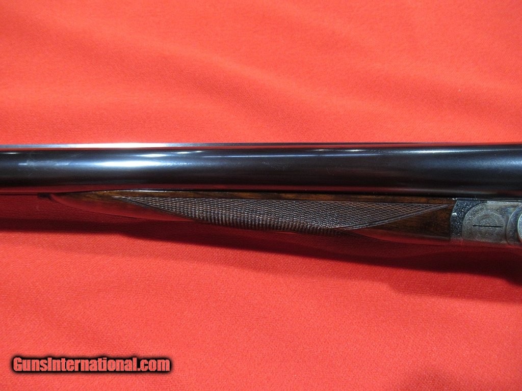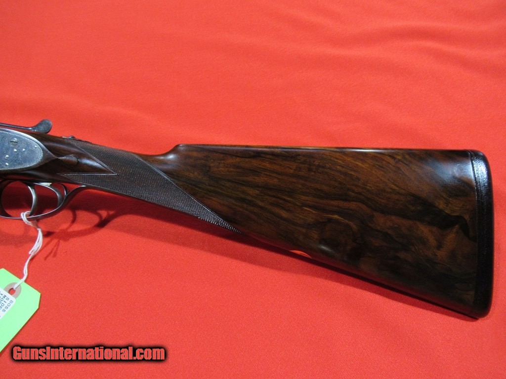 Description: Boss Sidelock serial #73XX -- Excellent condition overall showing little use -- Factory original barrels with 2 3/4" chambers and 1 1/4oz proof. This gun measures 1 1/2" x 2 1/4" x 14 5/8" over leather covered pad. Extremely strong original case colors with a highly figured walnut stock make this gun a stunner. It weighs 6lbs 15oz. This is a wonderful firearm through and through. SOLD |