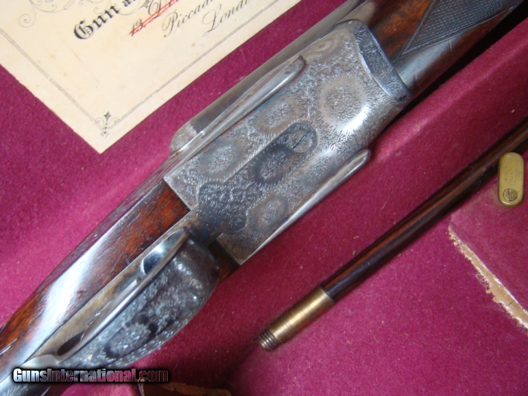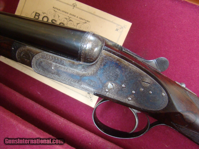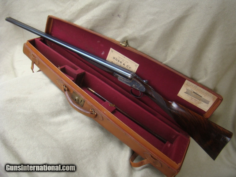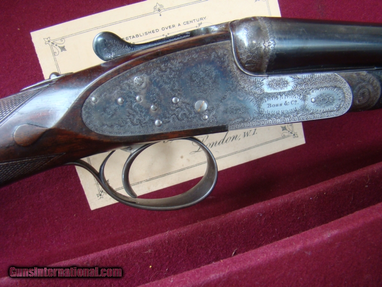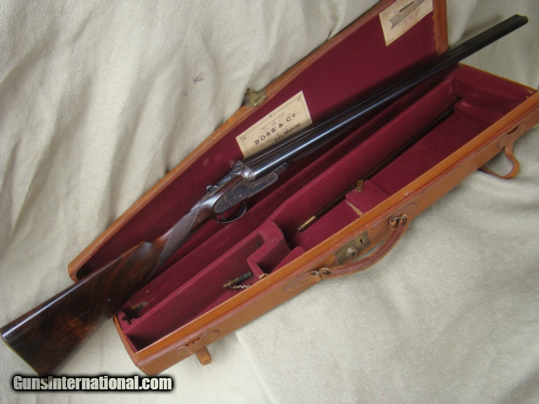 Description: Pre-war Boss 20 ga., 26-1/2" barrels choked improved cylinder and modified (.007/.010). Original 2-3/4 1oz. heavy proof. Raised concave game rib marked "Boss & Co. 41 Albermarle Street Picadilly London W". Built with the style and grace that these "golden era" Boss guns are famous for. The petite "easy opening" action gun weighs a mere 5lbs, 5 oz. Fitted with the Boss patent single trigger. Well-figured stock measures 1-3/8" comb, 1-7/8" heel, 14-1/4" LOP to a checkered butt. Balanced directly on the pin, this estate-fresh example retains 97% original blue, 80% vibrant case colors over the jewel-like engraving by the renowned Jack Sumner. Built in 1930 to the true small bore specs, a unique opportunity to purchase a seldom-seen heavy proof vintage 20. Cased in original violin case. SOLD |